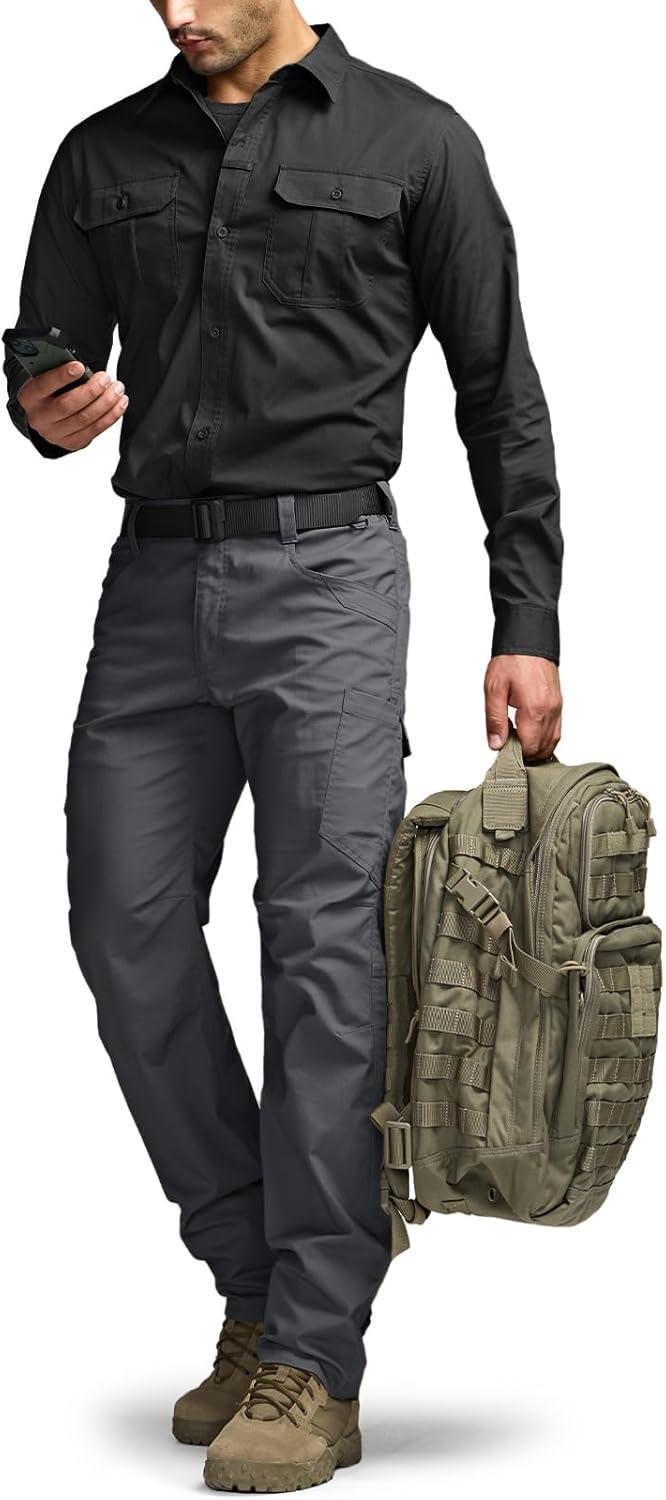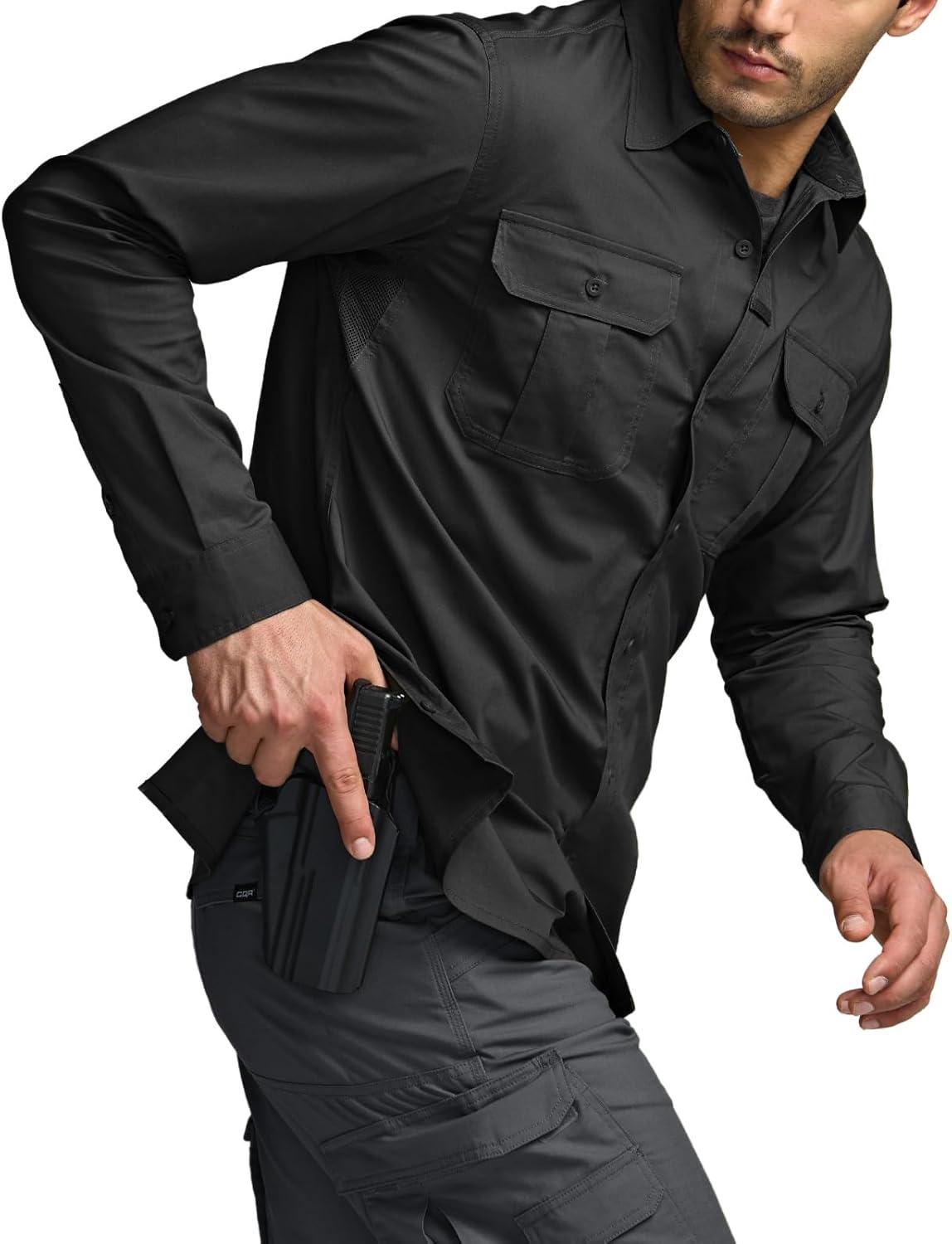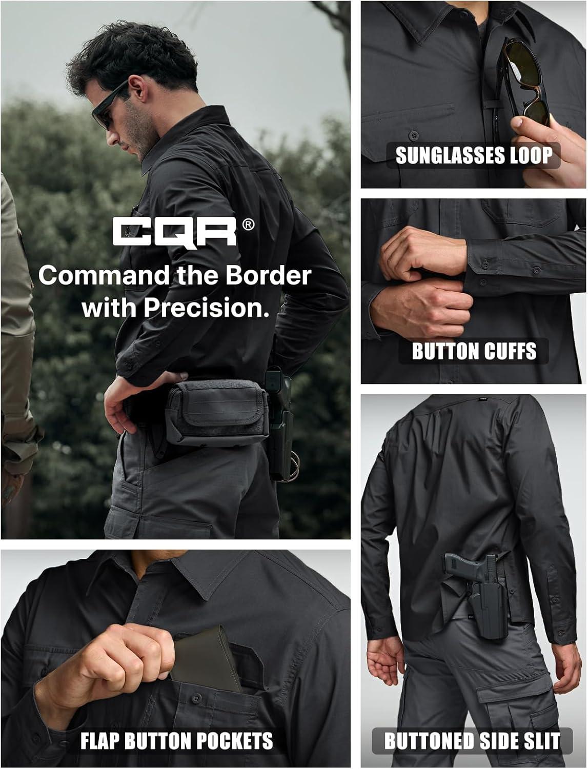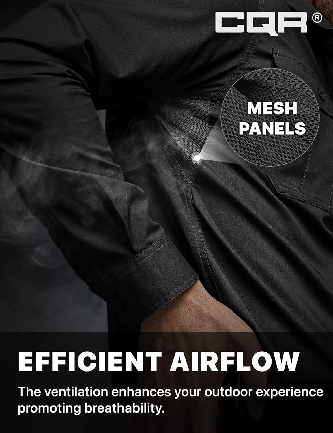 CQR Men’s Long Sleeve Tactical Shirts, Ripstop Military Work Shirts, UPF 50+ Breathable Button Down Outdoor Hiking Shirt(Supervisor Black)