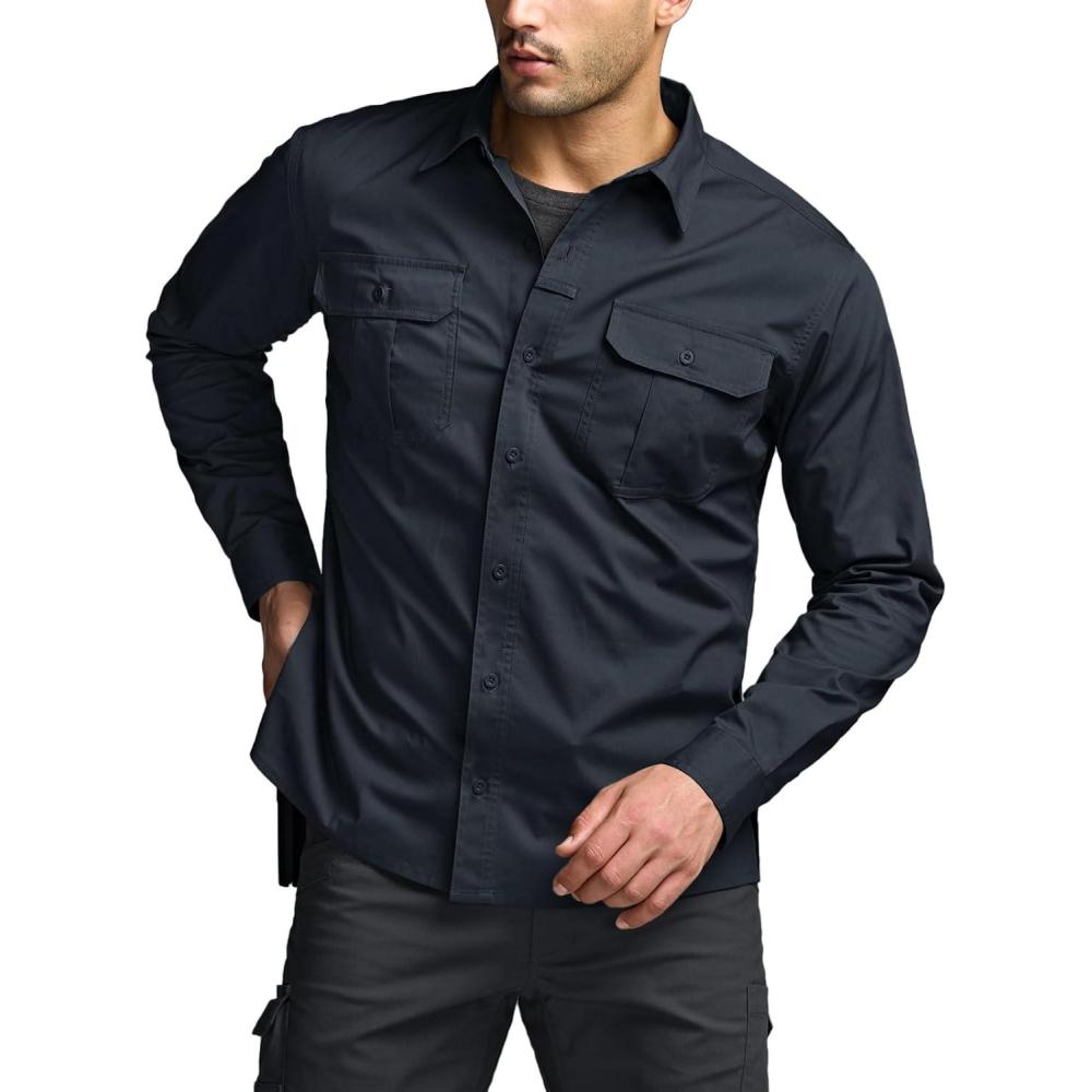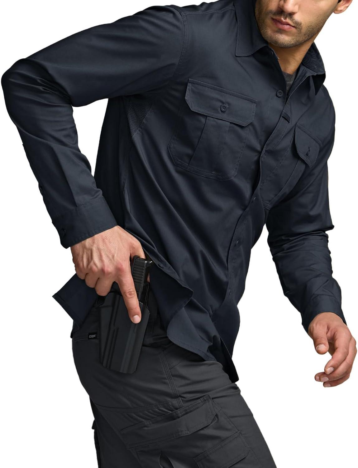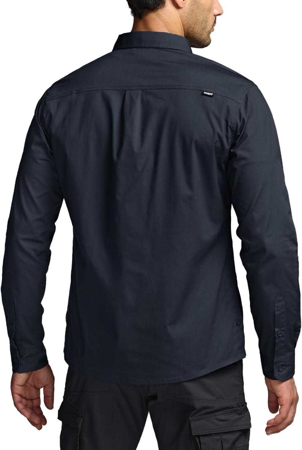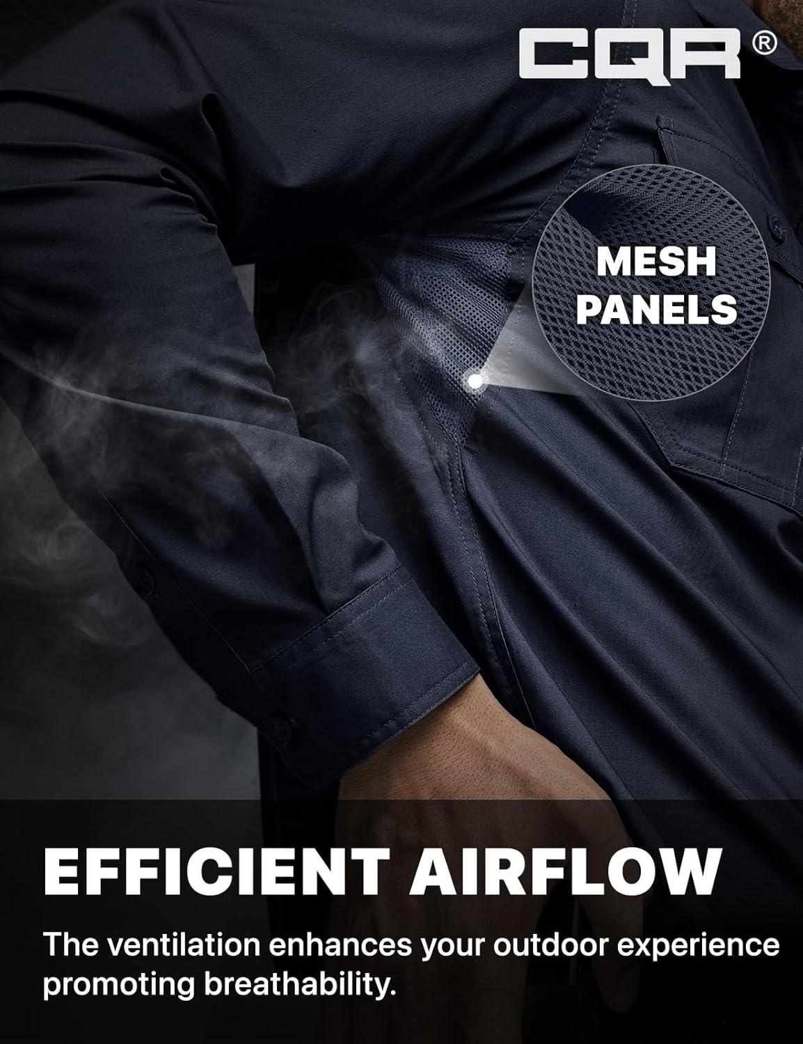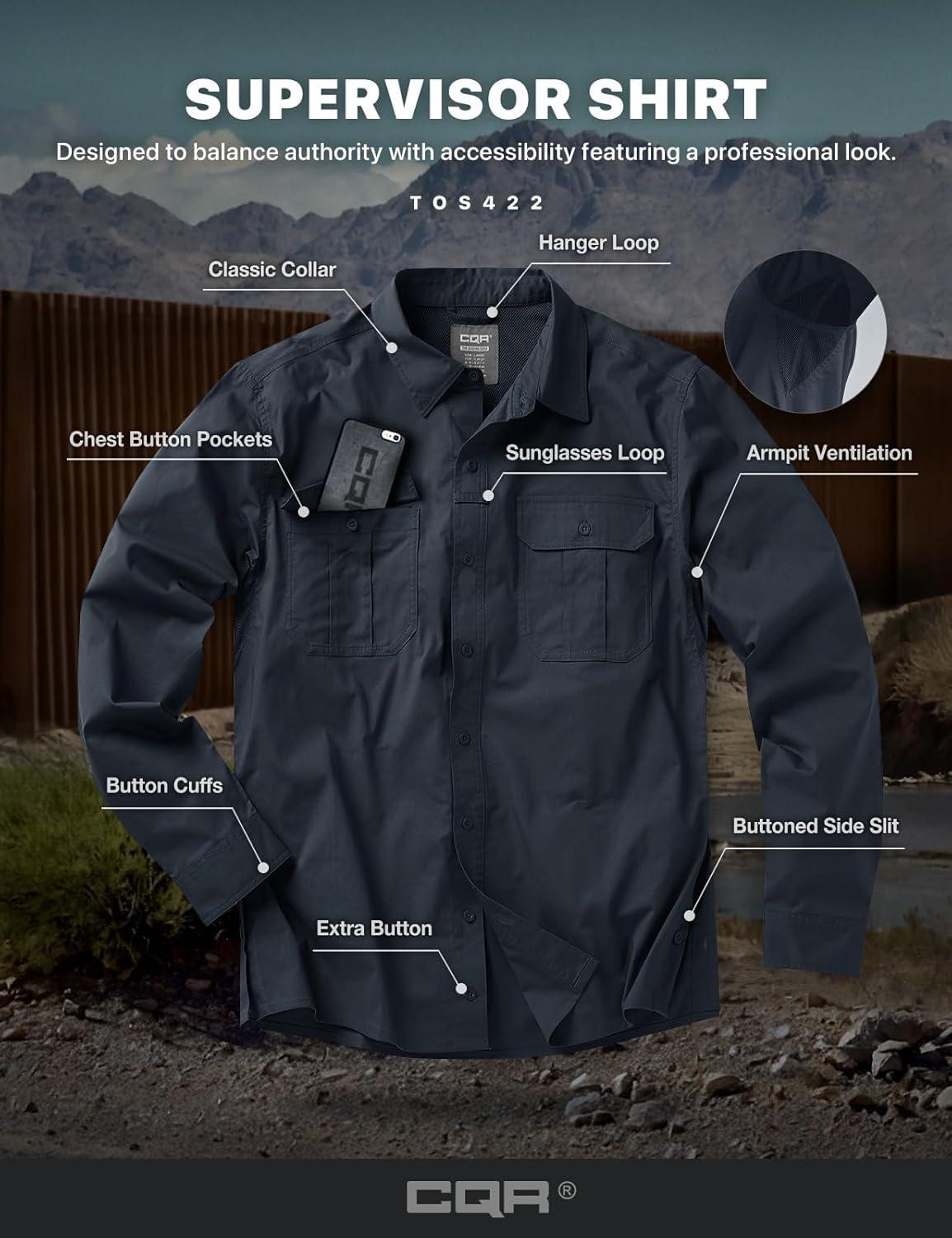 CQR Men’s Long Sleeve Tactical Shirts, Ripstop Military Work Shirts, UPF 50+ Breathable Button Down Outdoor Hiking Shirt(Supervisor Operator Navy)