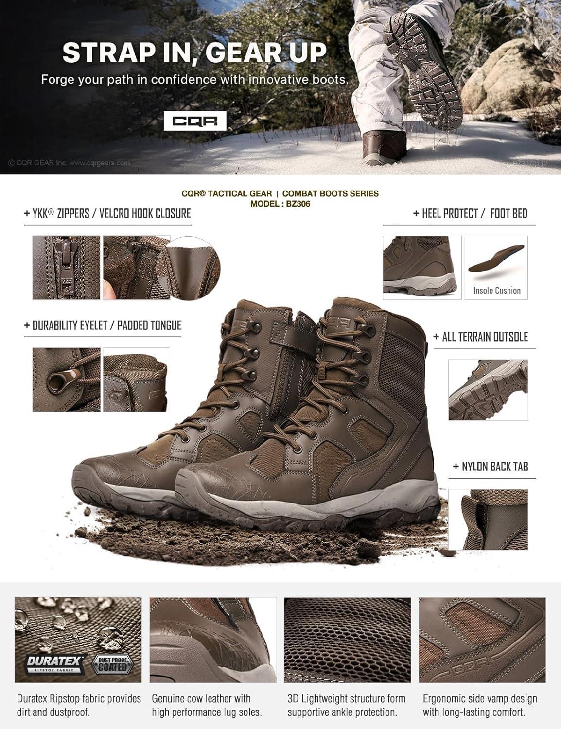 CQR Men’s Military Tactical Boots, Lightweight 6 Inches Hiking Combat Boot Durable Breathable Outdoor Work Motorcycle Footwear(Patrol 6 With Zipper Dark Brown)