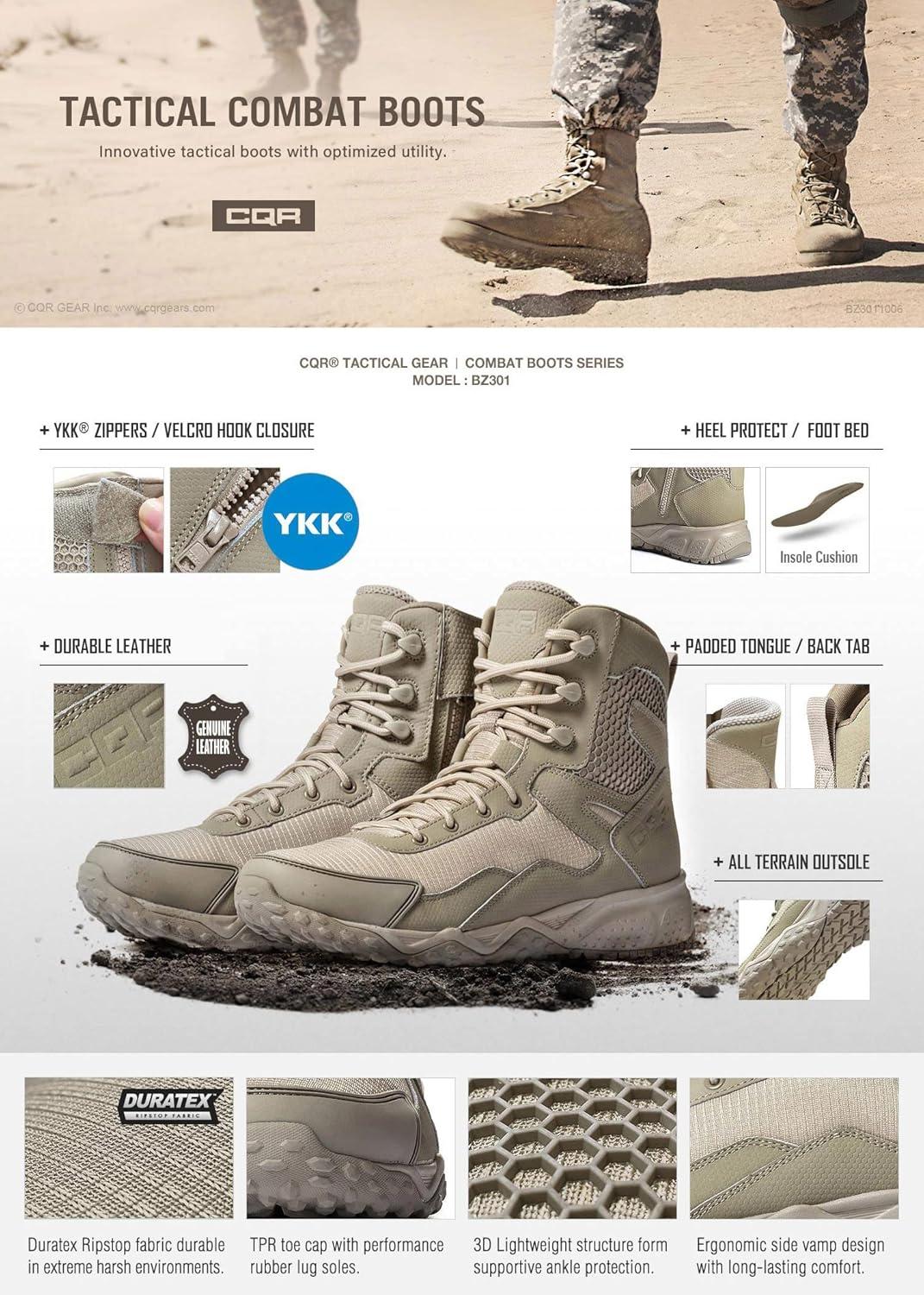 CQR Men’s Military Tactical Boots, Lightweight 6 Inches Hiking Combat Boot Durable Breathable Outdoor Work Motorcycle Footwear(Raider 6 – Zip Sienna)