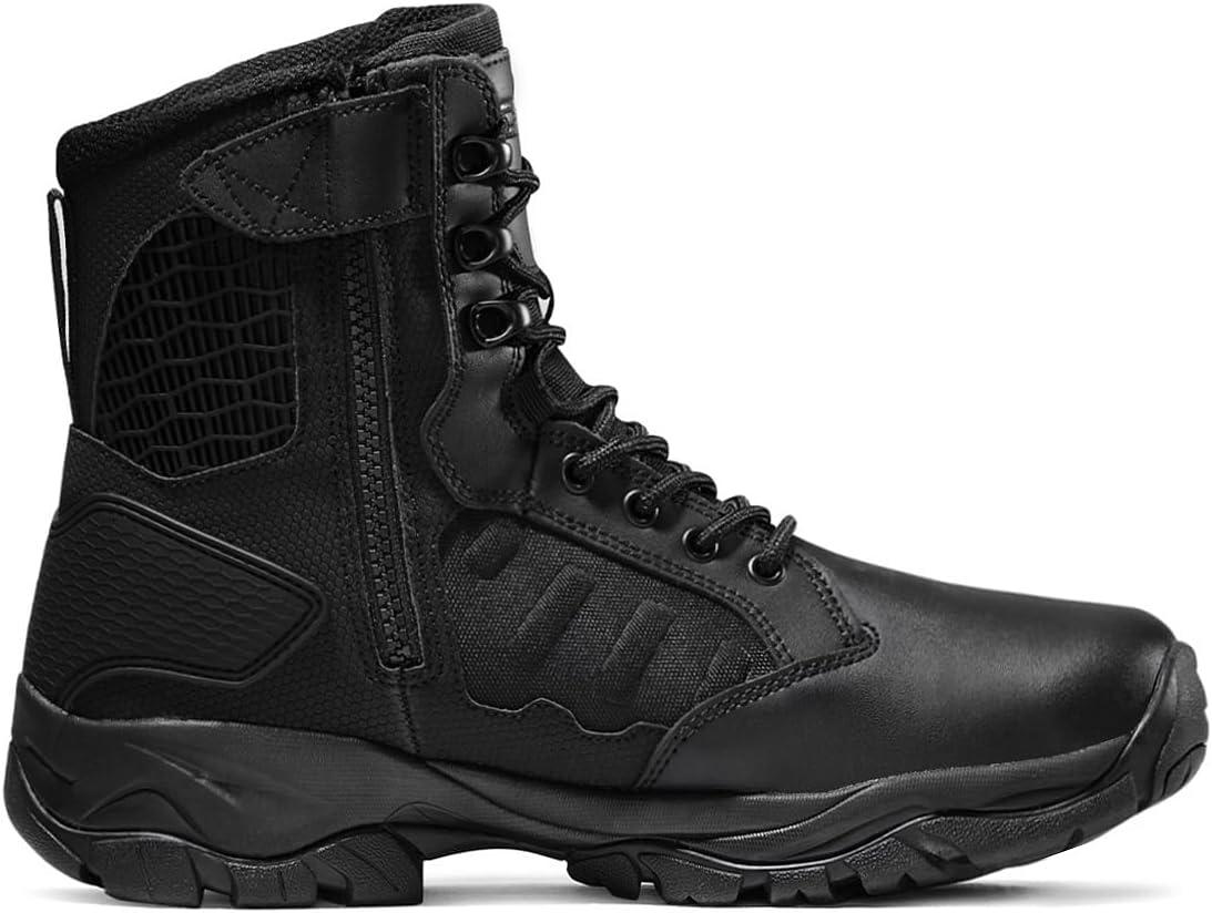 CQR Men’s Military Tactical Boots, Lightweight 6 Inches Hiking Combat Boot Durable Breathable Outdoor Work Motorcycle Footwear(Response 6 With Zipper Black)