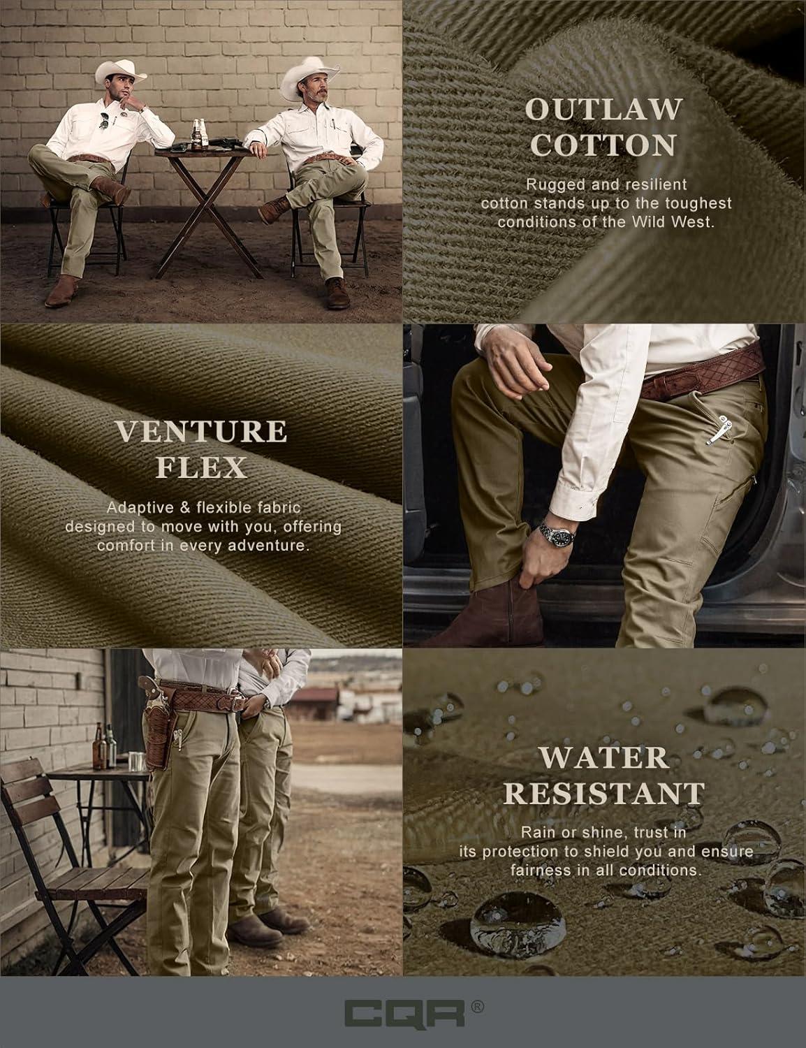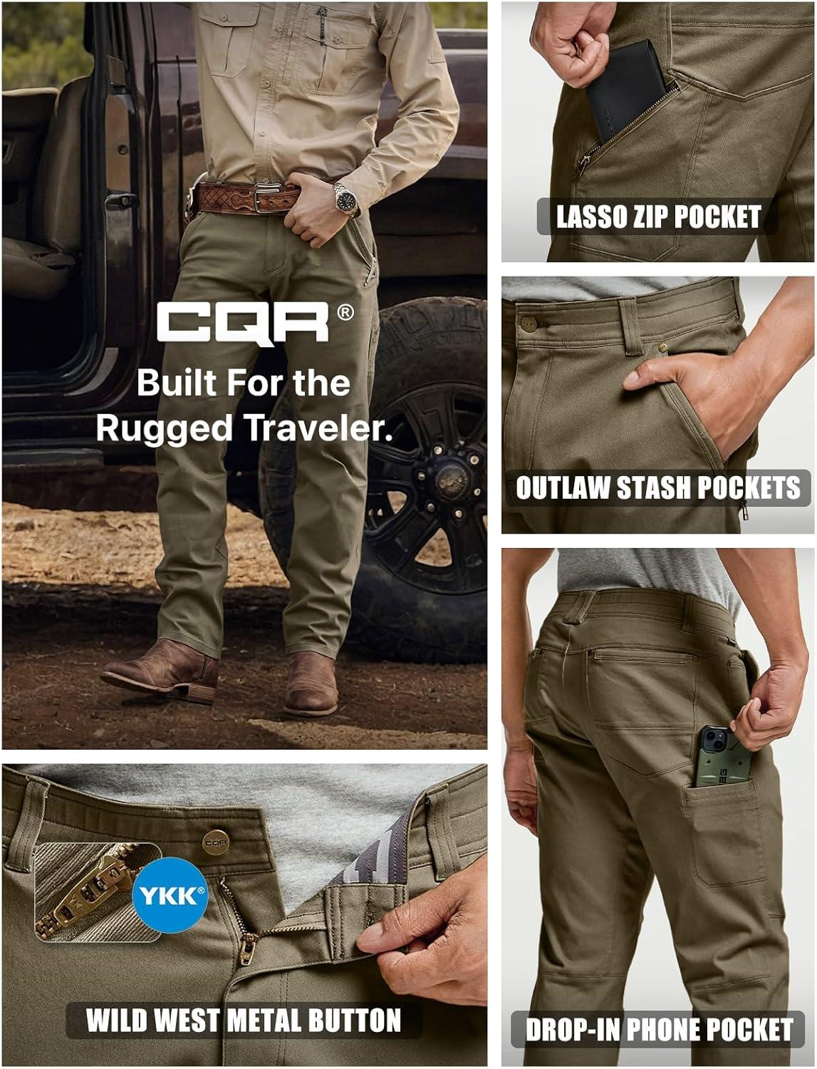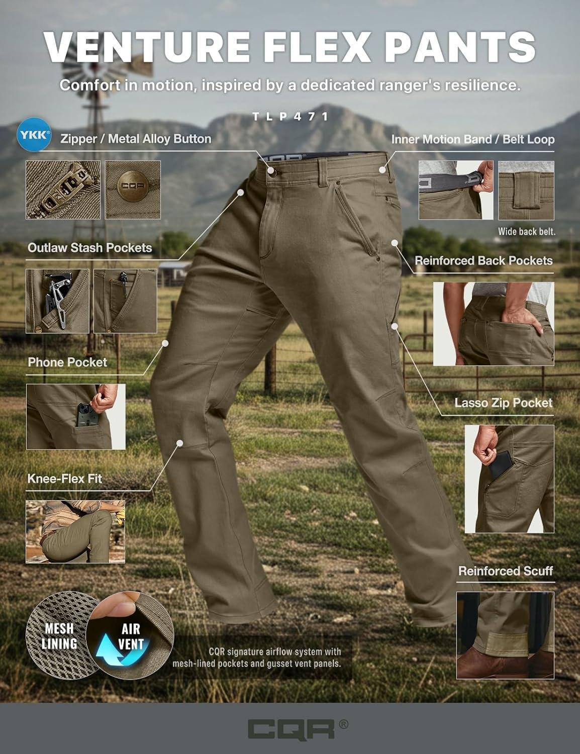 CQR Men’s Motion Utility Casual Pants, Regular Fit Lightweight Work Pants, Water Resistant Outdoor Stretch Pants with Pockets(Venture Bayou)
