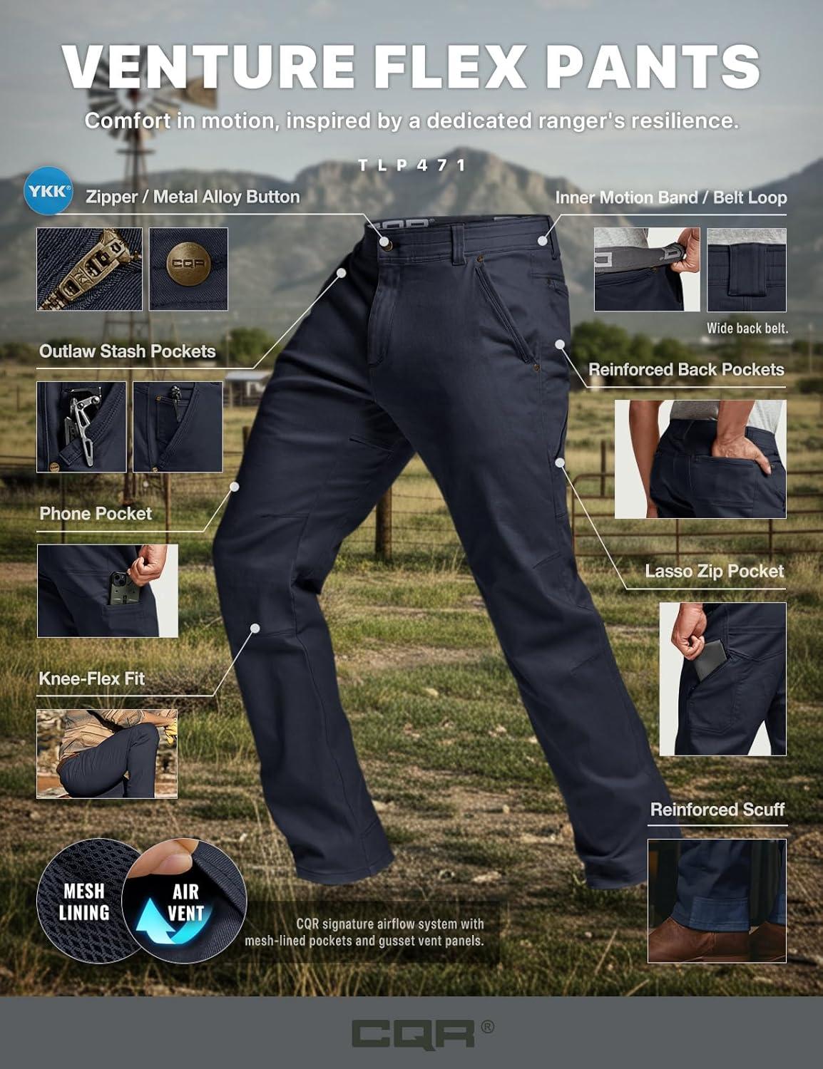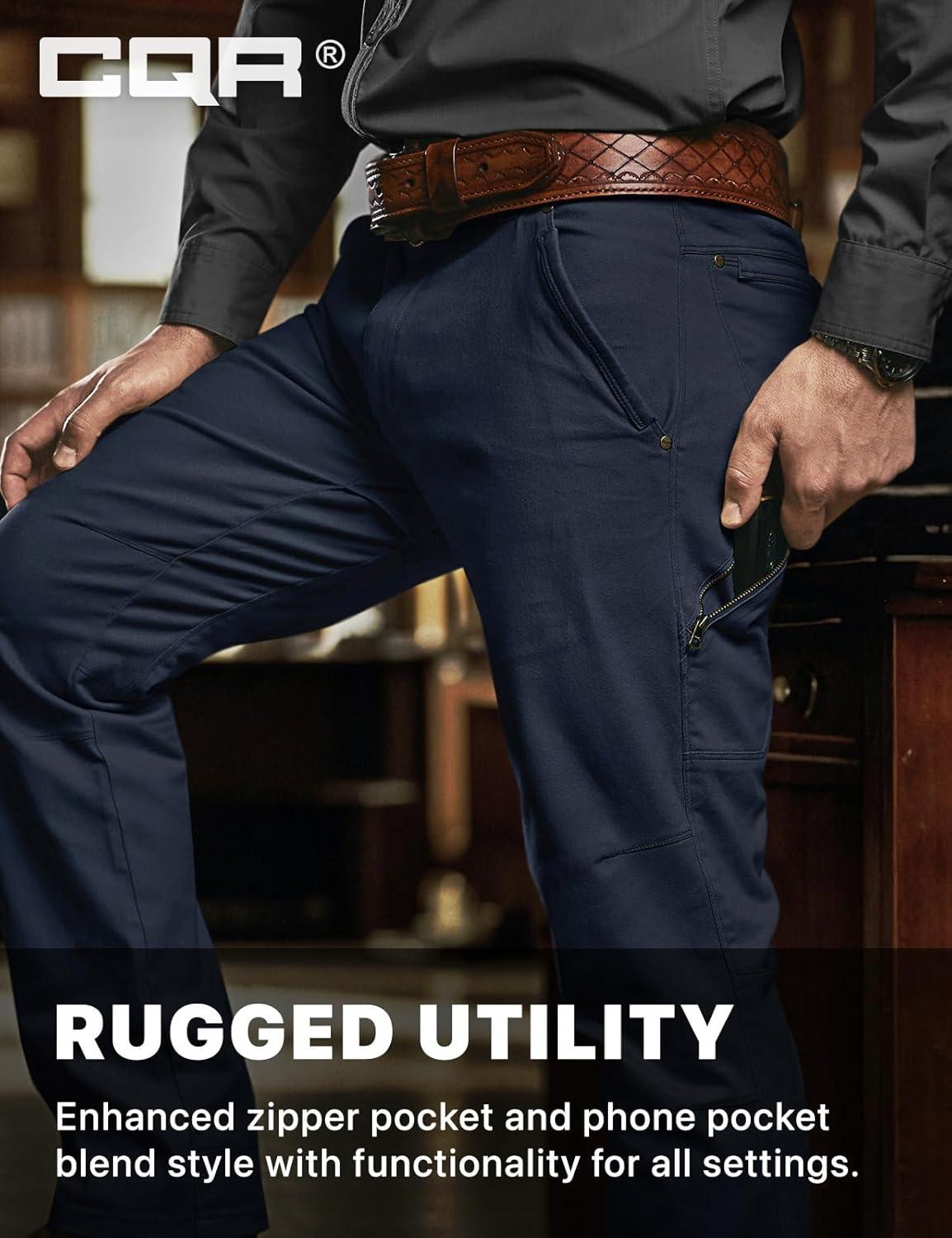 CQR Men’s Motion Utility Casual Pants, Regular Fit Lightweight Work Pants, Water Resistant Outdoor Stretch Pants with Pockets(Venture Police Navy)