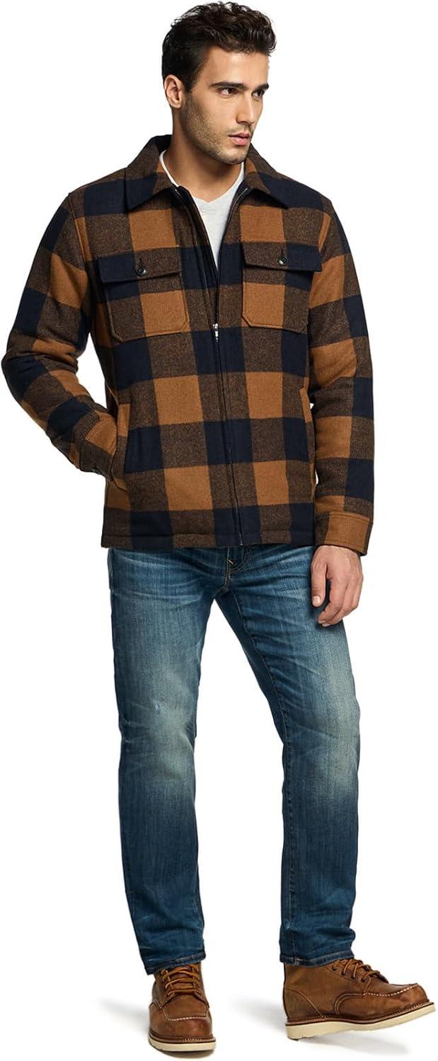 CQR Men’s Plaid Flannel Shirt Jacket, Long Sleeve Soft Warm Sherpa/Quilted Lined Jacket, Outdoor Button Up/Zip-Front Jacket(Wool Jk Buffalo Brown Plaid)