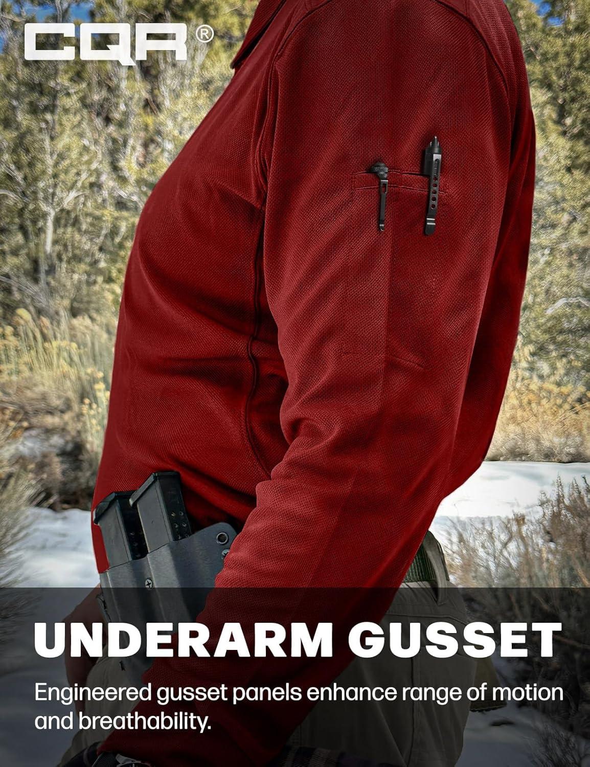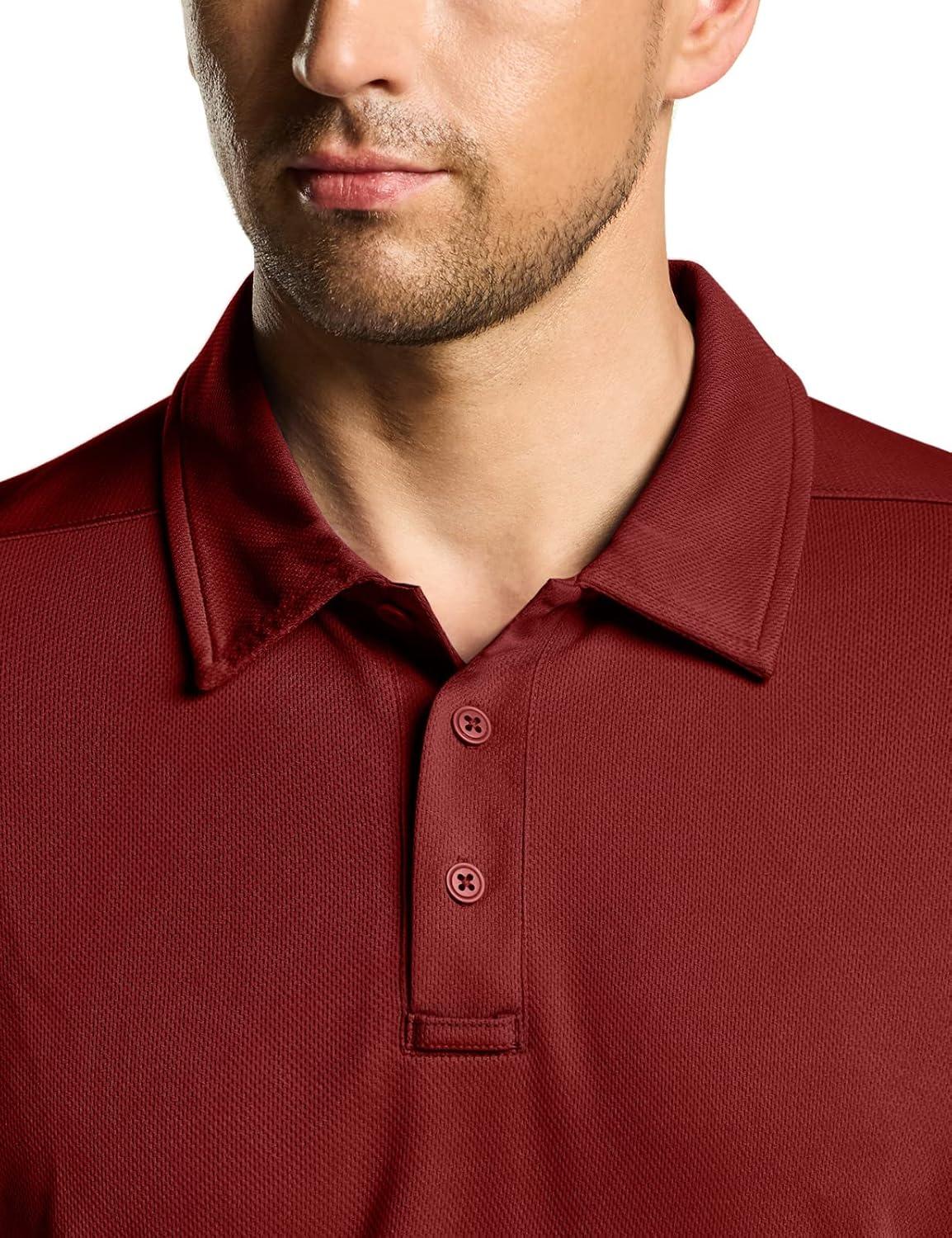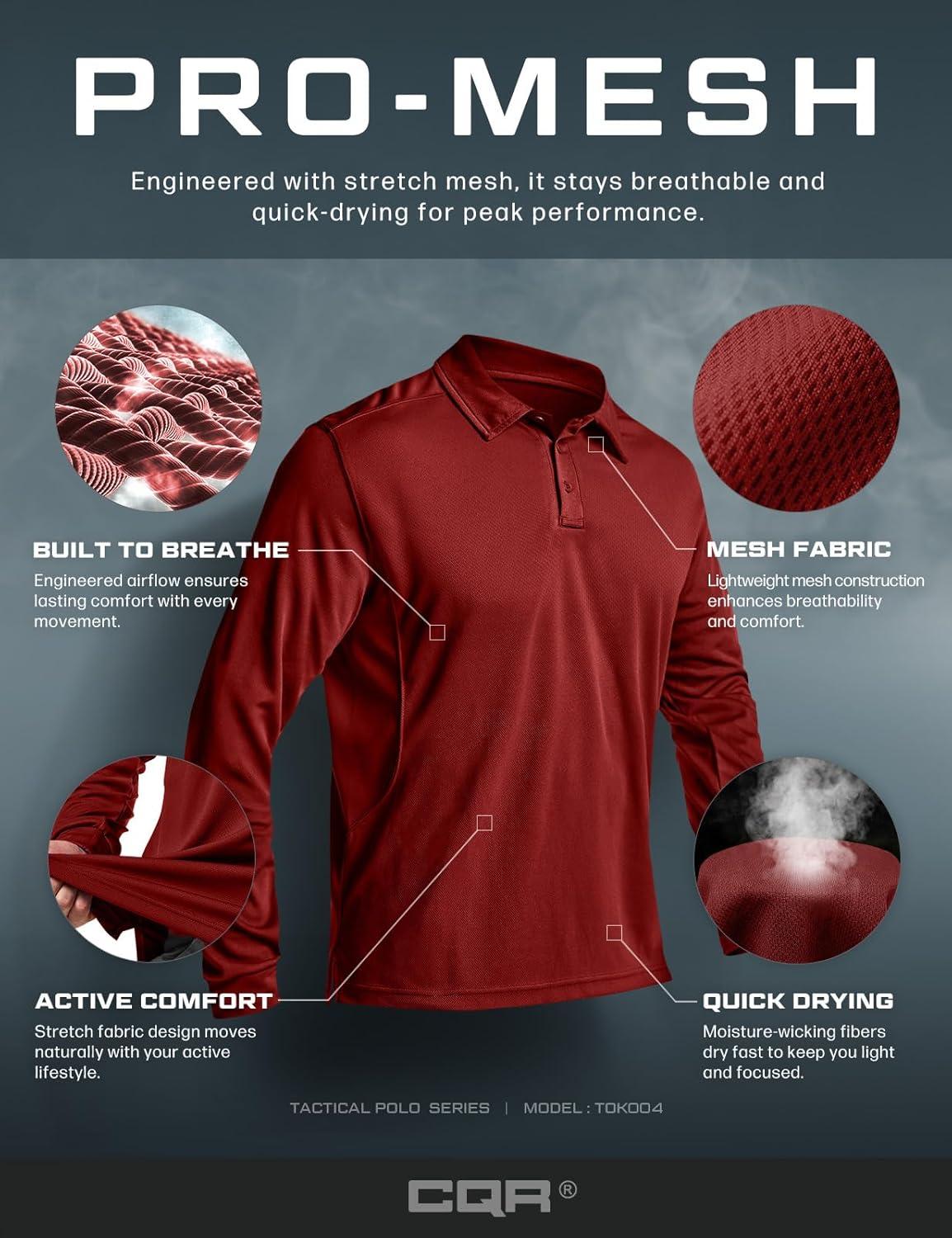 CQR Men’s Polo Shirt, Long Sleeve Tactical Shirts, Outdoor UPF 50+ Pique Shirt, Dry Fit Lightweight Golf Shirts(Frost Essential Long Wine)