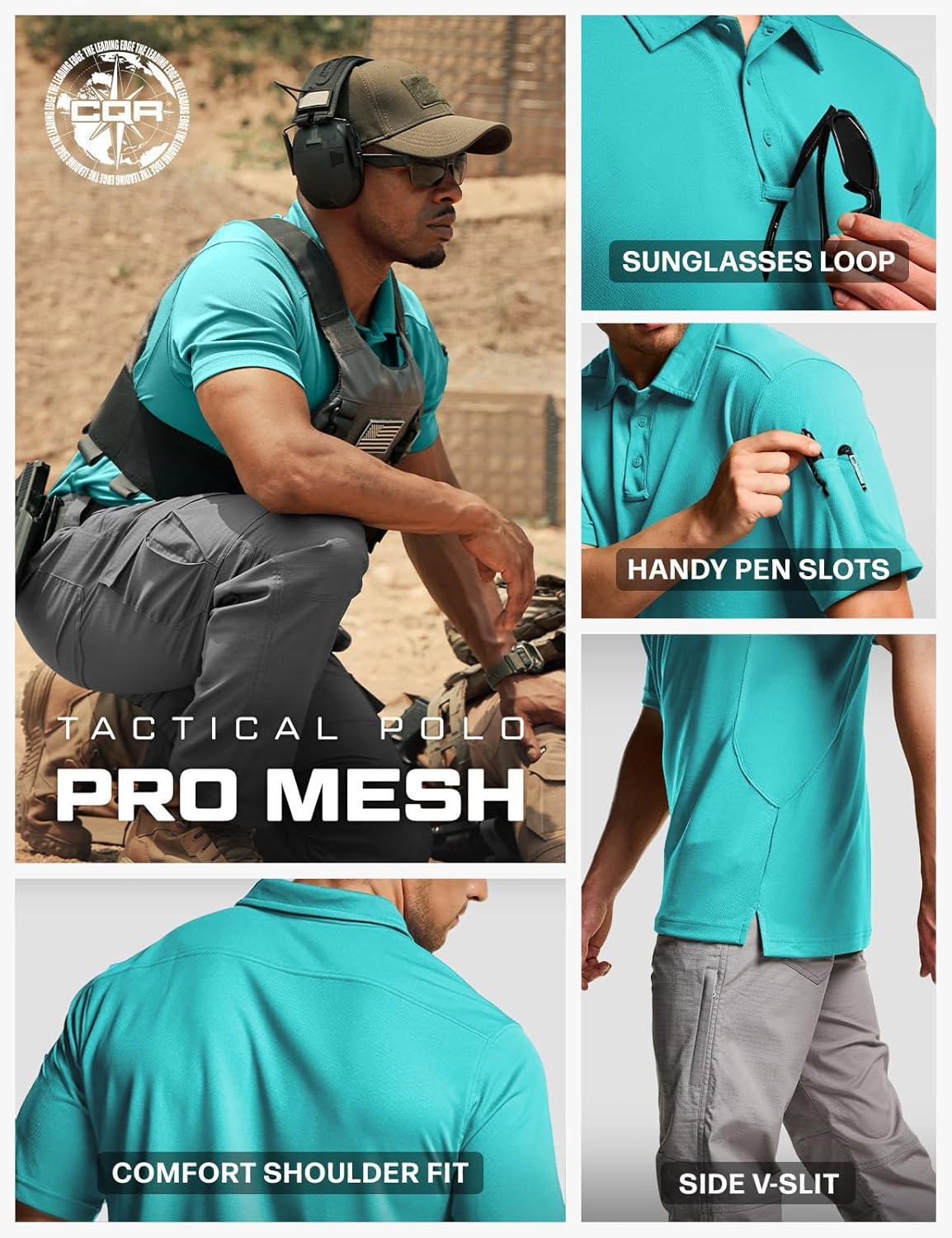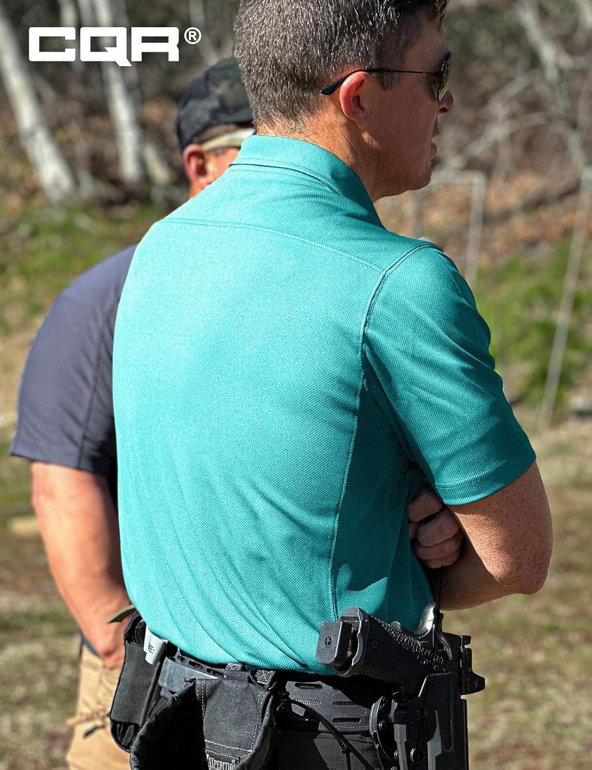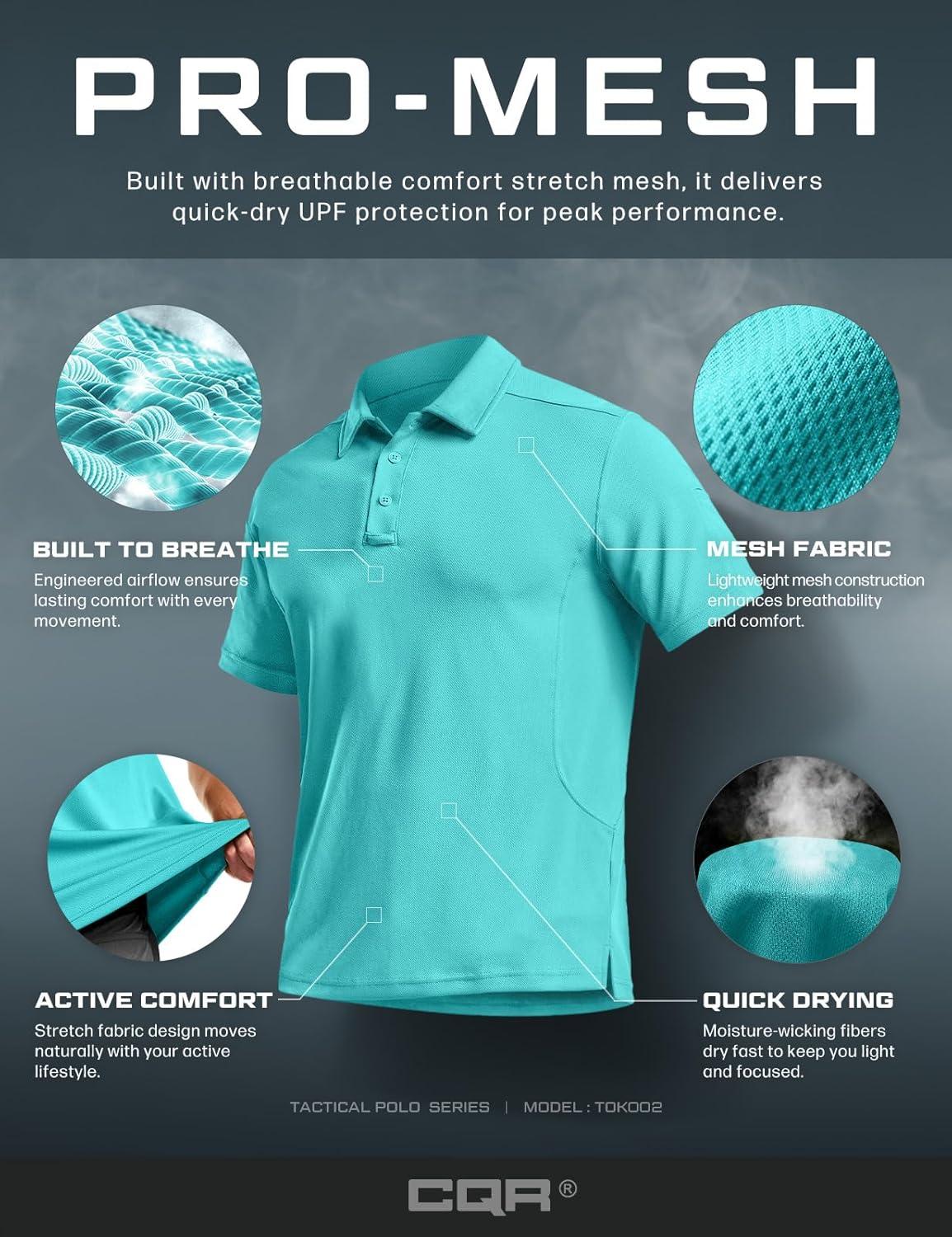 CQR Men’s Polo Shirts, Tactical Short Sleeve Golf Performance Shirts, Lightweight Dry Fit UPF 50+ Pique(Frost Essential Aqua Blue)