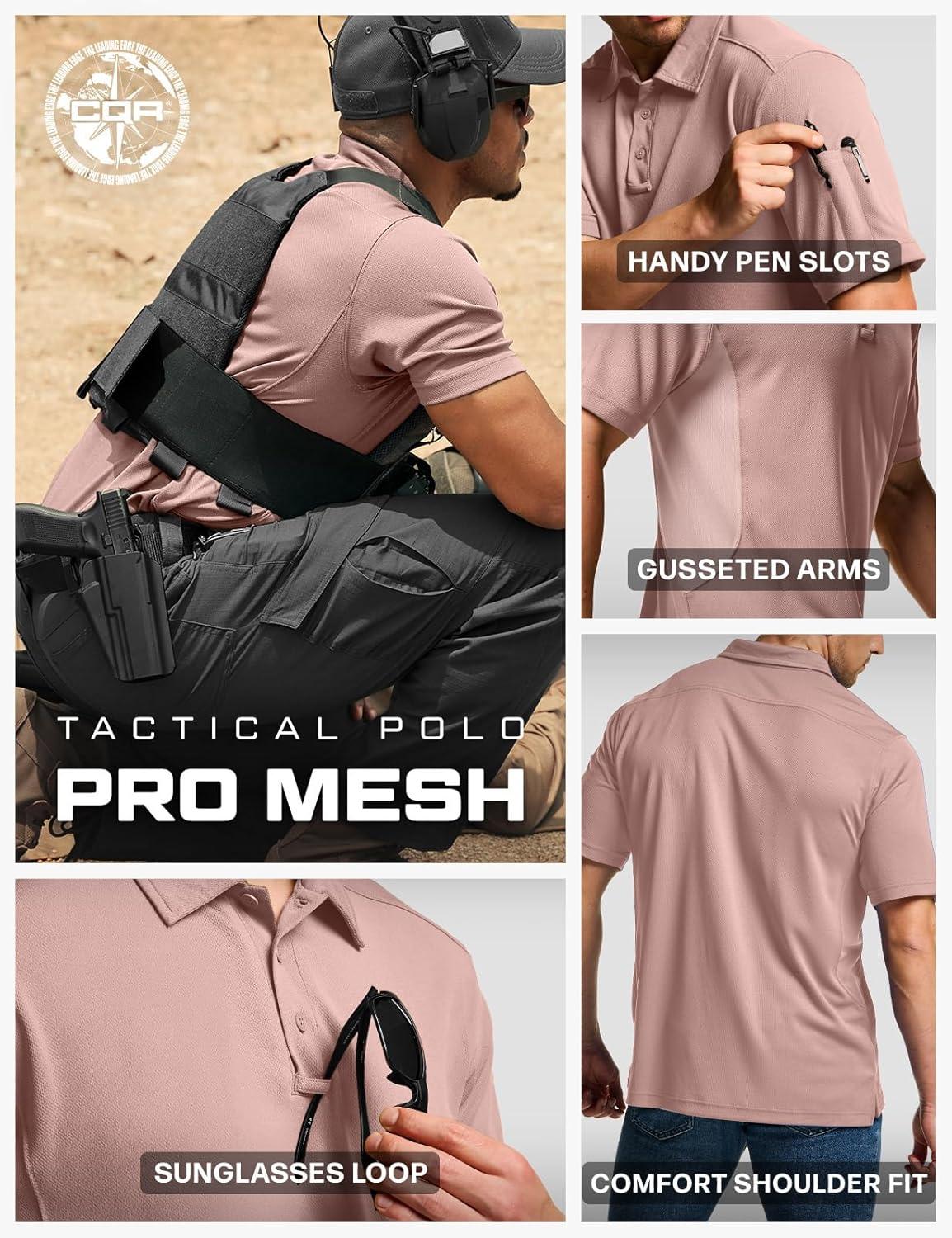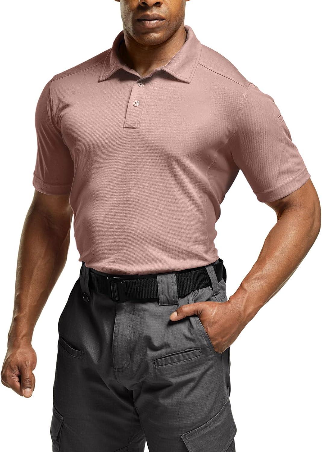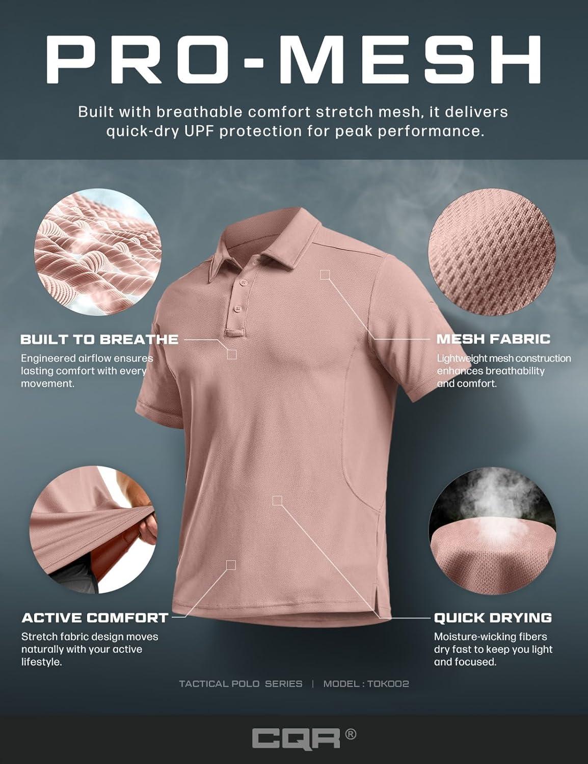 CQR Men’s Polo Shirts, Tactical Short Sleeve Golf Performance Shirts, Lightweight Dry Fit UPF 50+ Pique(Frost Essential Ash Pink)