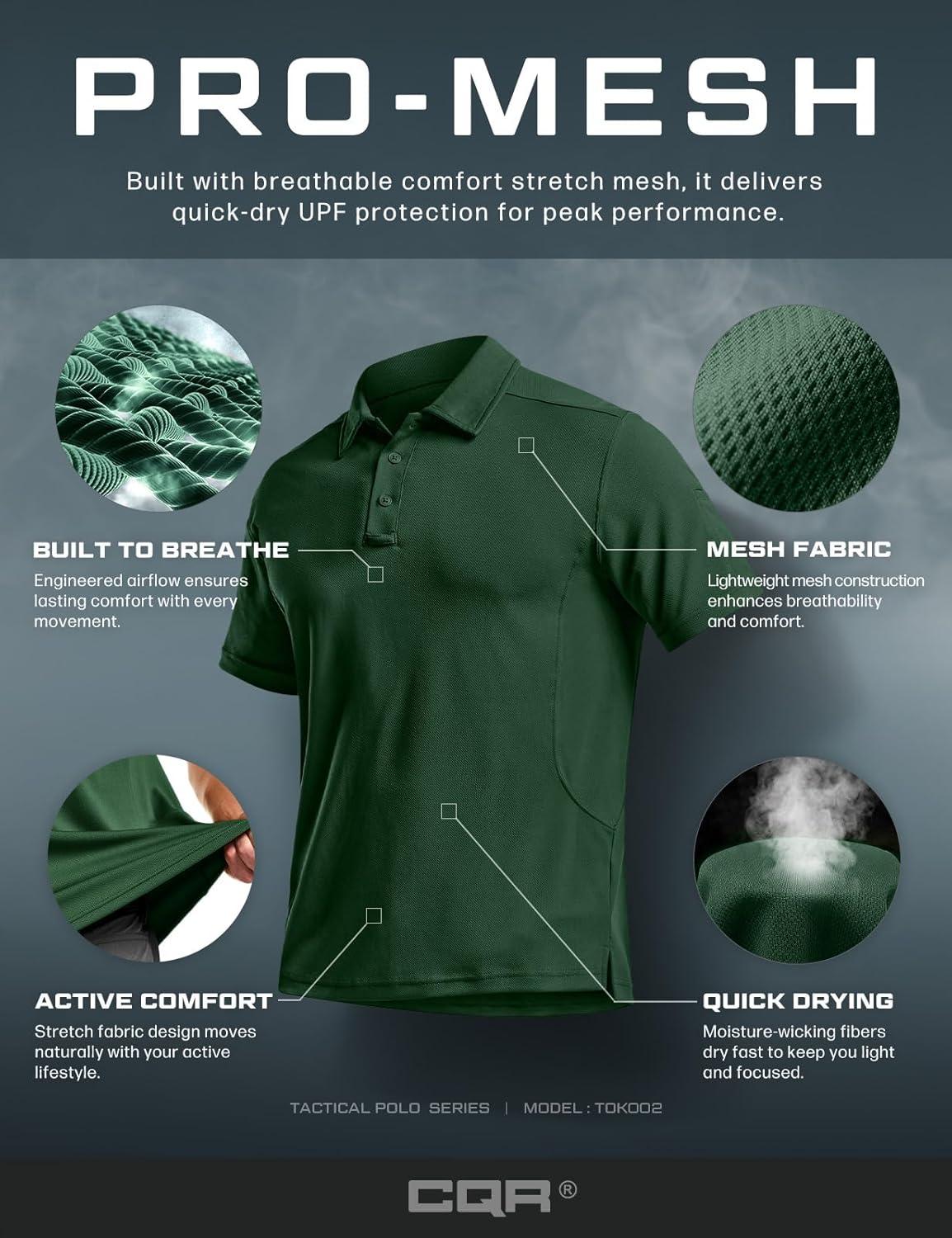 CQR Men’s Polo Shirts, Tactical Short Sleeve Golf Performance Shirts, Lightweight Dry Fit UPF 50+ Pique(Frost Essential Jade Green)