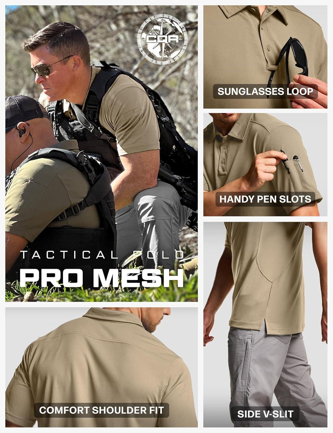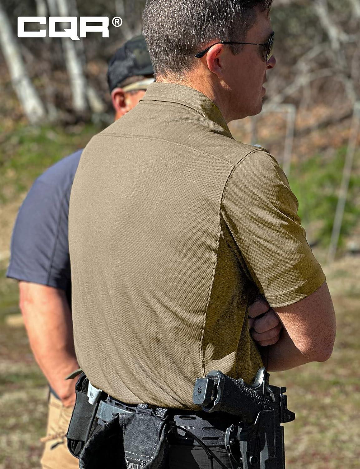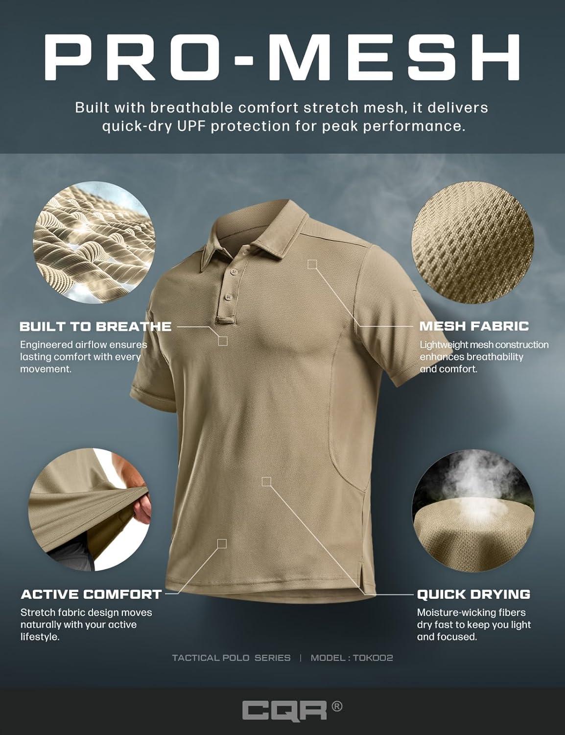 CQR Men’s Polo Shirts, Tactical Short Sleeve Golf Performance Shirts, Lightweight Dry Fit UPF 50+ Pique(Frost Essential Khaki)