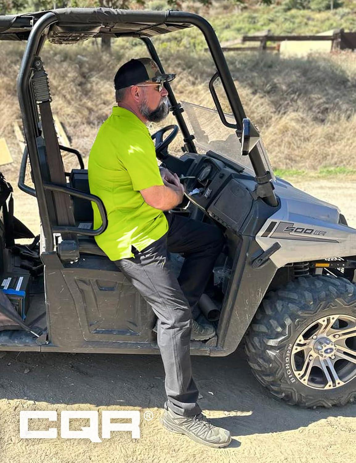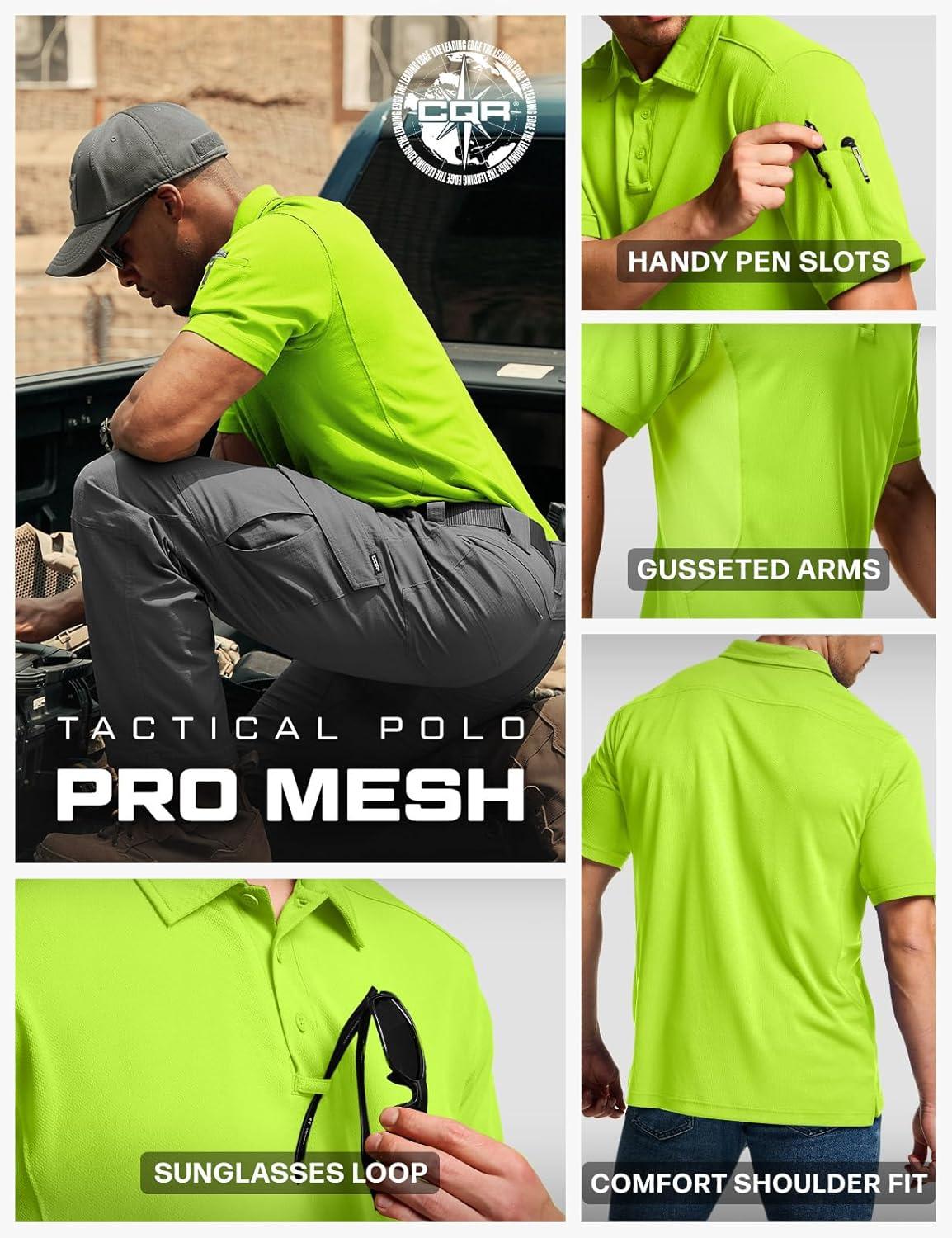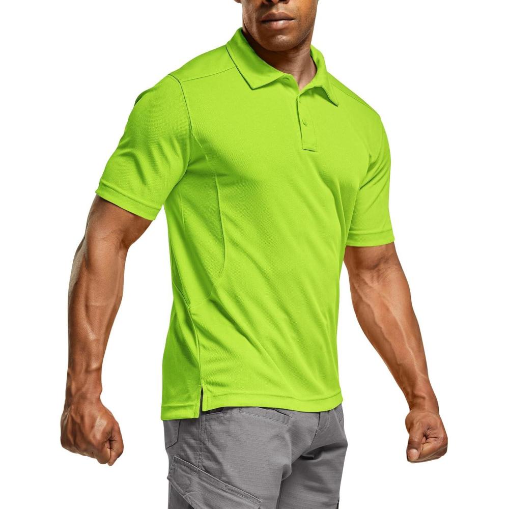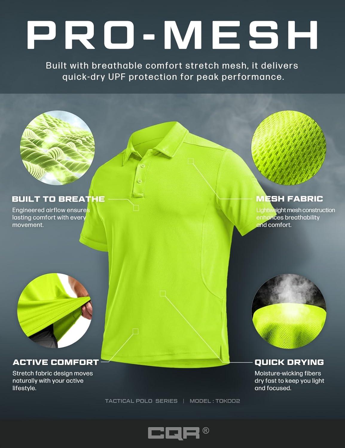 CQR Men’s Polo Shirts, Tactical Short Sleeve Golf Performance Shirts, Lightweight Dry Fit UPF 50+ Pique(Frost Essential Neon Yellow)