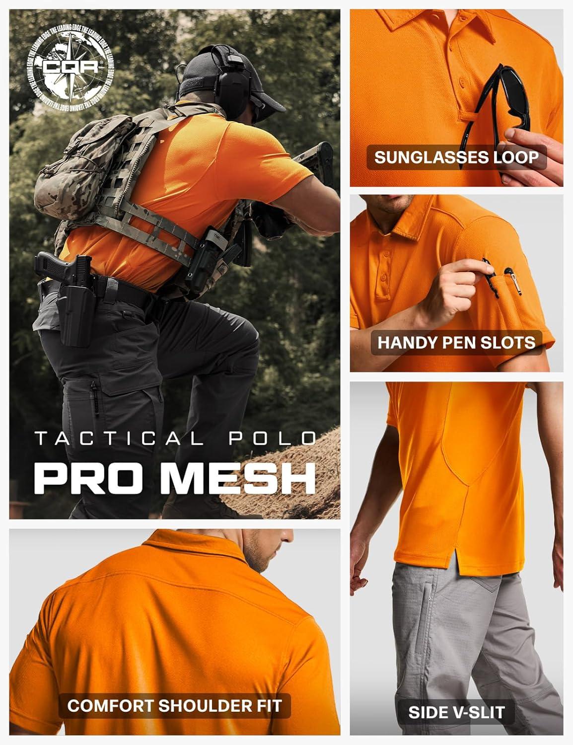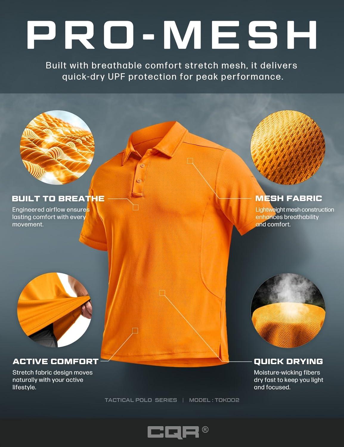 CQR Men’s Polo Shirts, Tactical Short Sleeve Golf Performance Shirts, Lightweight Dry Fit UPF 50+ Pique(Frost Essential Orange)
