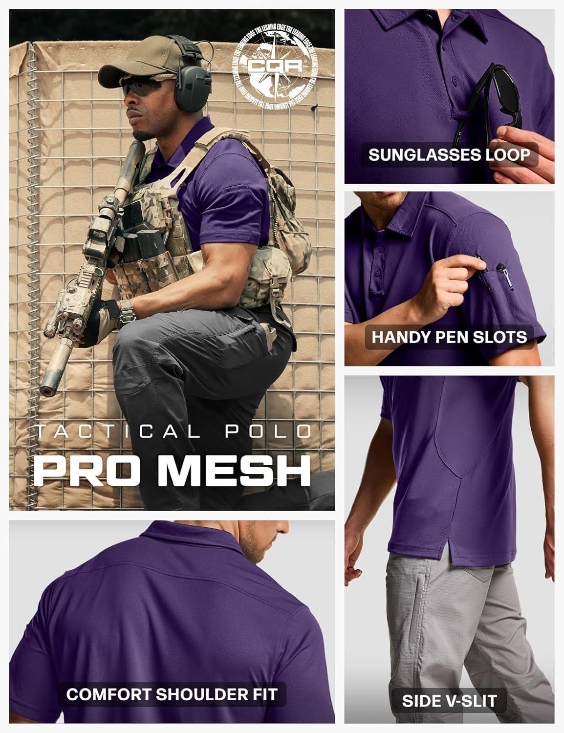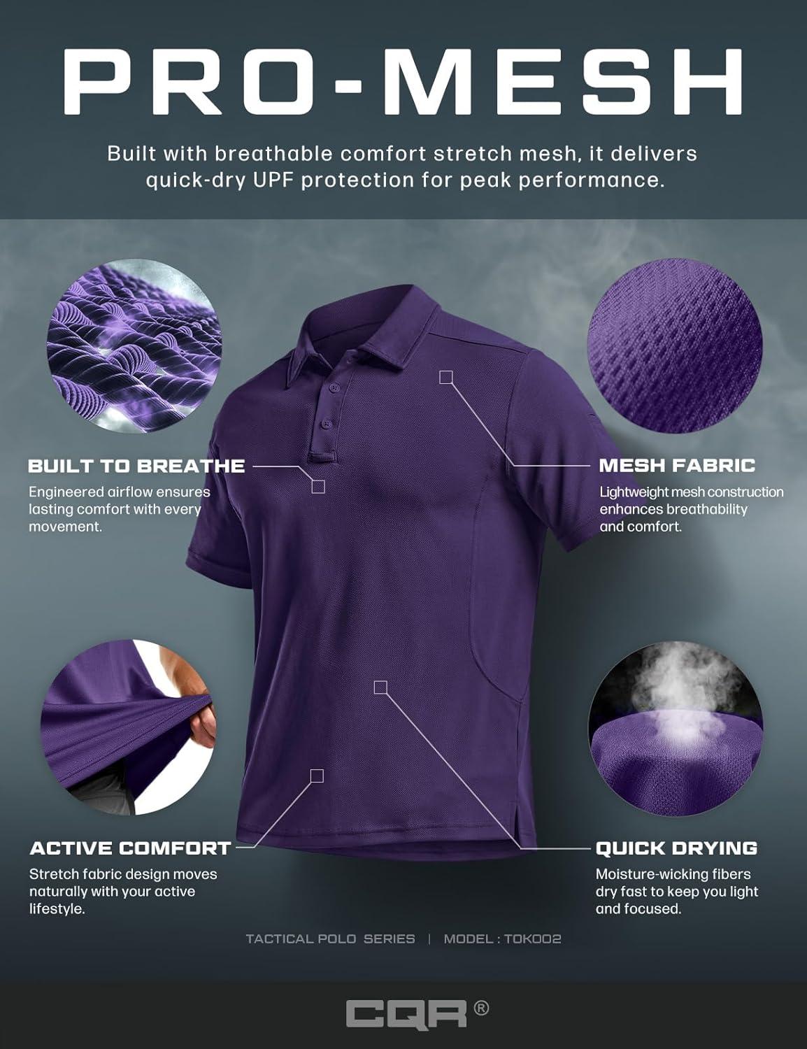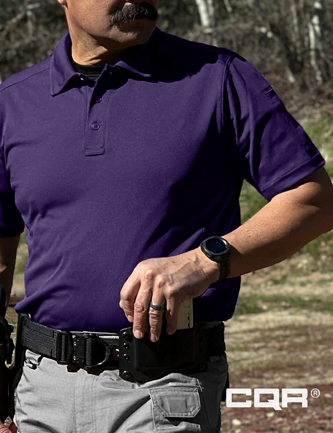 CQR Men’s Polo Shirts, Tactical Short Sleeve Golf Performance Shirts, Lightweight Dry Fit UPF 50+ Pique(Frost Essential Purple)