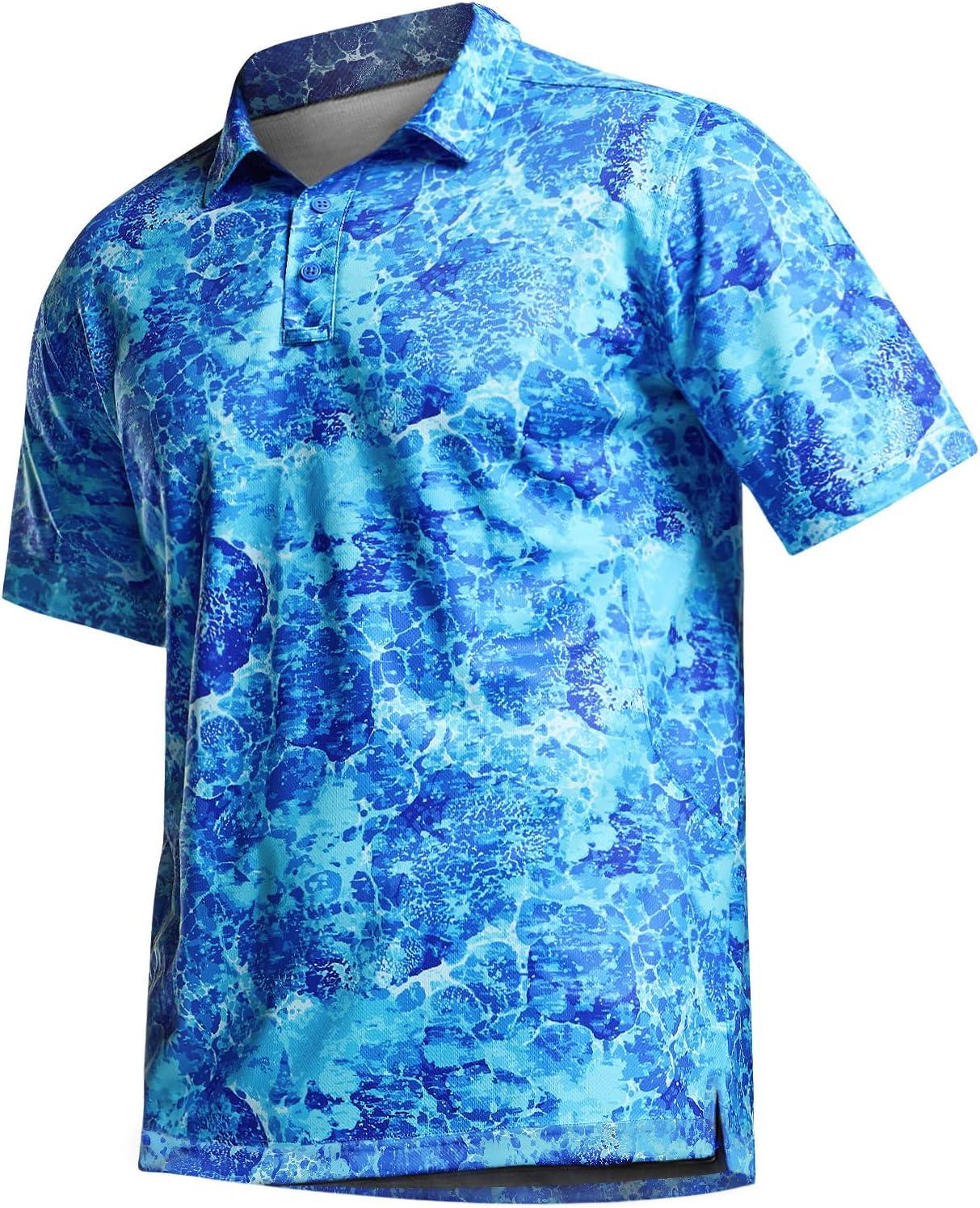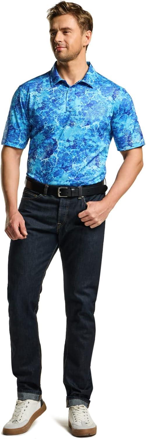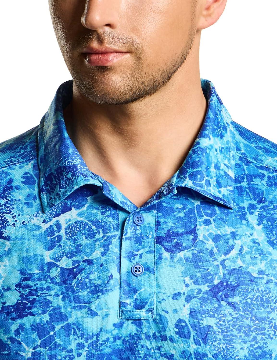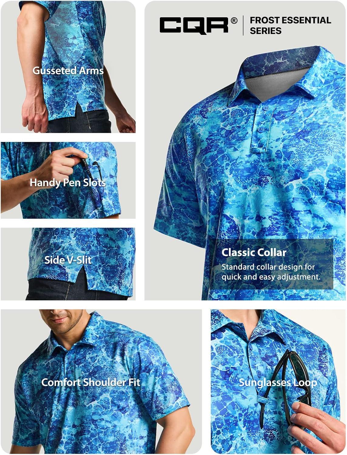 CQR Men’s Polo Shirts, Tactical Short Sleeve Golf Performance Shirts, Lightweight Dry Fit UPF 50+ Pique(Frost Essential Reef)