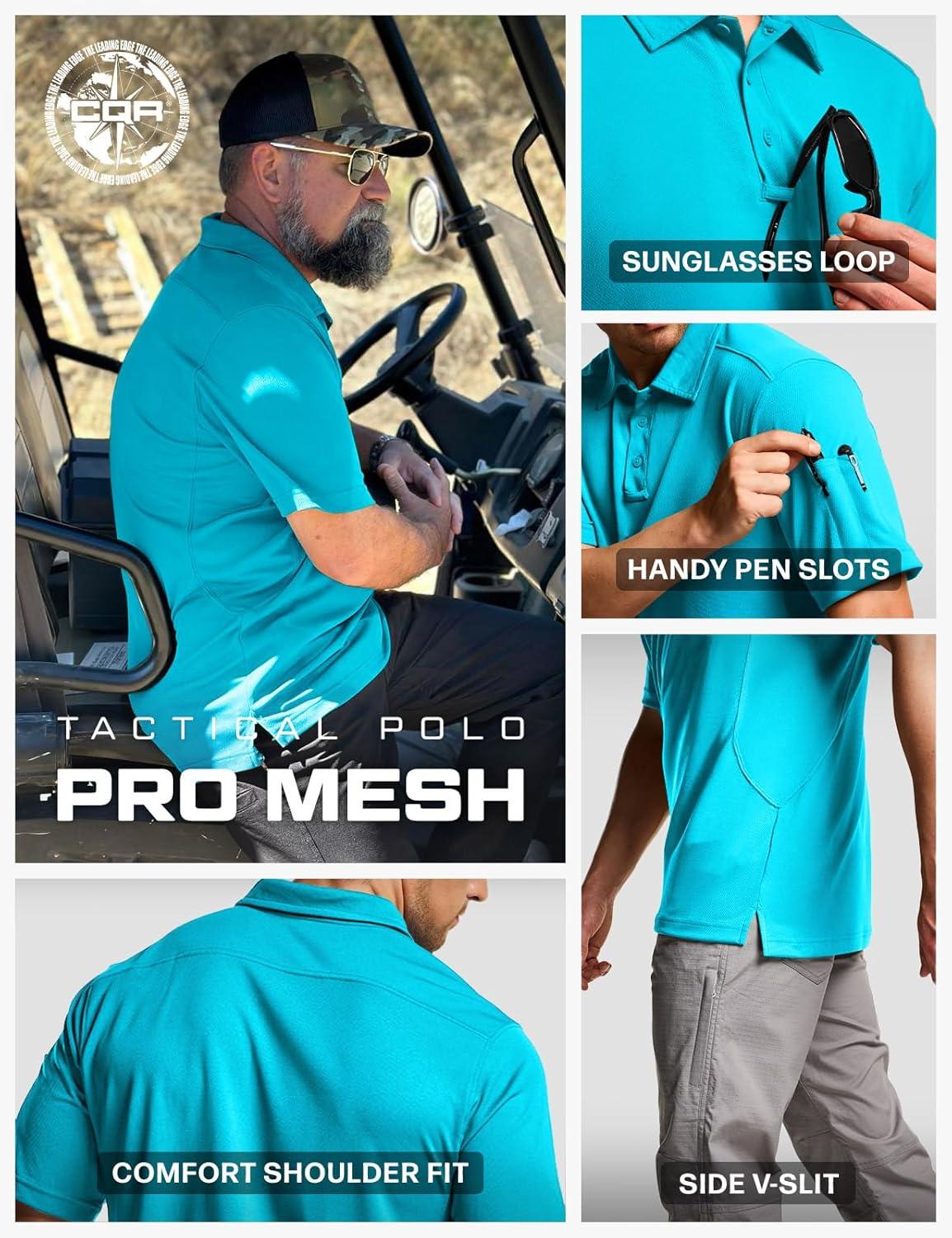 CQR Men’s Polo Shirts, Tactical Short Sleeve Golf Performance Shirts, Lightweight Dry Fit UPF 50+ Pique(Frost Essential Turquoise)