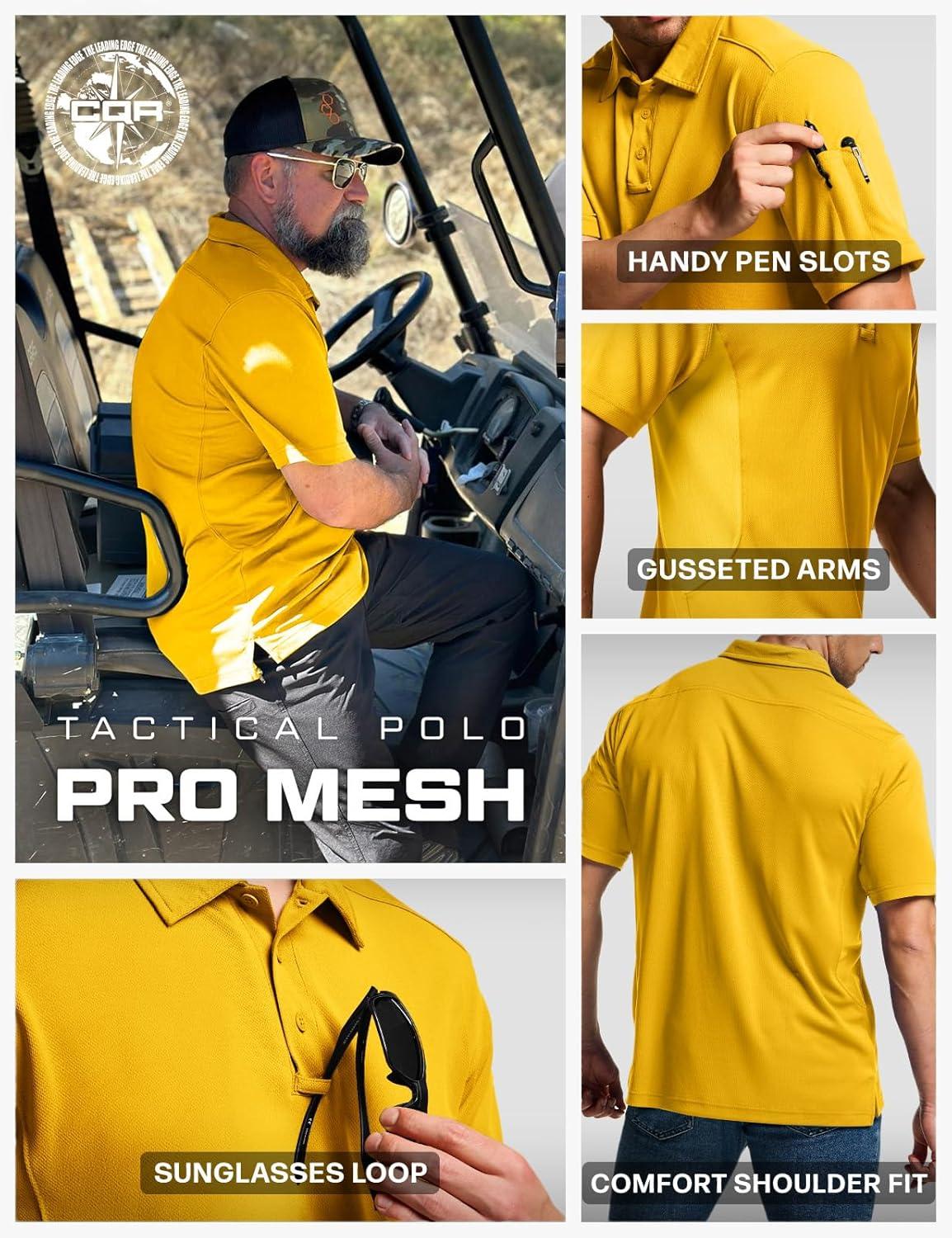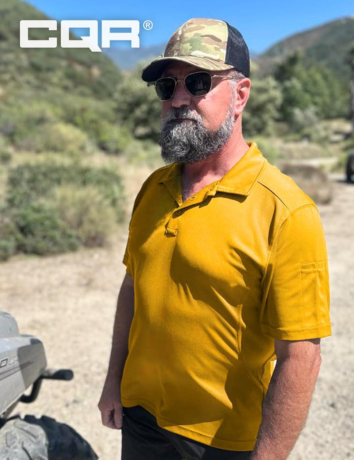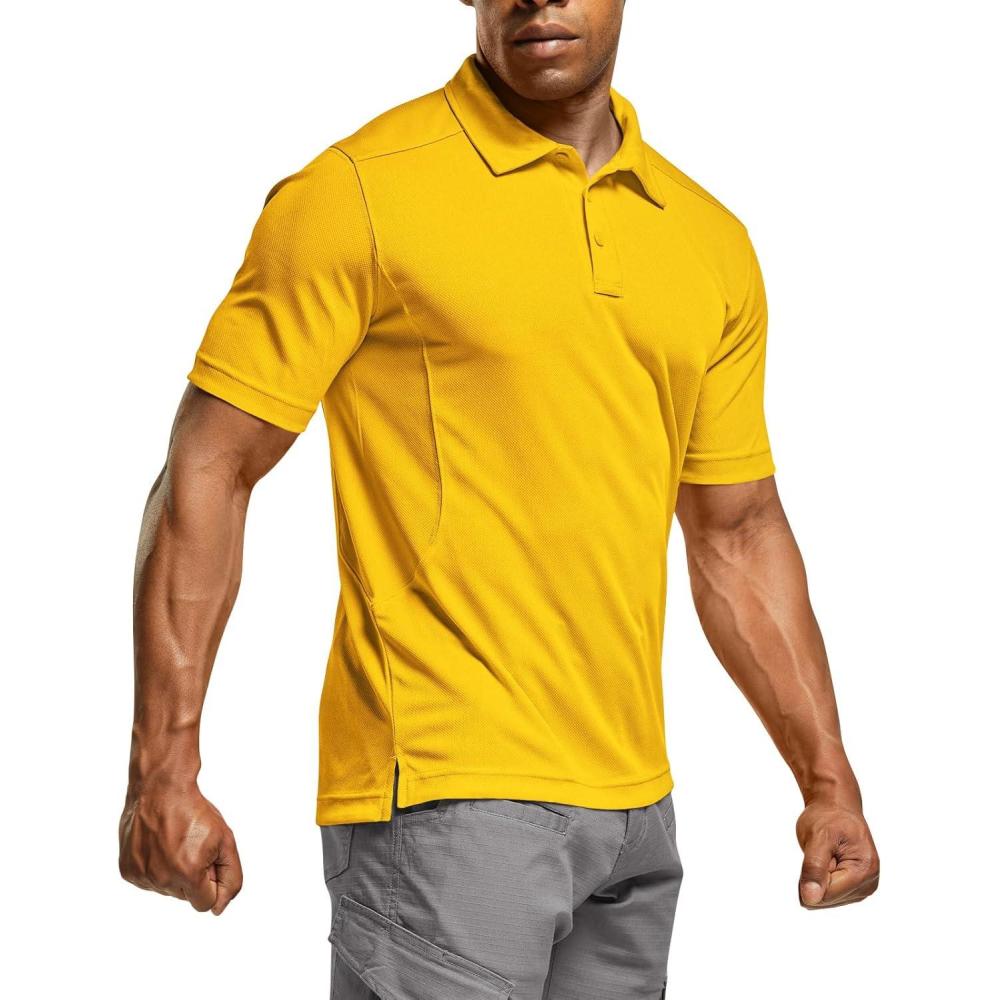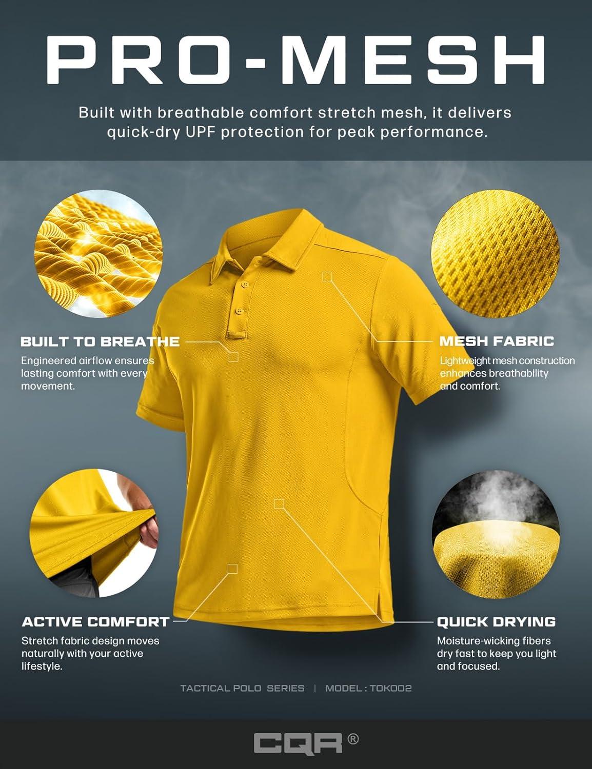 CQR Men’s Polo Shirts, Tactical Short Sleeve Golf Performance Shirts, Lightweight Dry Fit UPF 50+ Pique(Frost Essential Yellow)