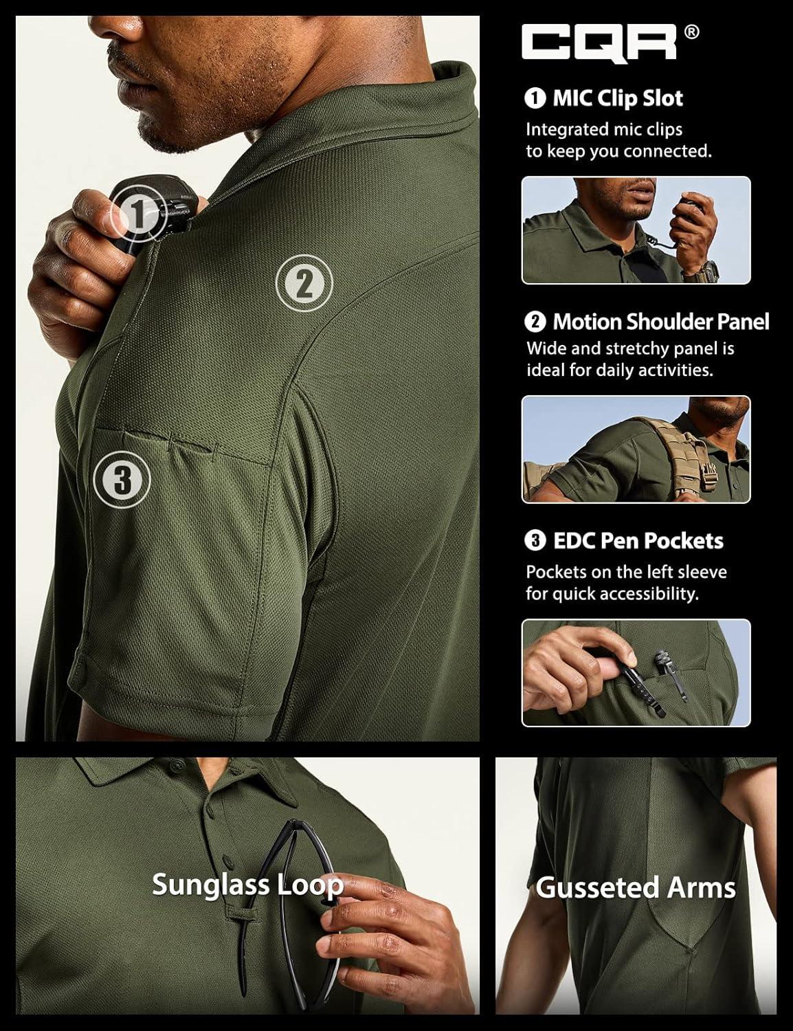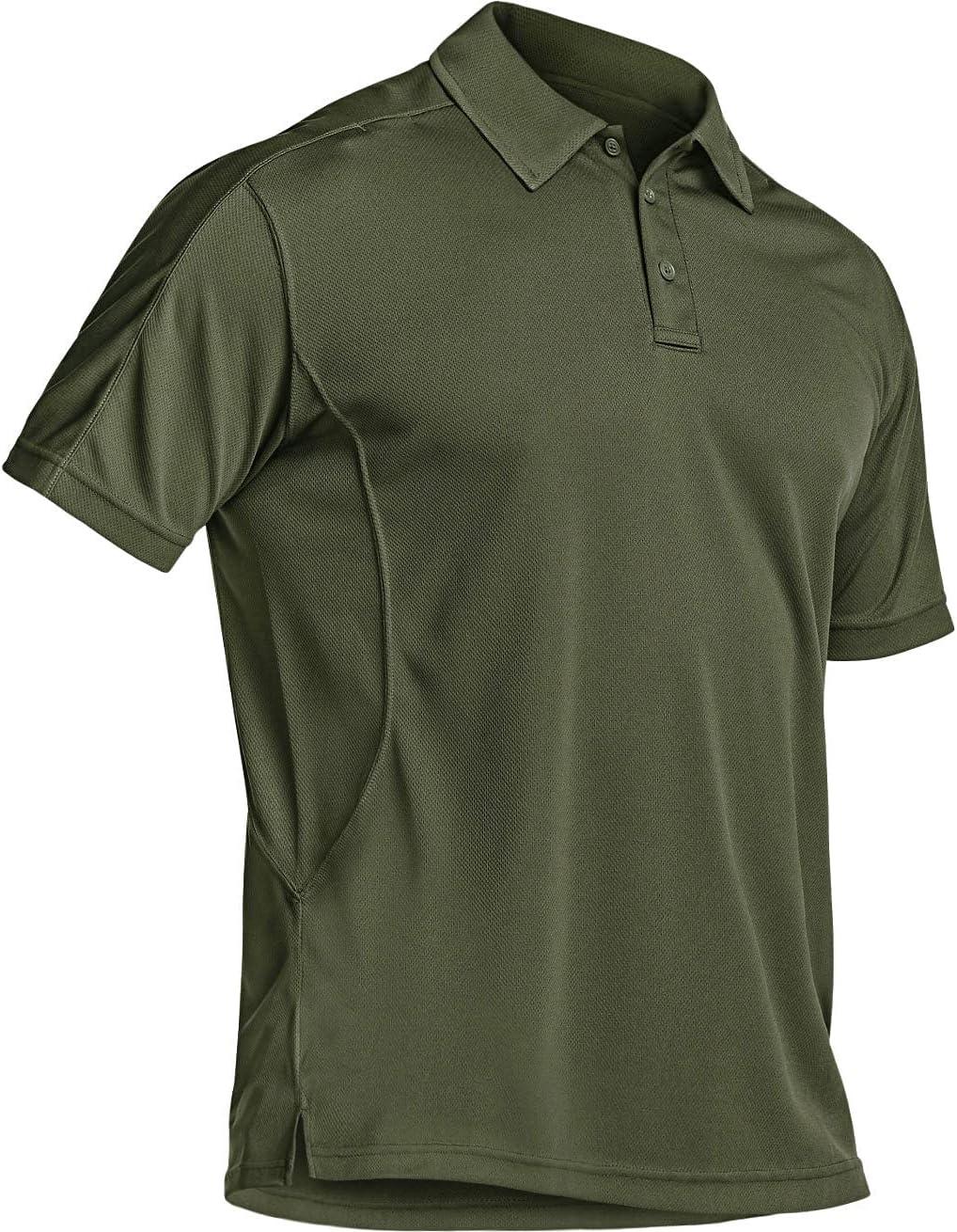 CQR Men’s Polo Shirts, Tactical Short Sleeve Golf Performance Shirts, Lightweight Dry Fit UPF 50+ Pique(Frost Pro Army Green)