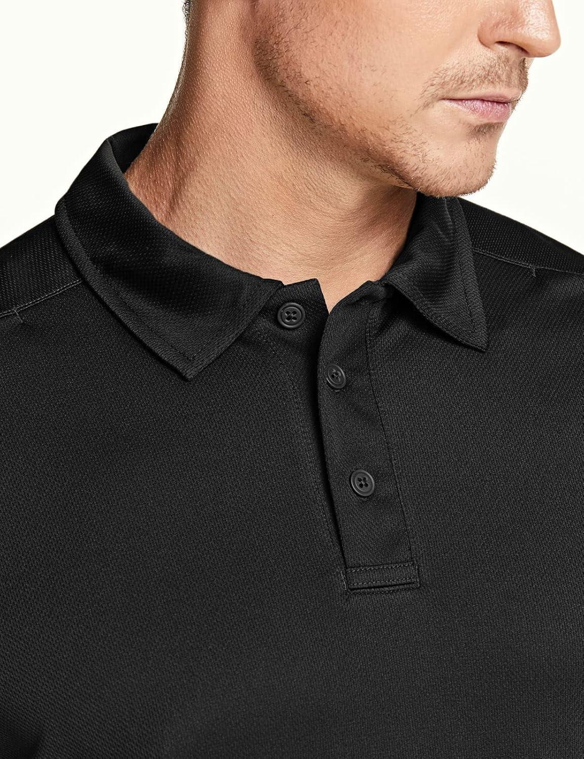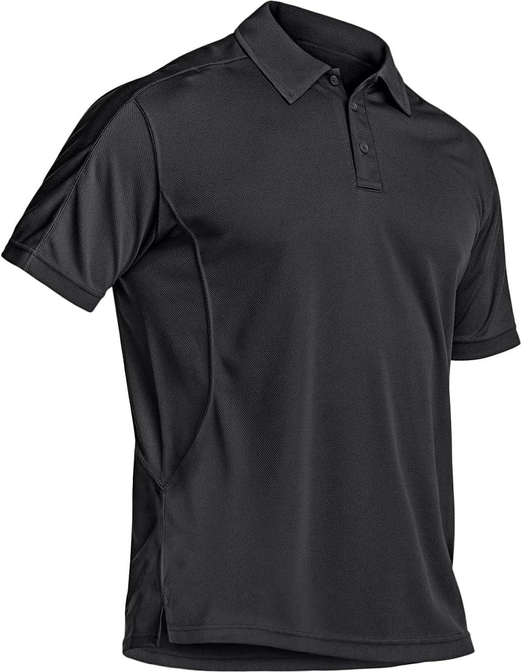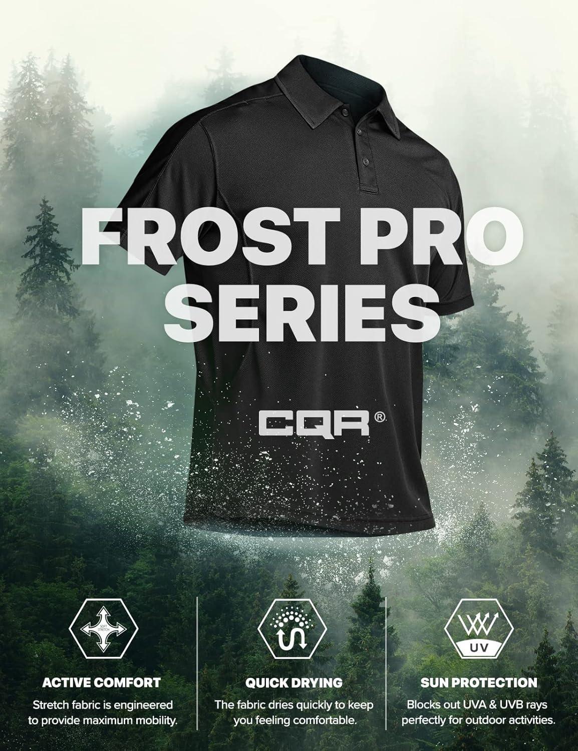 CQR Men’s Polo Shirts, Tactical Short Sleeve Golf Performance Shirts, Lightweight Dry Fit UPF 50+ Pique(Frost Pro Black)