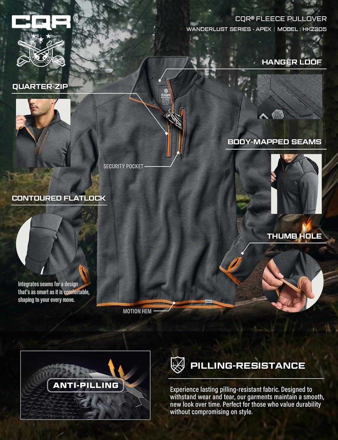 Don’t miss out on our limited-time offer: buy CQR Men’s Quarter Zip Utility Fleece Pullover, Outdoor Casual Thermal Sweater, Chest Zipper Pocket, Mock Neck Long Sleeve(Apex Charcoal), get {accessory} 50% off!