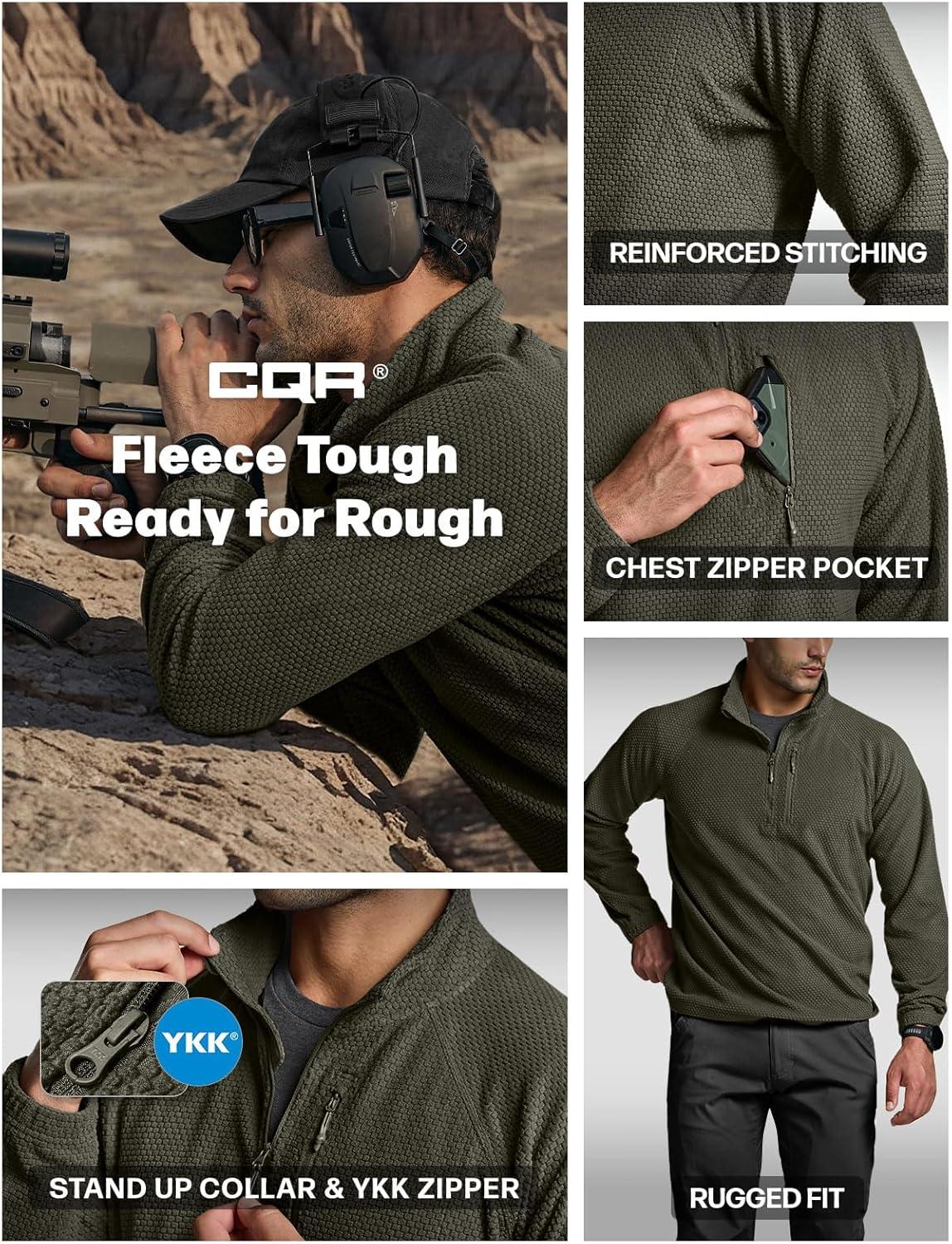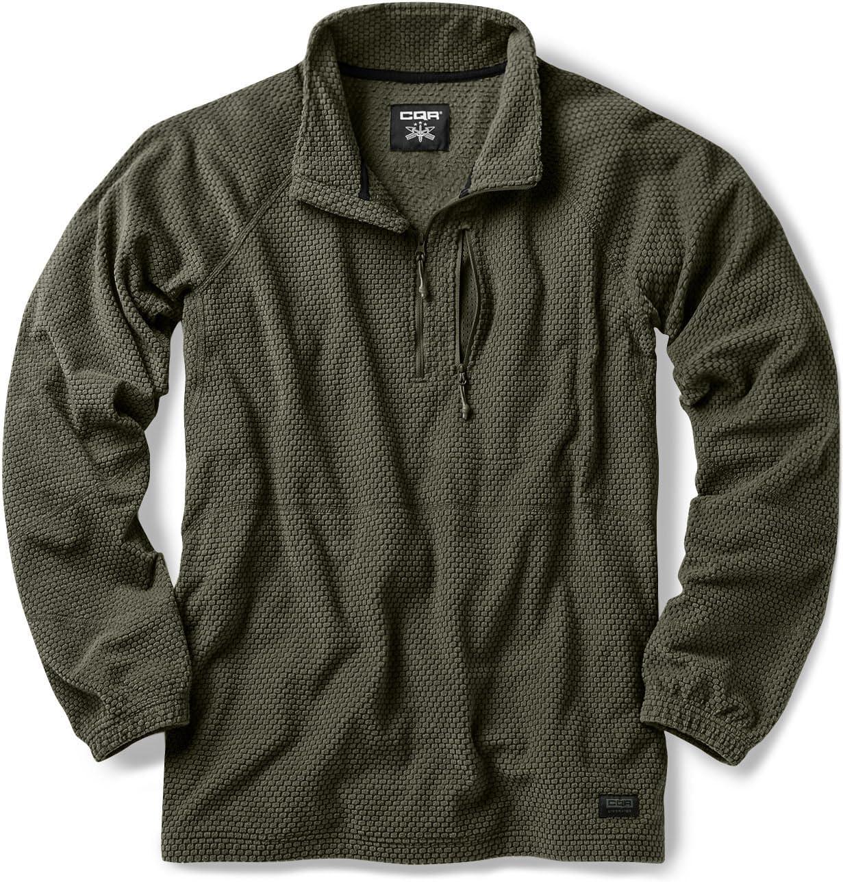 CQR Men’s Quarter Zip Utility Fleece Pullover, Outdoor Casual Thermal Sweater, Chest Zipper Pocket, Mock Neck Long Sleeve(Fortress Army Green)