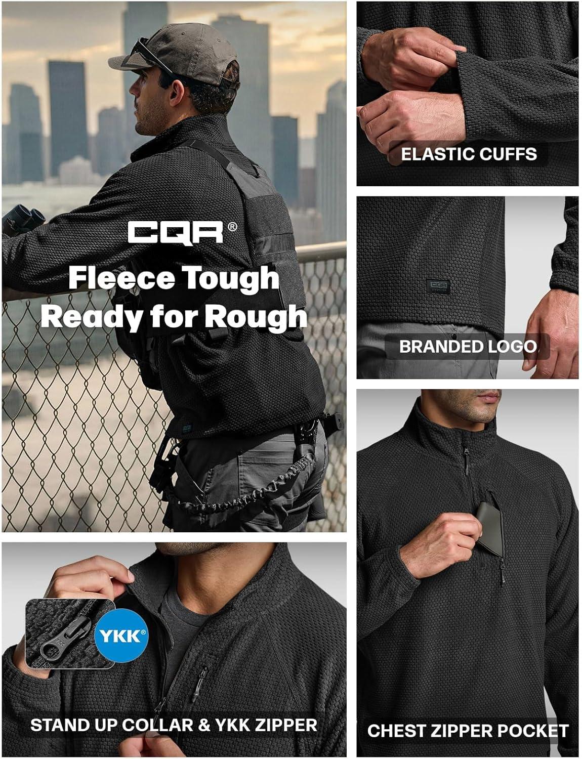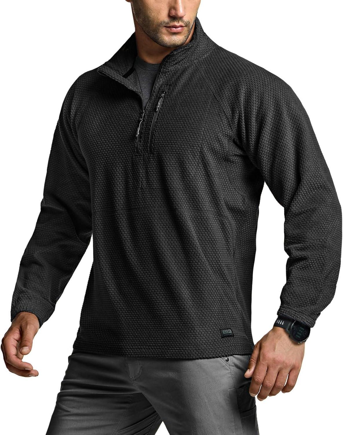 CQR Men’s Quarter Zip Utility Fleece Pullover, Outdoor Casual Thermal Sweater, Chest Zipper Pocket, Mock Neck Long Sleeve(Fortress Black)