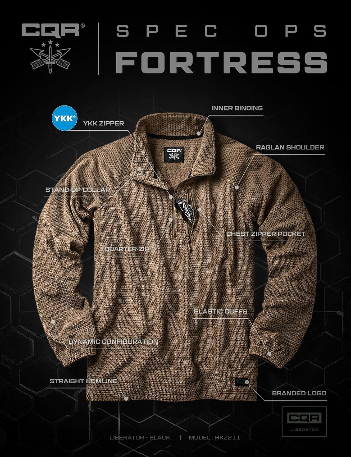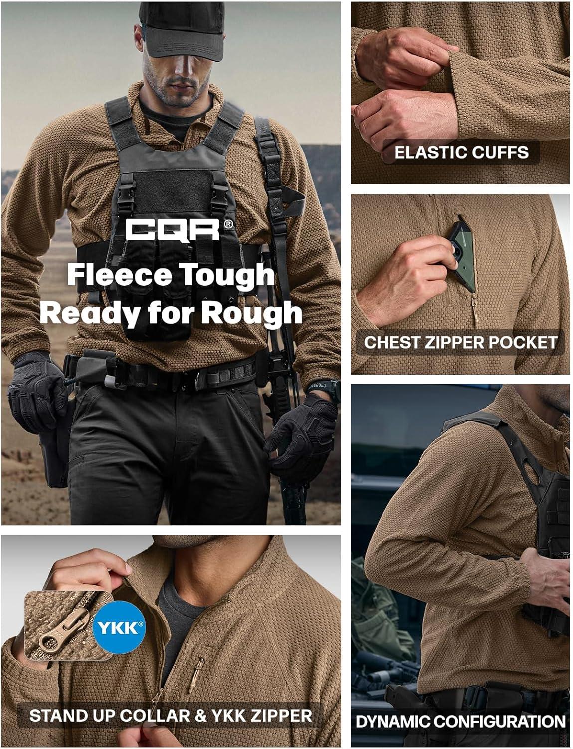 CQR Men’s Quarter Zip Utility Fleece Pullover, Outdoor Casual Thermal Sweater, Chest Zipper Pocket, Mock Neck Long Sleeve(Fortress Coyote)
