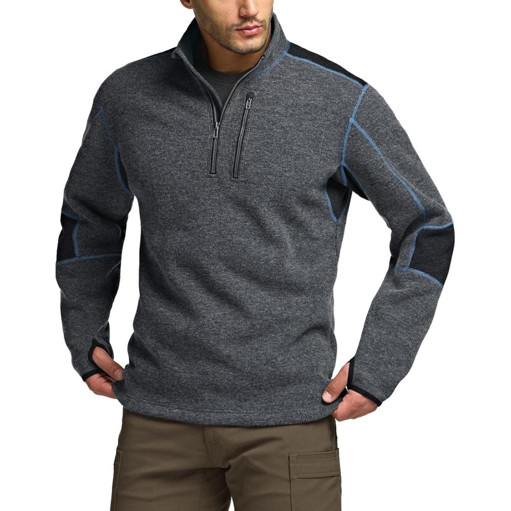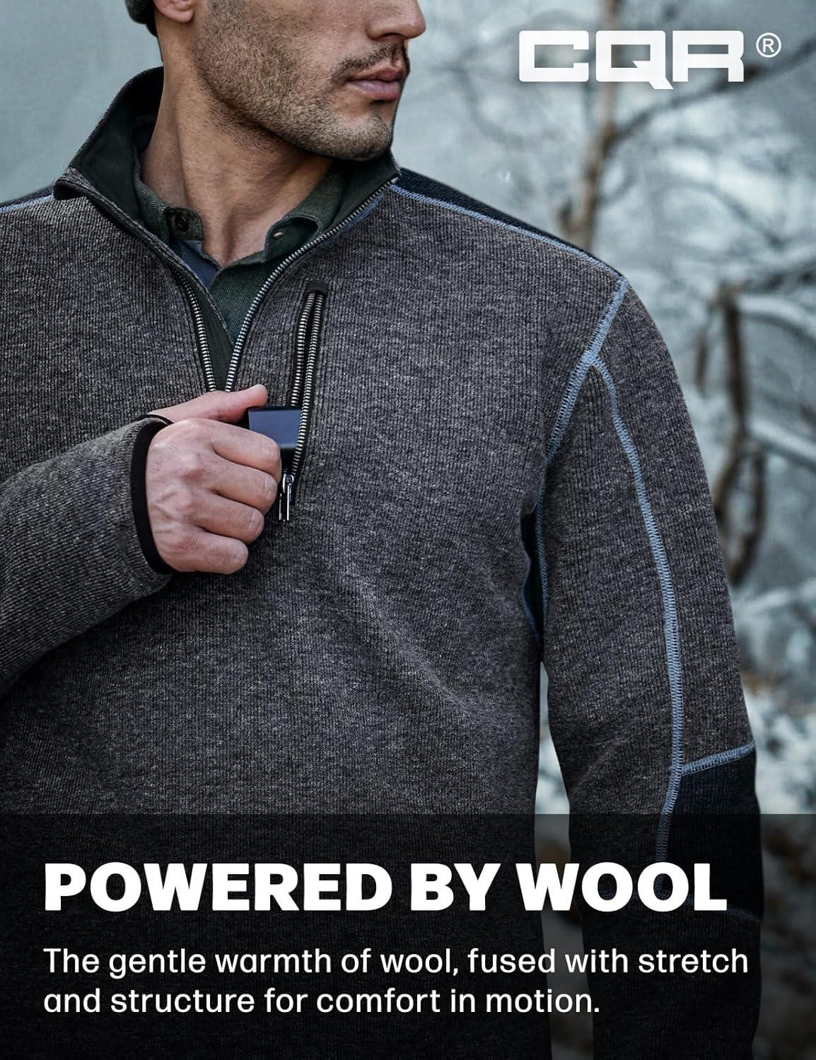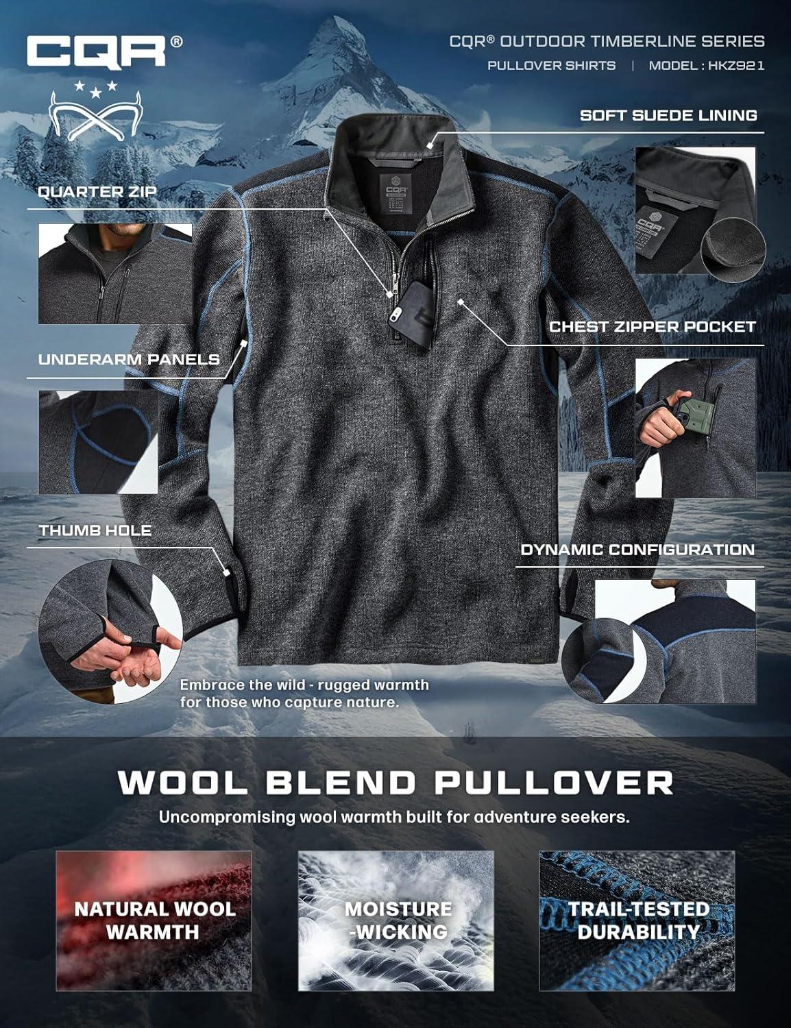 CQR Men’s Quarter Zip Utility Fleece Pullover, Outdoor Casual Thermal Sweater, Chest Zipper Pocket, Mock Neck Long Sleeve(Timberline Grey & Navy)