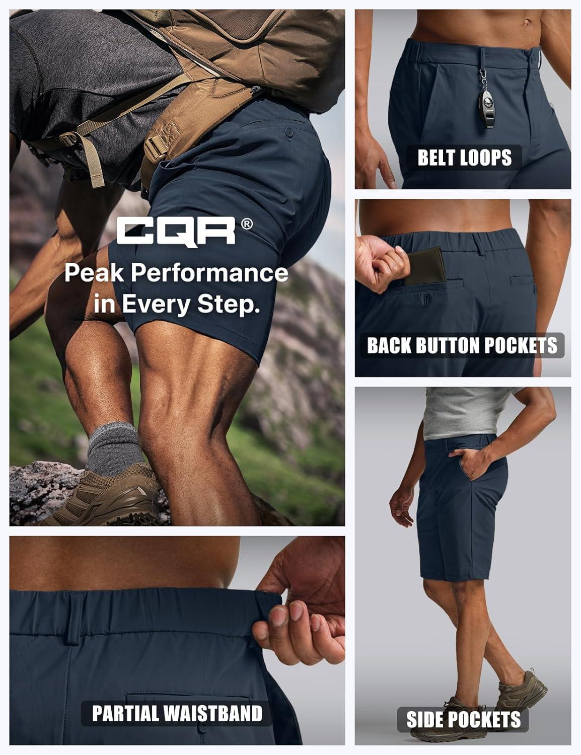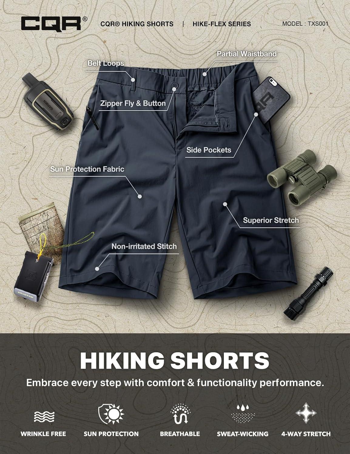 CQR Men’s Quick Dry Stretch Hiking Cargo Shorts, Lightweight Water Resistant Tactical Casual, Golf & Outdoor with Pockets(Hike Flex Navy)