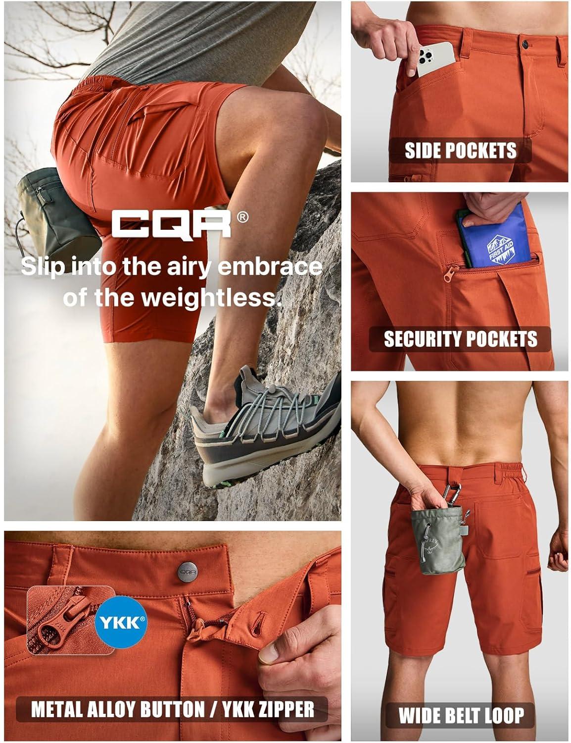 CQR Men’s Quick Dry Stretch Hiking Cargo Shorts, Lightweight Water Resistant Tactical Casual, Golf & Outdoor with Pockets(Rocky Burnt Orange)