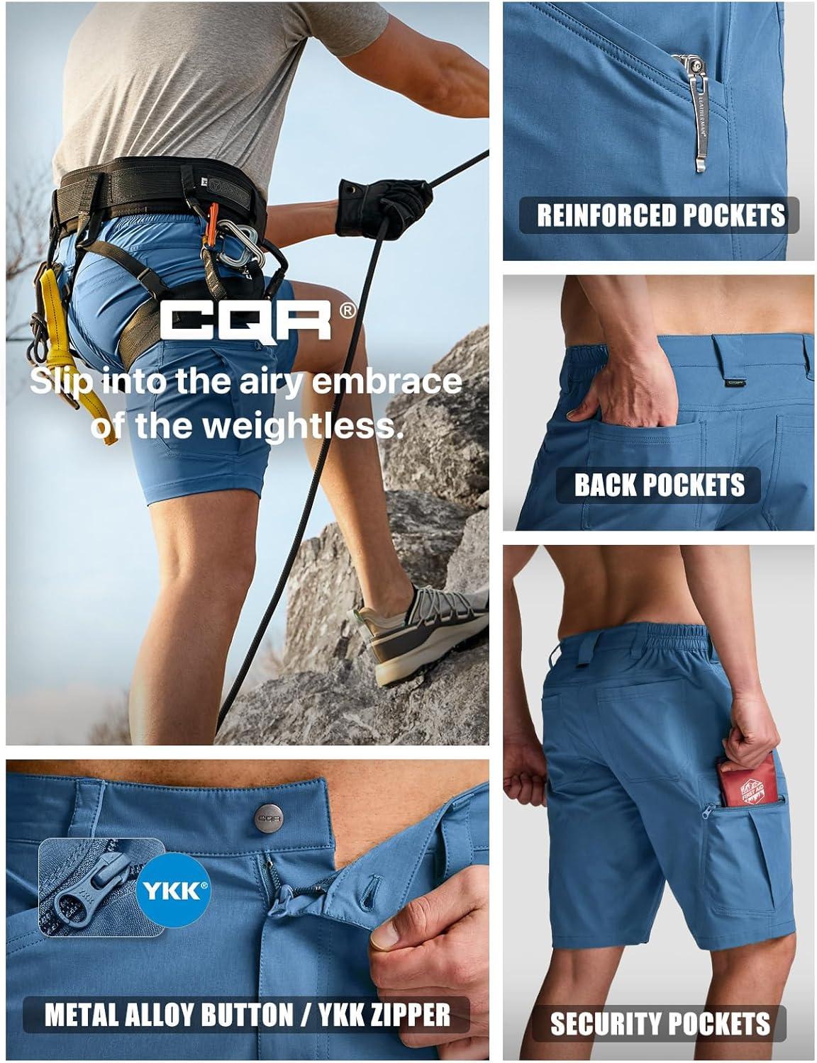 CQR Men’s Quick Dry Stretch Hiking Cargo Shorts, Lightweight Water Resistant Tactical Casual, Golf & Outdoor with Pockets(Rocky Glaucous)
