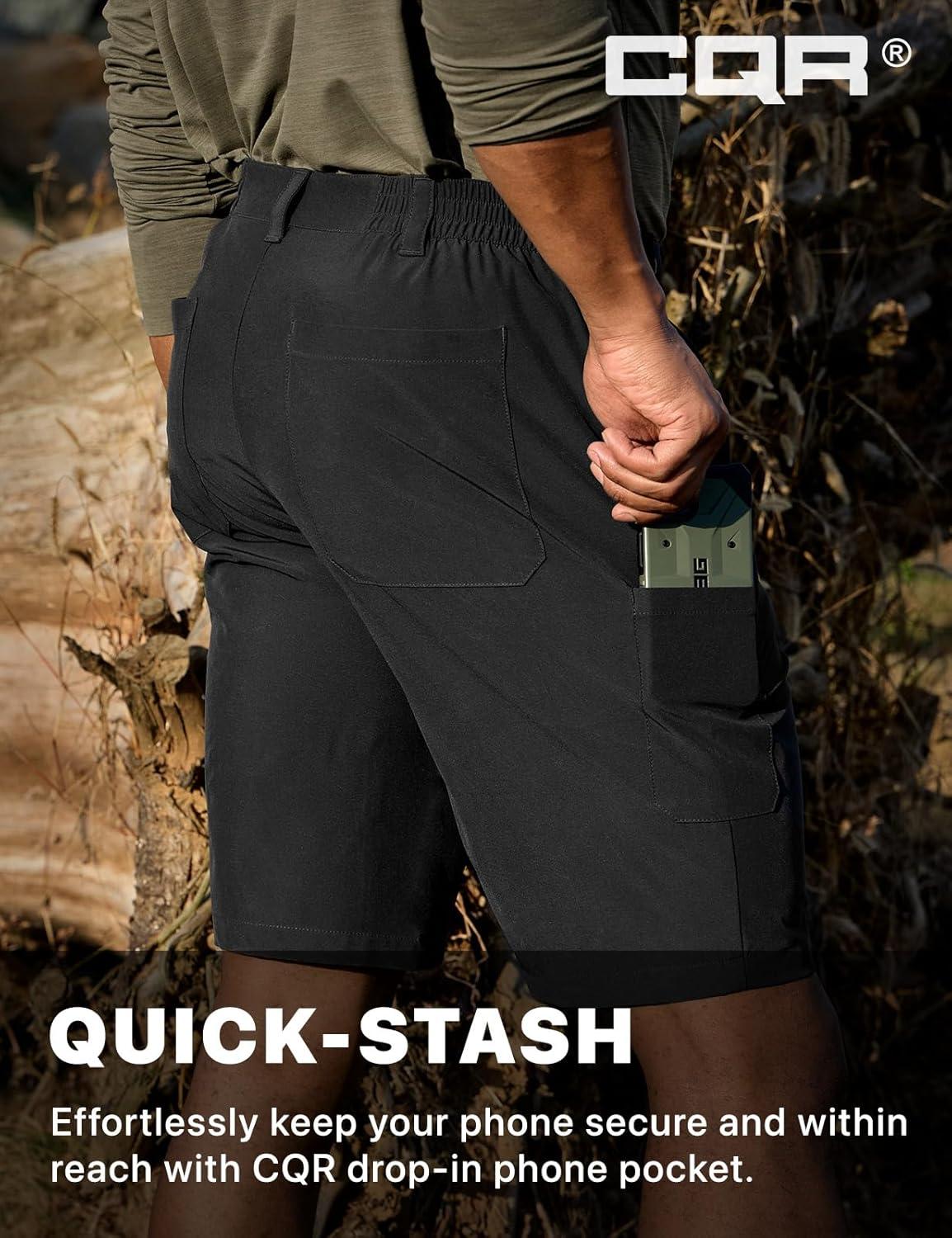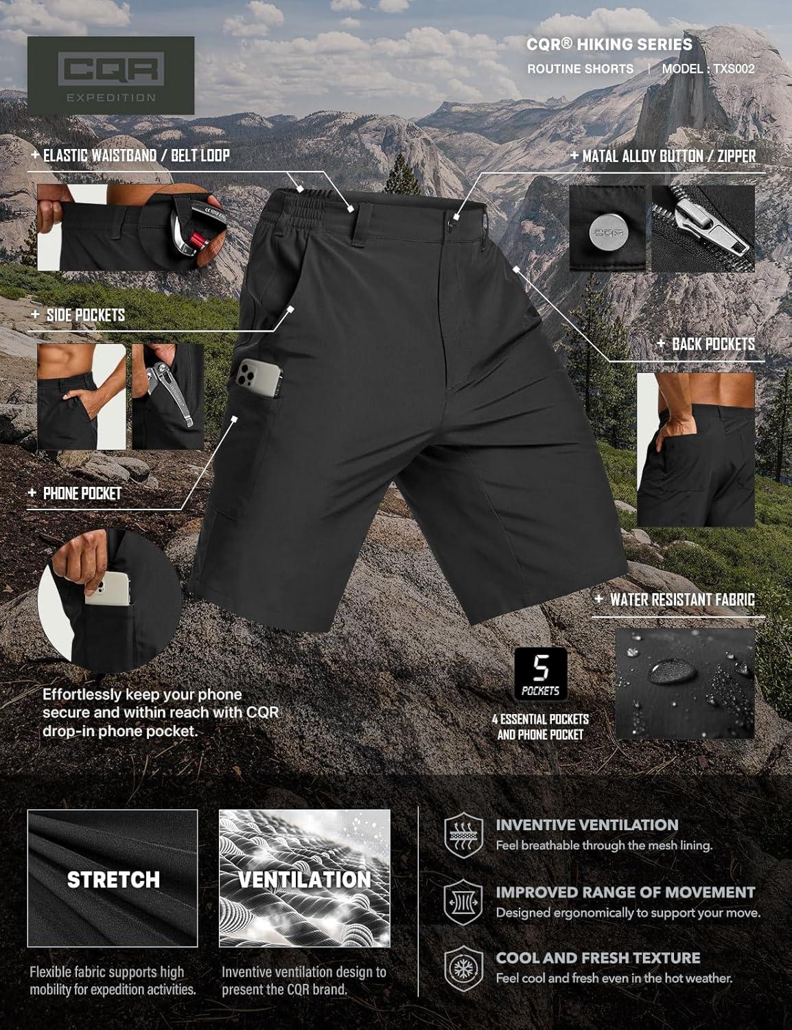 CQR Men’s Quick Dry Stretch Hiking Cargo Shorts, Lightweight Water Resistant Tactical Casual, Golf & Outdoor with Pockets(Routine Black)