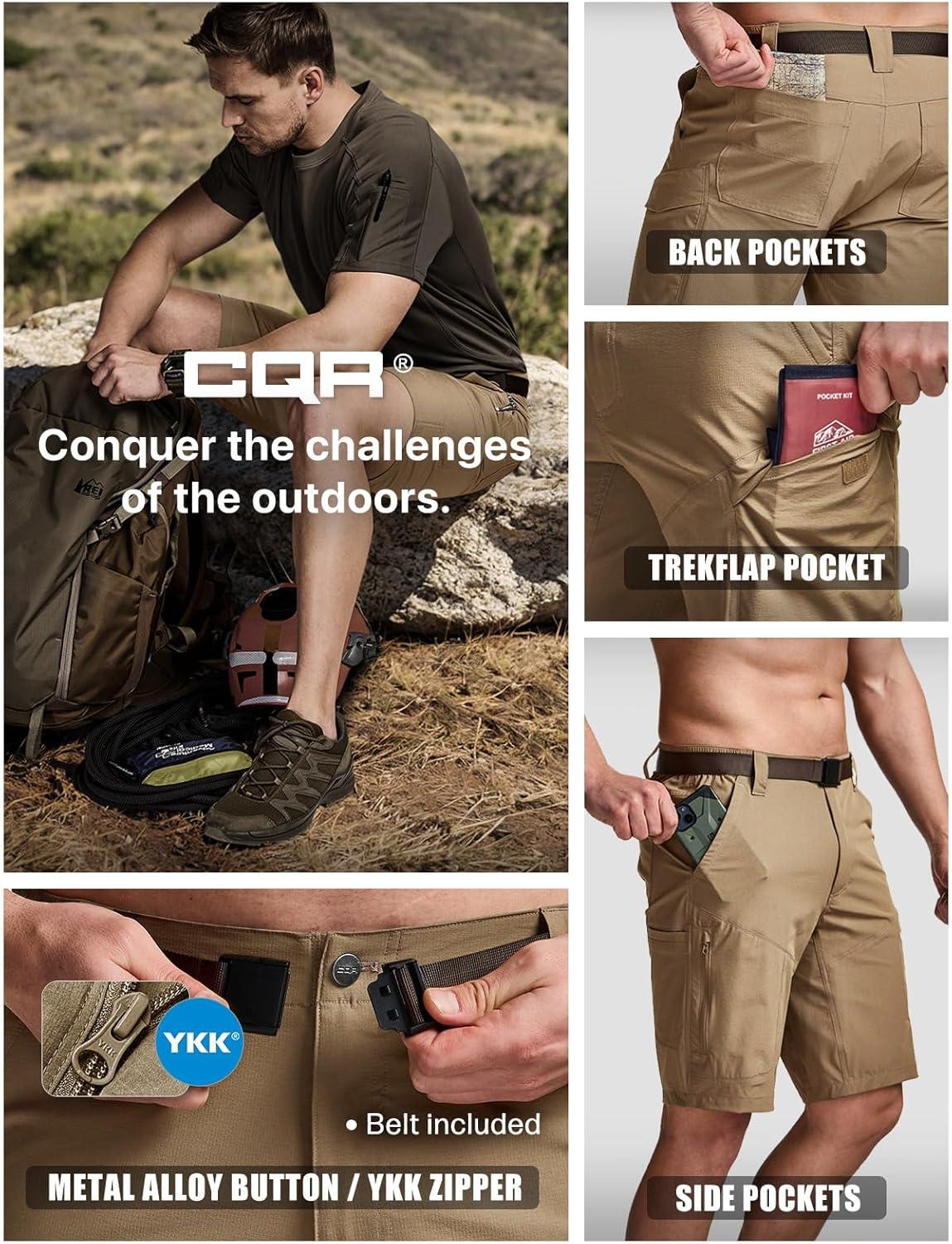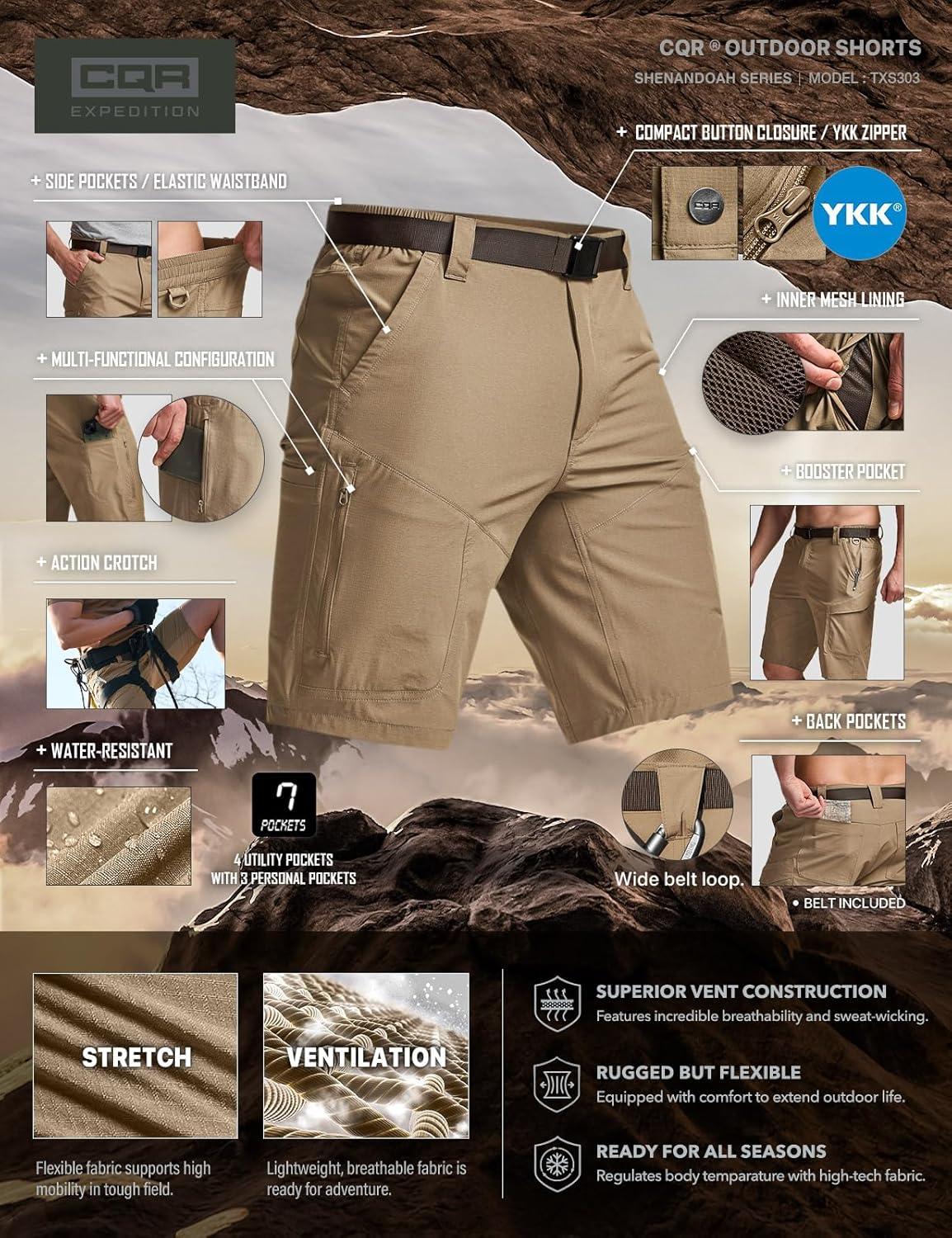 CQR Men’s Quick Dry Stretch Hiking Cargo Shorts, Lightweight Water Resistant Tactical Casual, Golf & Outdoor with Pockets(Shendo Trail W/Belt Cougar)