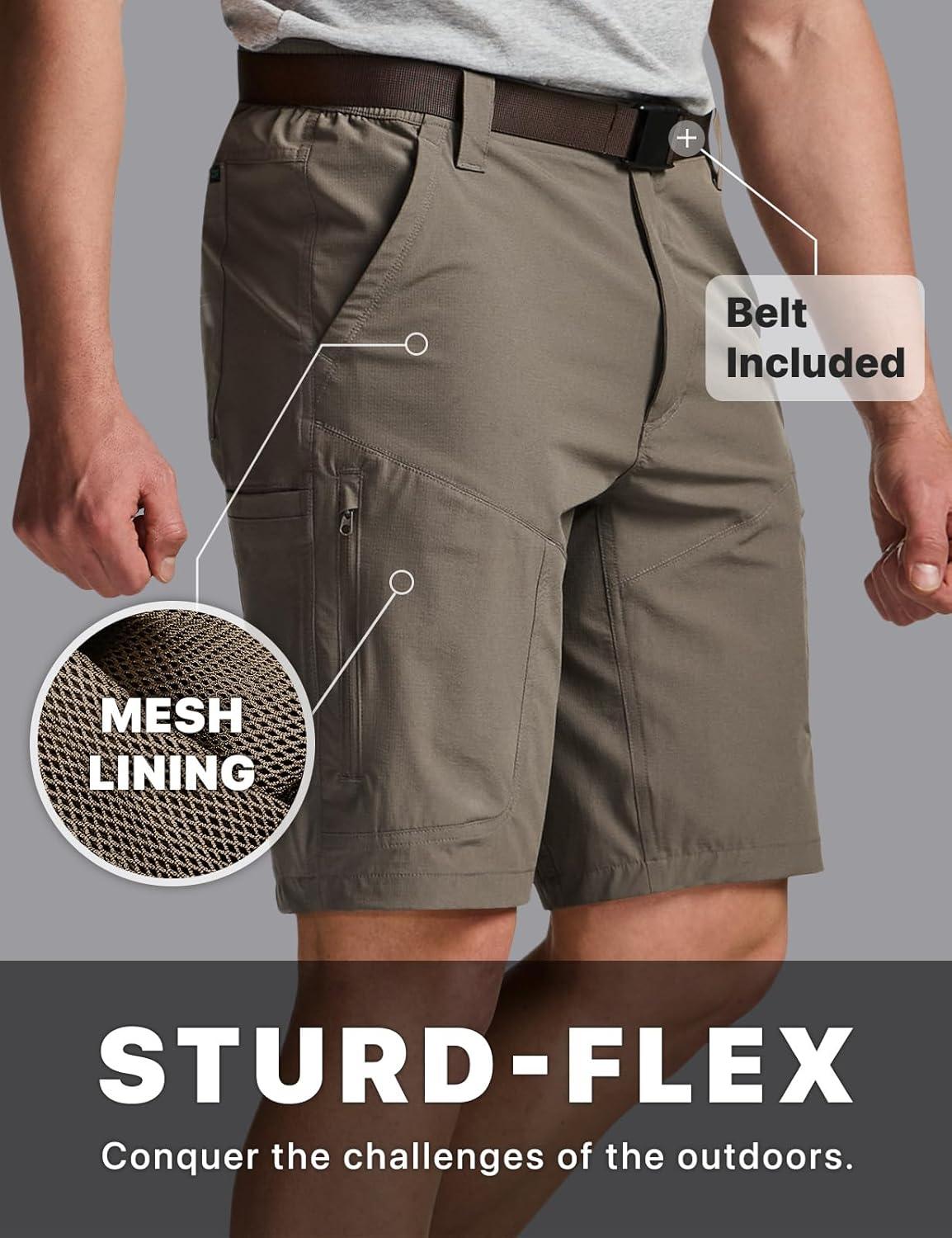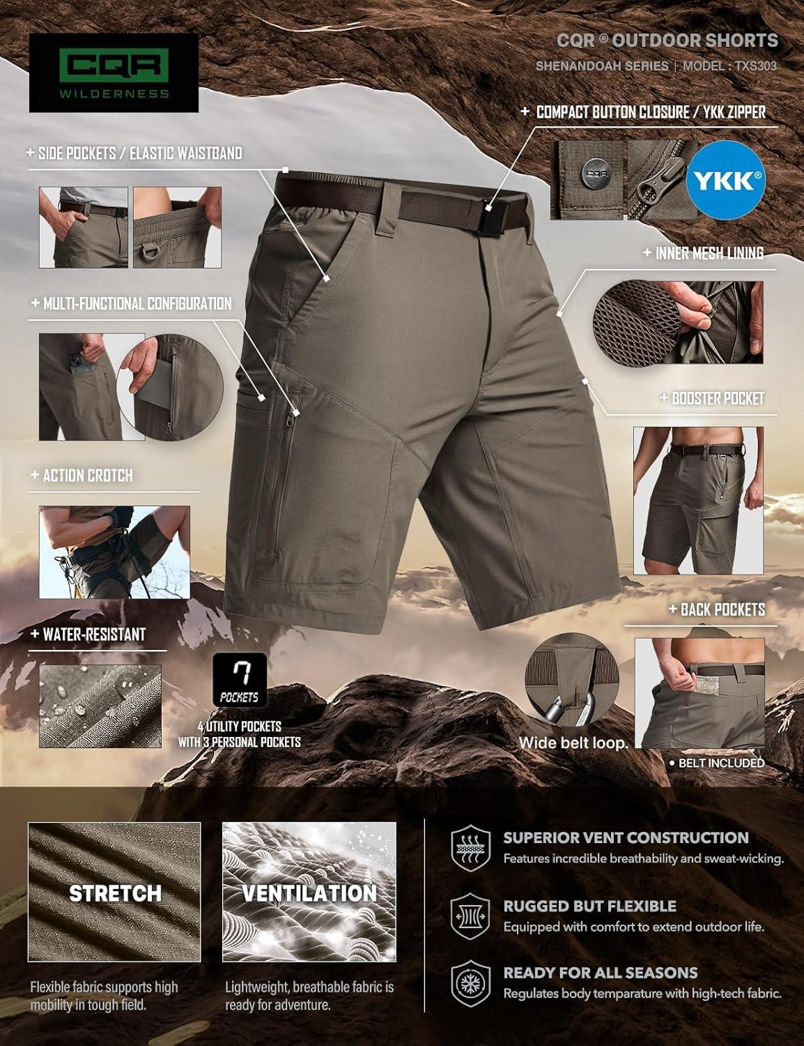 CQR Men’s Quick Dry Stretch Hiking Cargo Shorts, Lightweight Water Resistant Tactical Casual, Golf & Outdoor with Pockets(Shendo Trail W/Belt Sand Khaki)