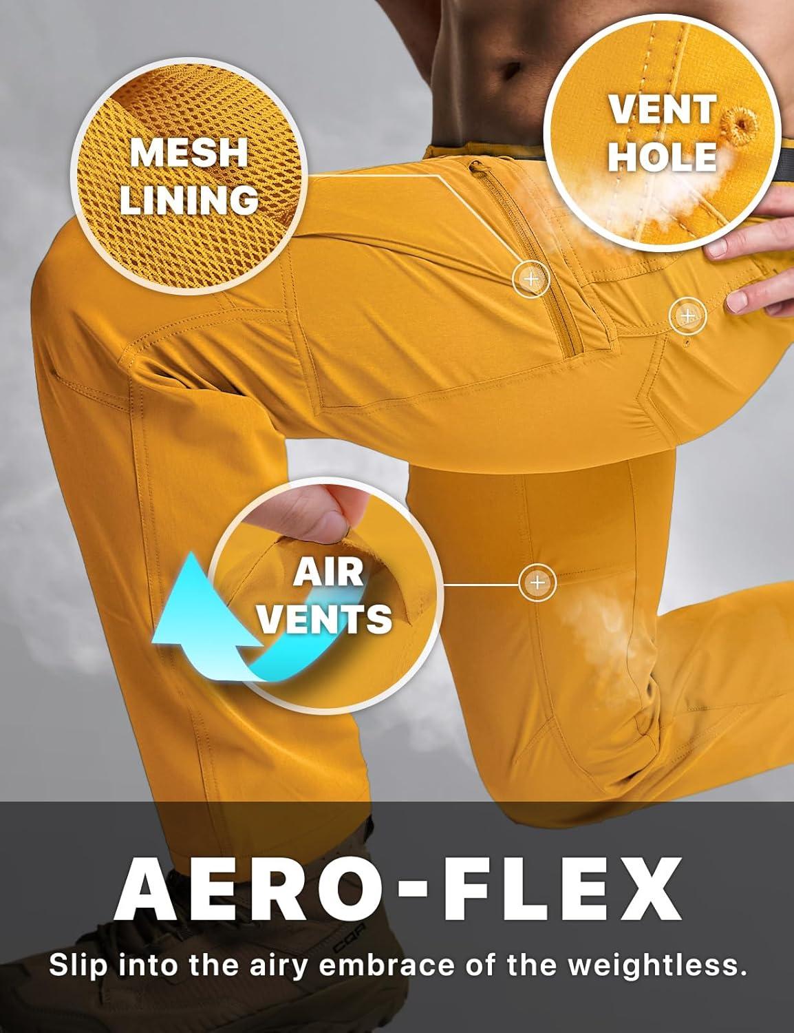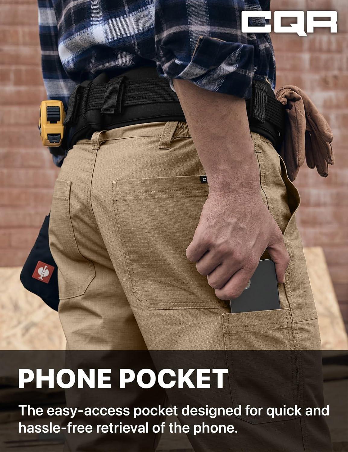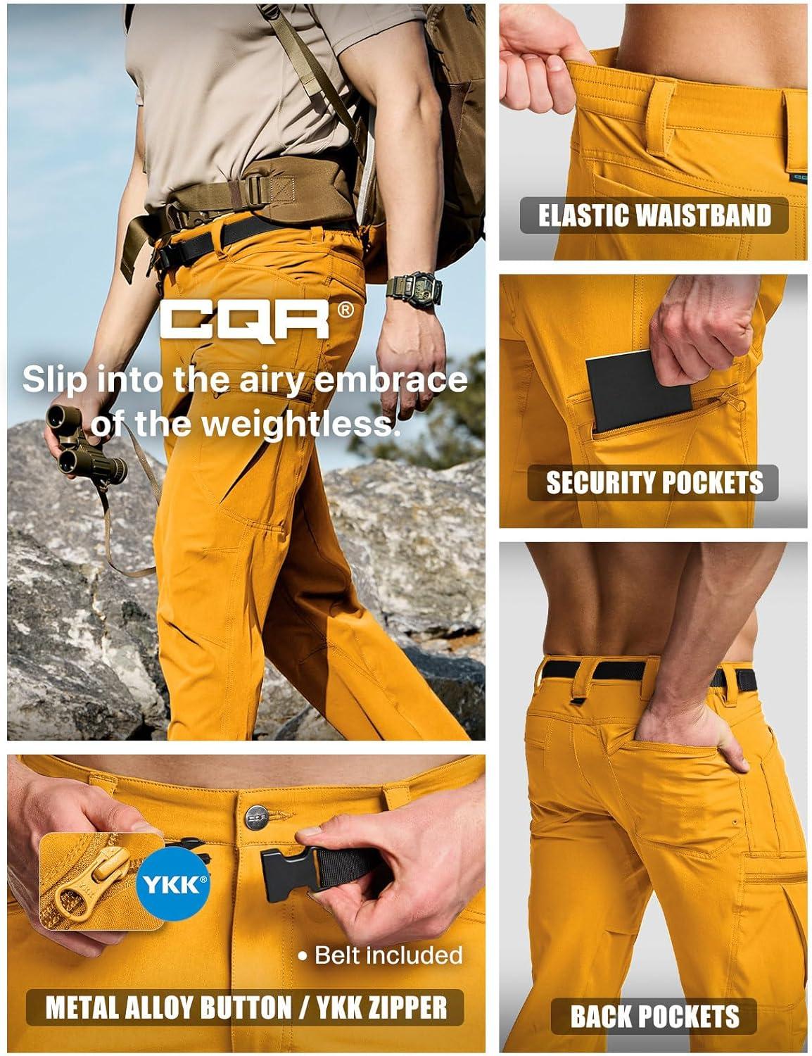 CQR Men’s Quick Dry Tactical Pants, Water Resistant Outdoor Pants, Lightweight Stretch Cargo Work Hiking Pants(Rocky Cargo W/Belt Amber)