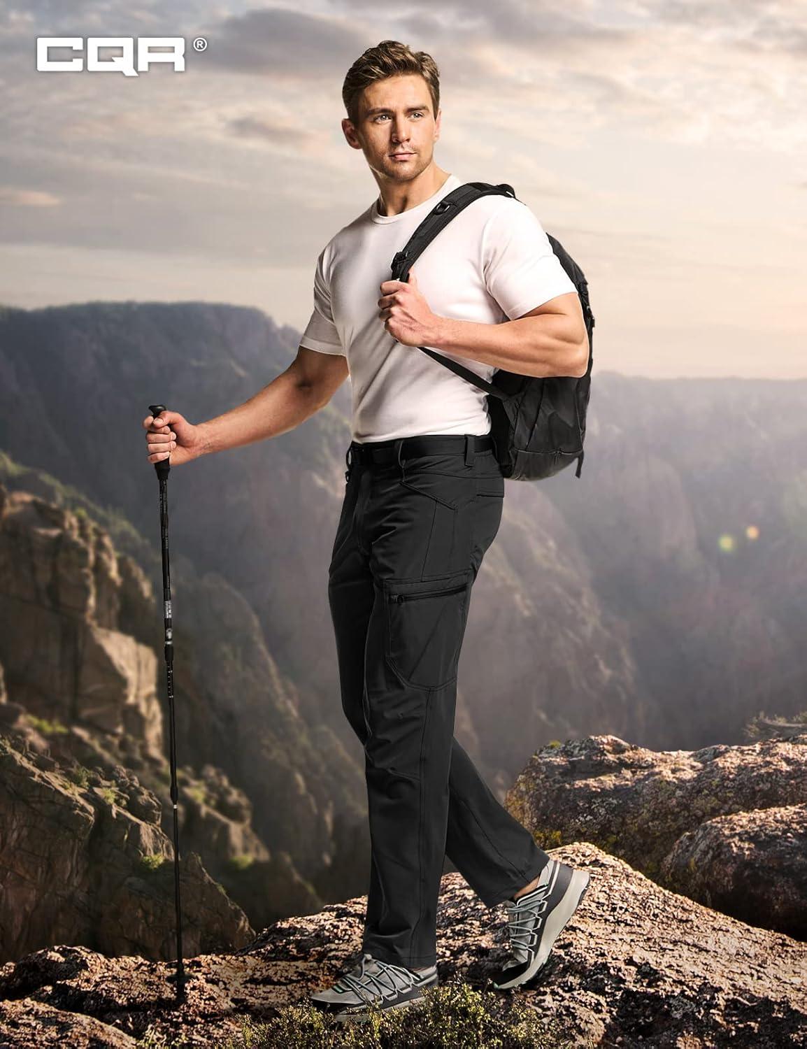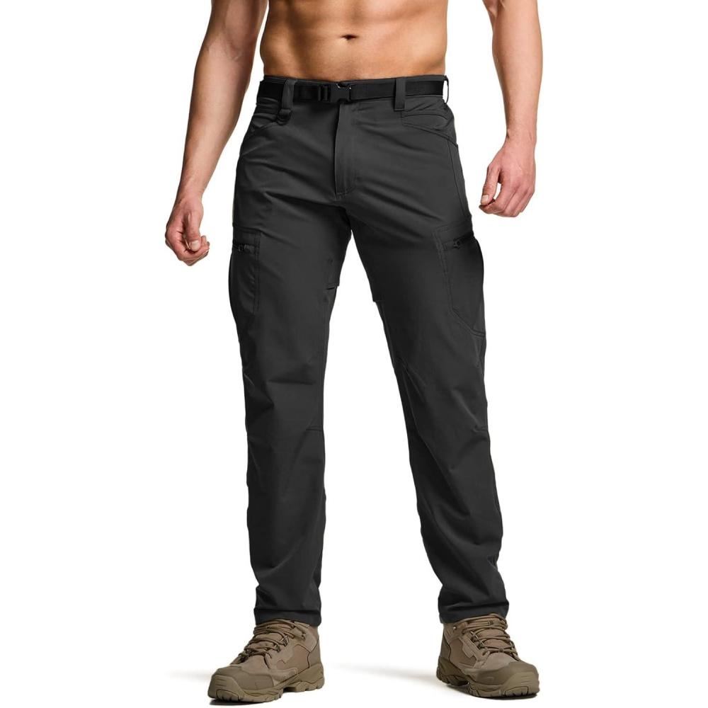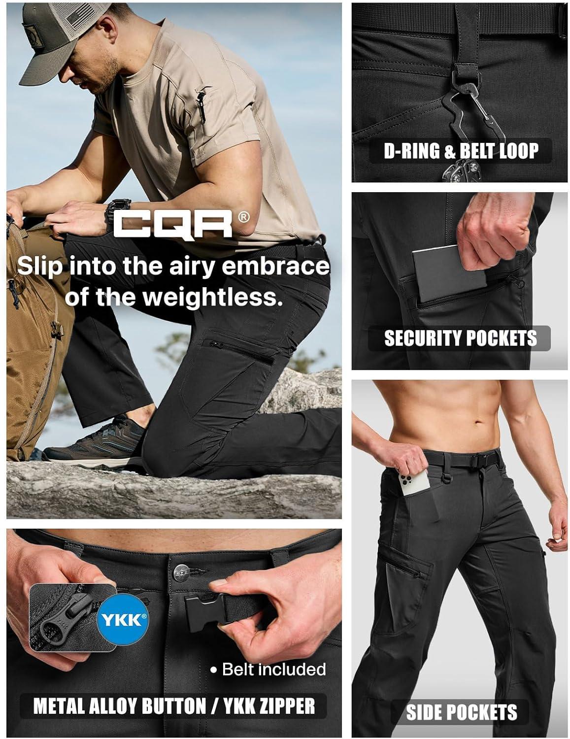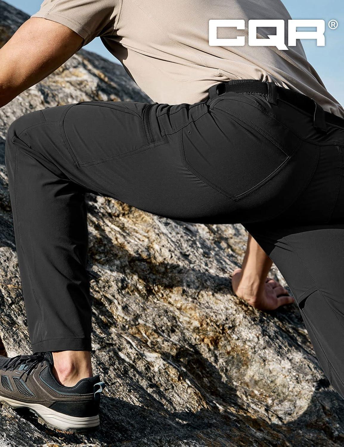 CQR Men’s Quick Dry Tactical Pants, Water Resistant Outdoor Pants, Lightweight Stretch Cargo Work Hiking Pants(Rocky Cargo W/Belt Black)