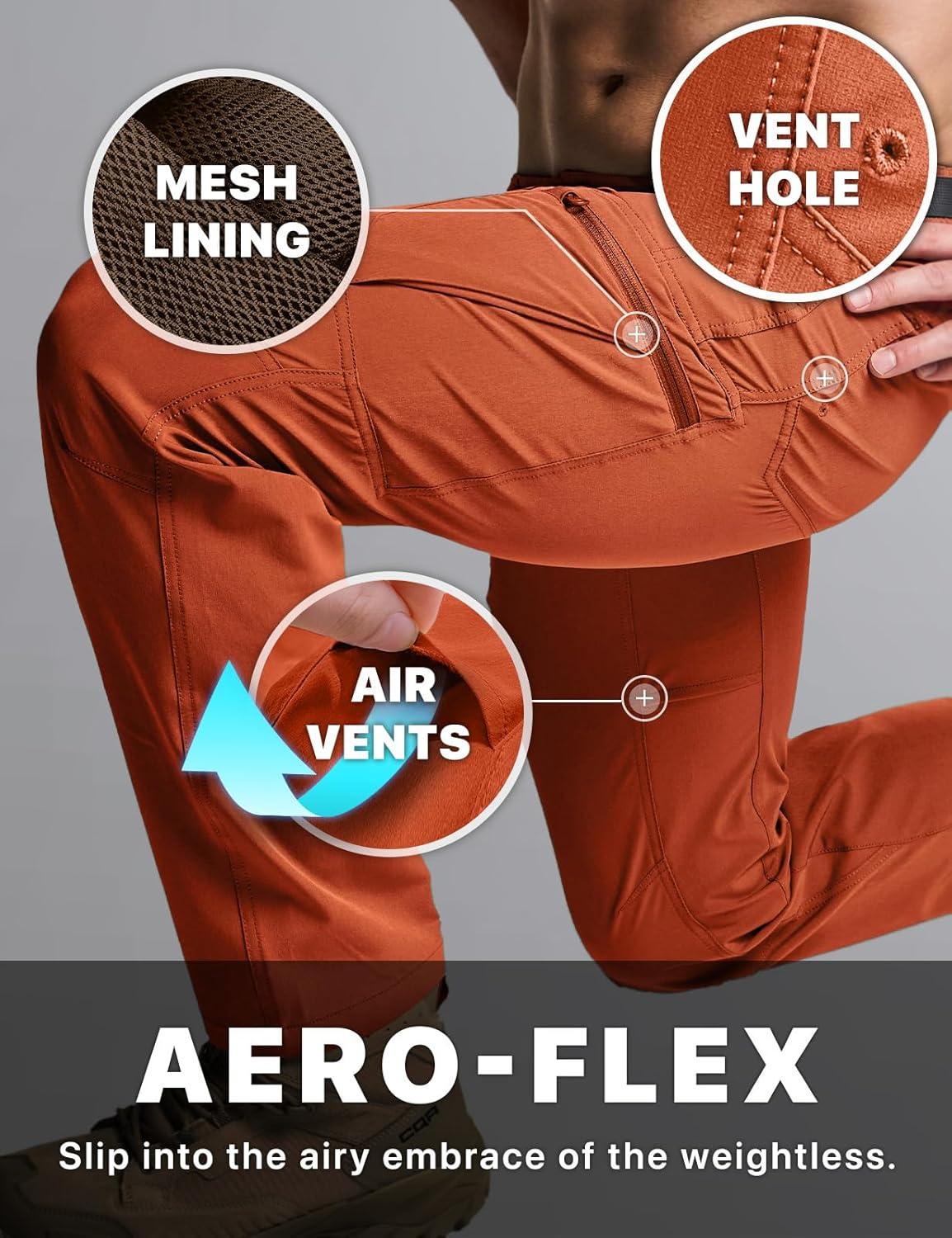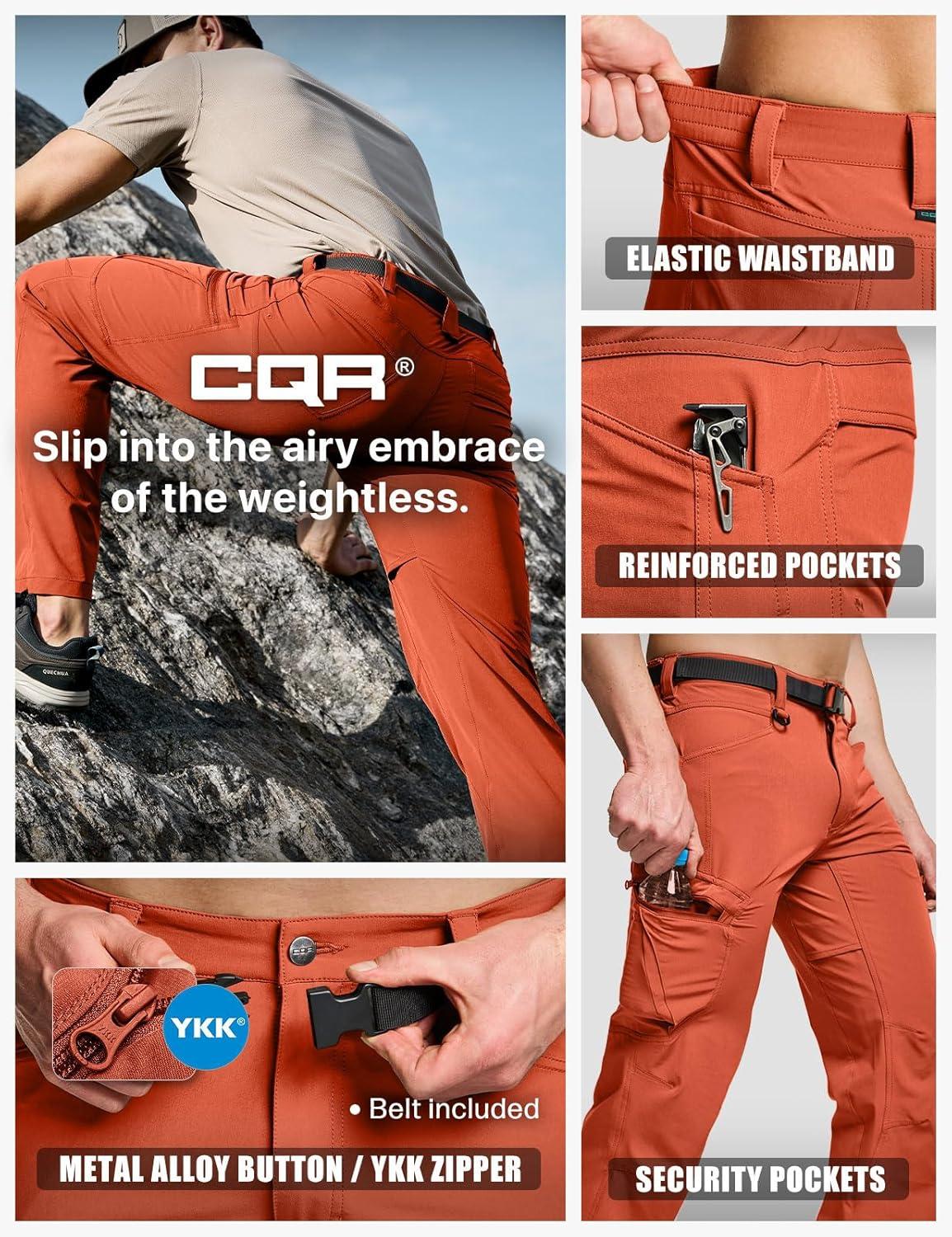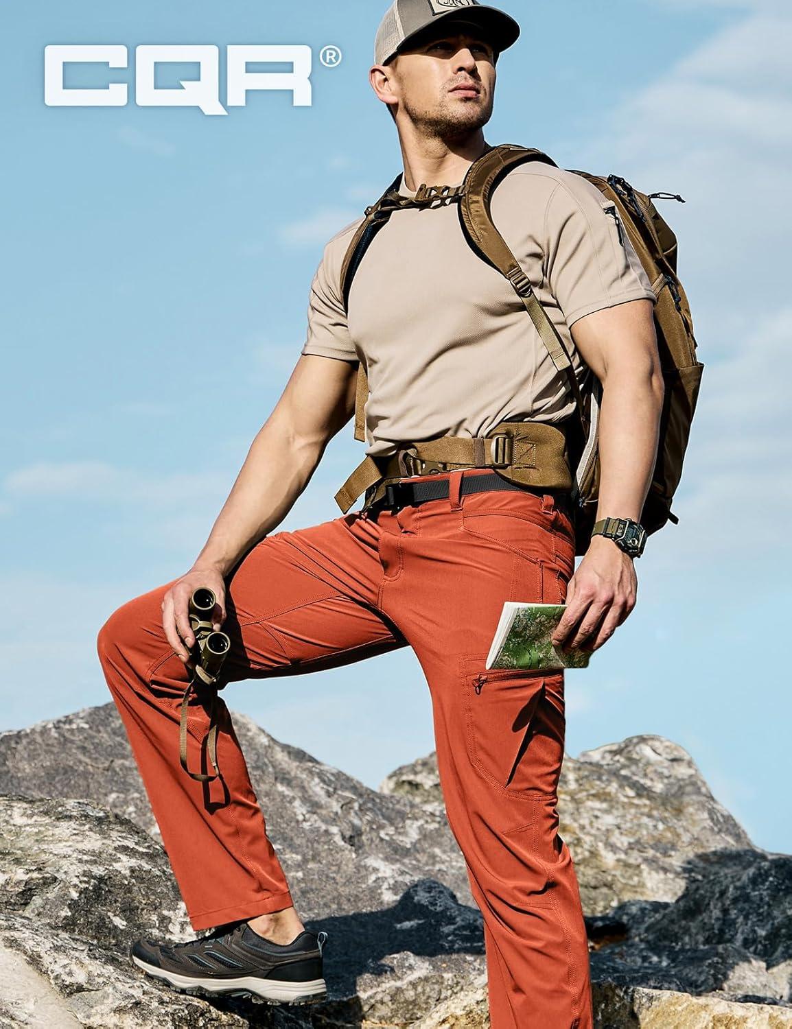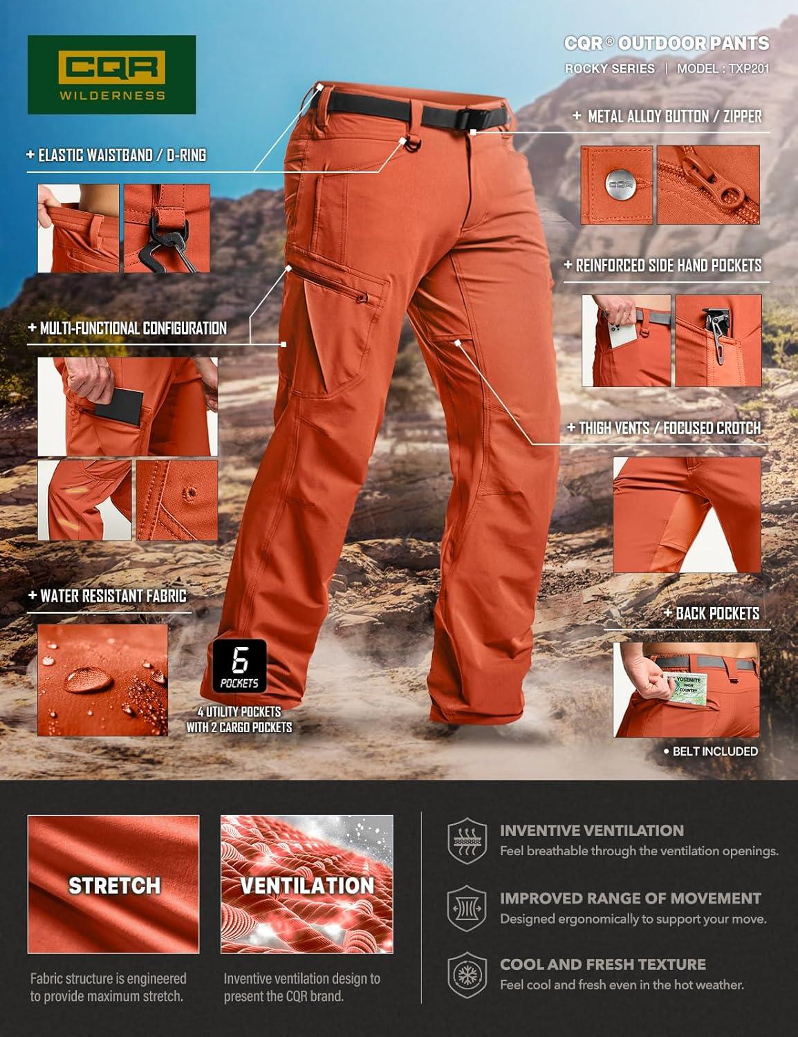 CQR Men’s Quick Dry Tactical Pants, Water Resistant Outdoor Pants, Lightweight Stretch Cargo Work Hiking Pants(Rocky Cargo W/Belt Burnt Orange)