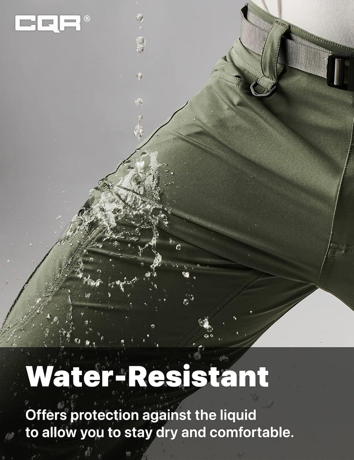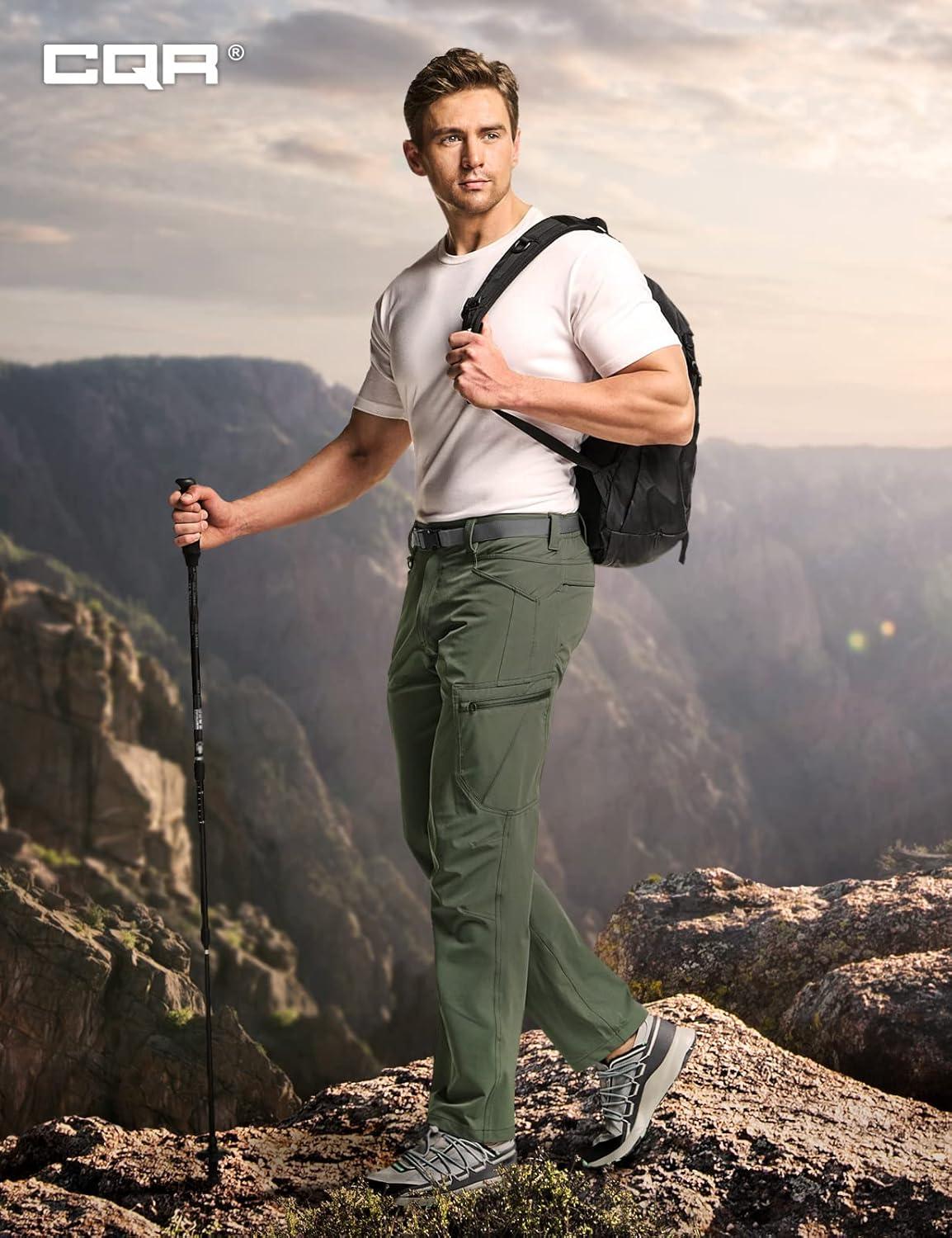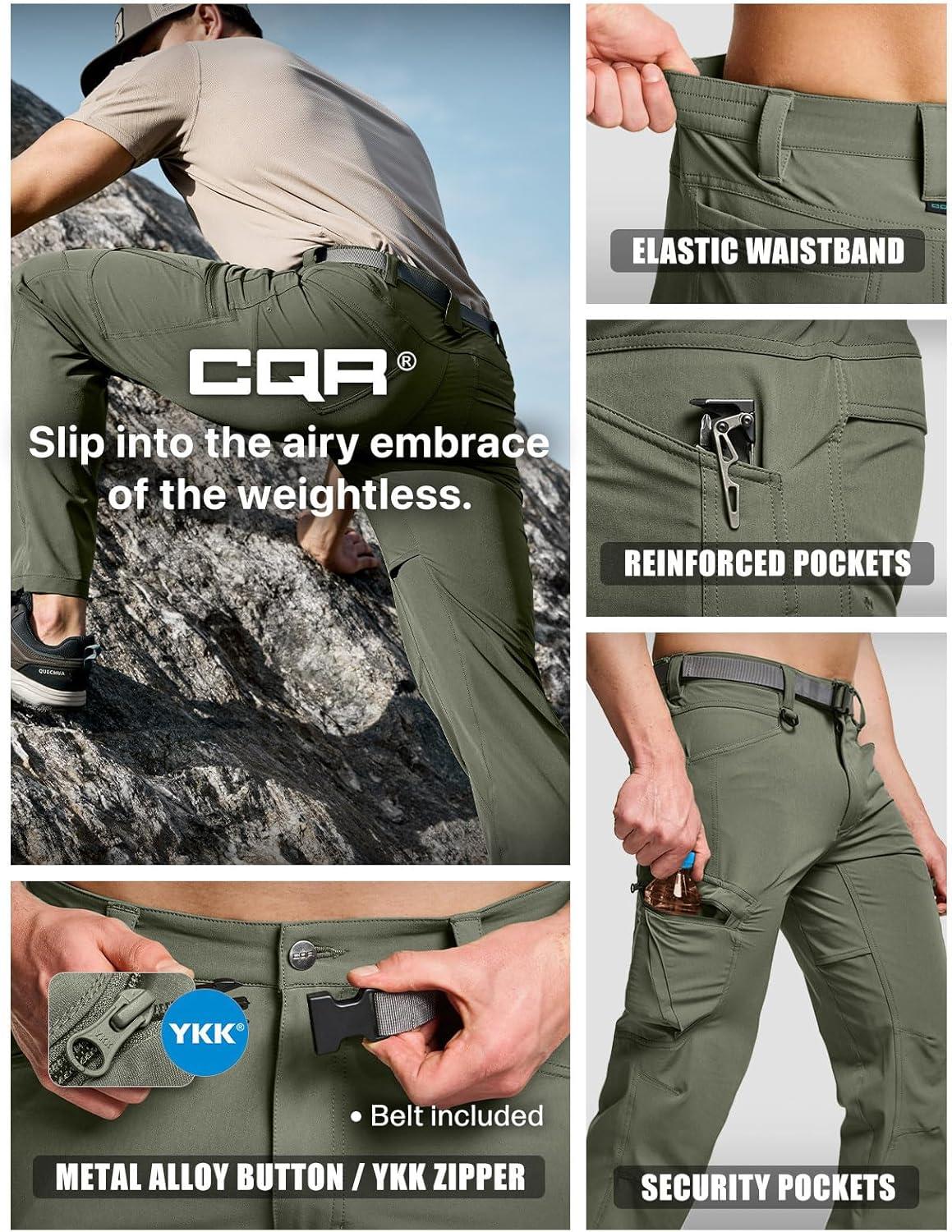 CQR Men’s Quick Dry Tactical Pants, Water Resistant Outdoor Pants, Lightweight Stretch Cargo Work Hiking Pants(Rocky Cargo W/Belt Lichen)