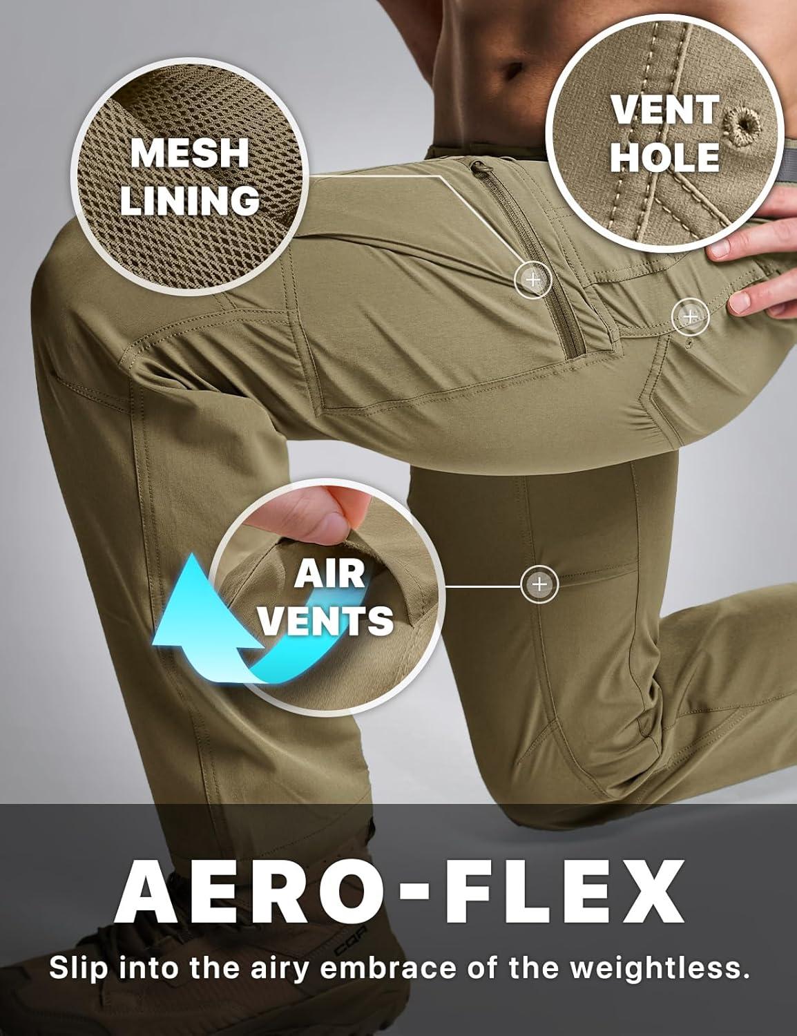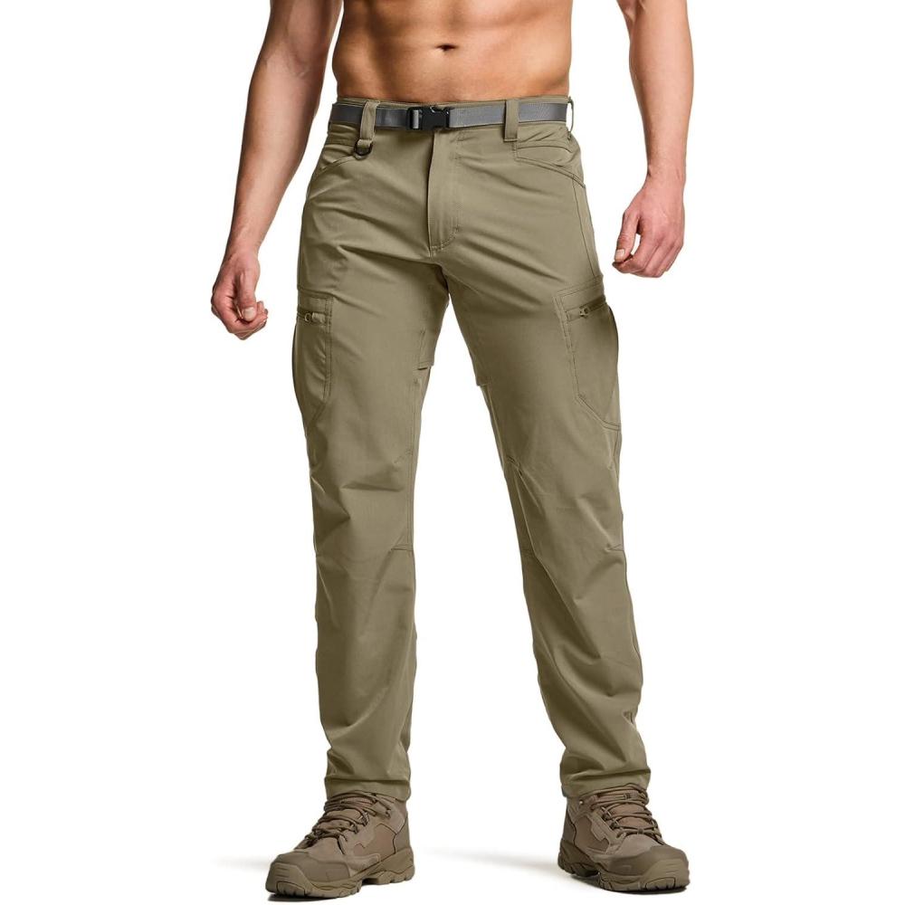 CQR Men’s Quick Dry Tactical Pants, Water Resistant Outdoor Pants, Lightweight Stretch Cargo Work Hiking Pants(Rocky Cargo W/Belt Tan)