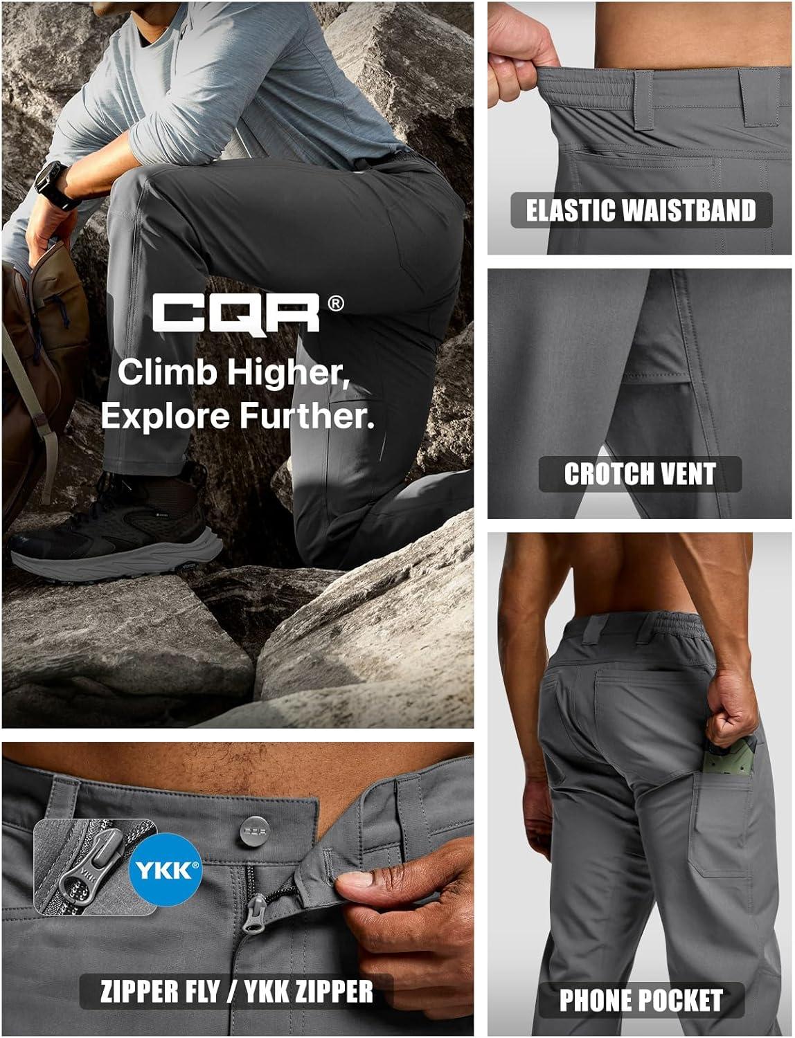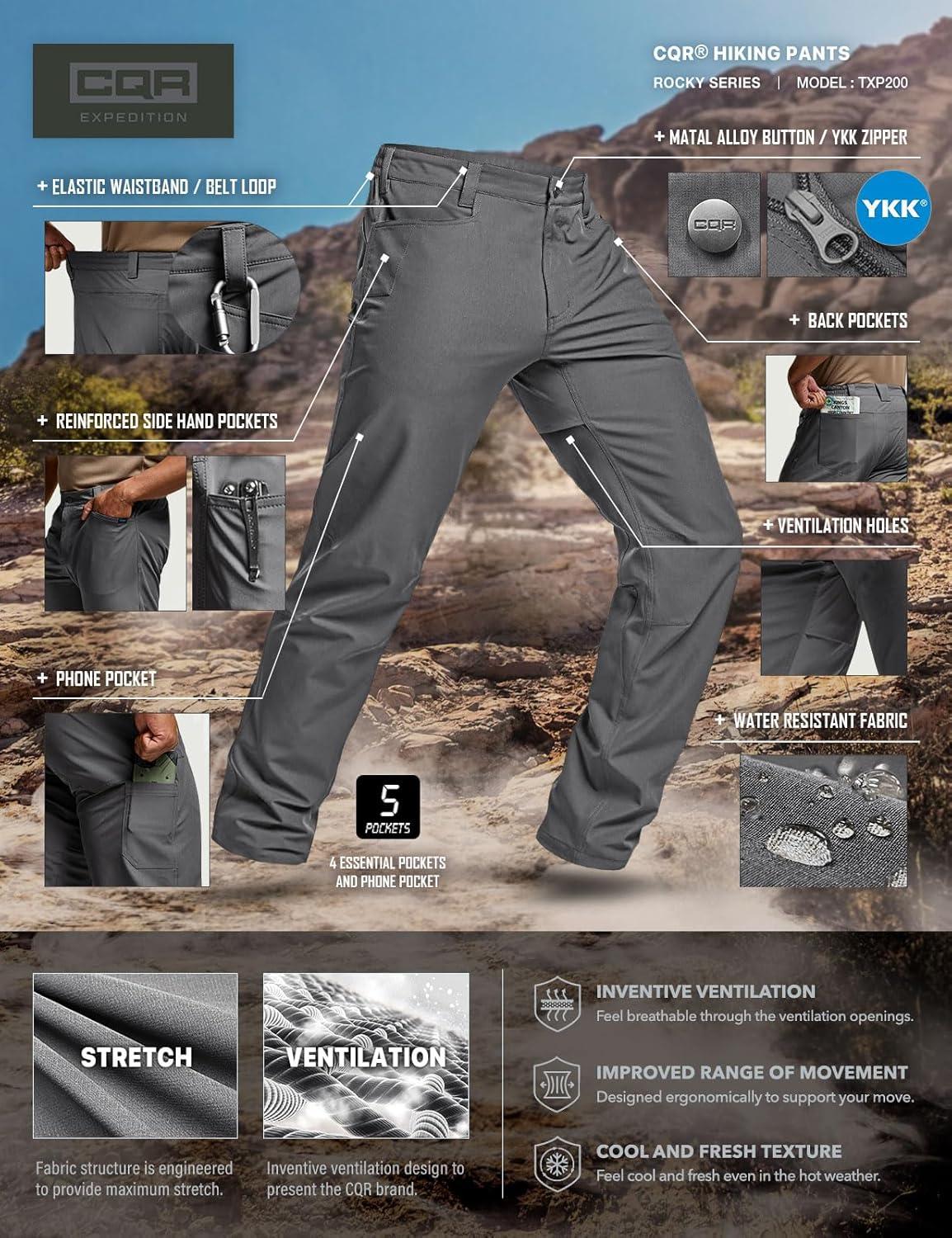 CQR Men’s Quick Dry Tactical Pants, Water Resistant Outdoor Pants, Lightweight Stretch Cargo Work Hiking Pants(Rocky Z Jet Grey)