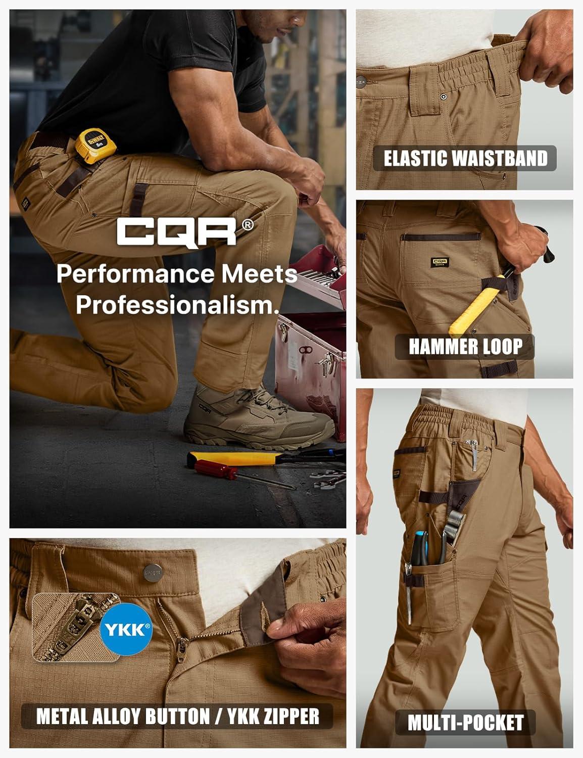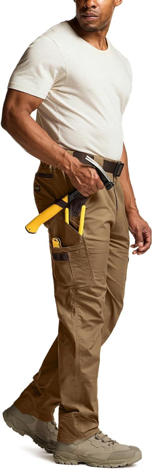 CQR Men’s Quick Dry Work Pants, Water Resistant Outdoor Tactical Pants, Lightweight Stretch Cargo Hiking Pants(Dura Flex Pants Coyote)