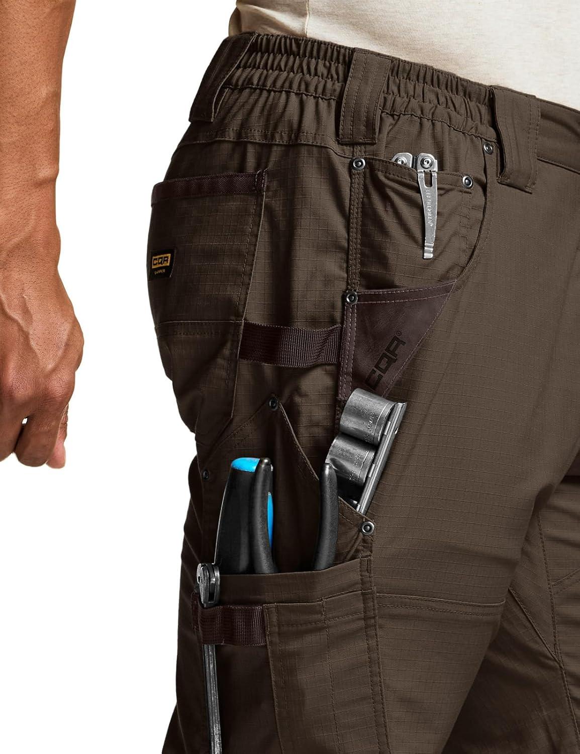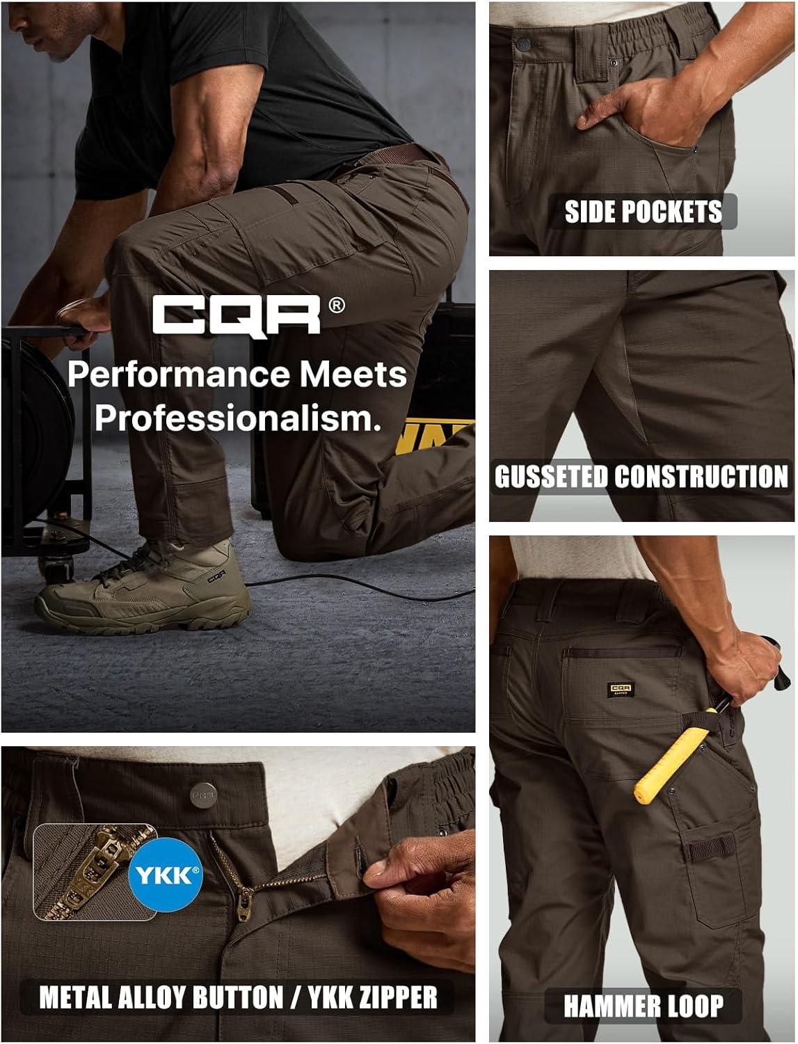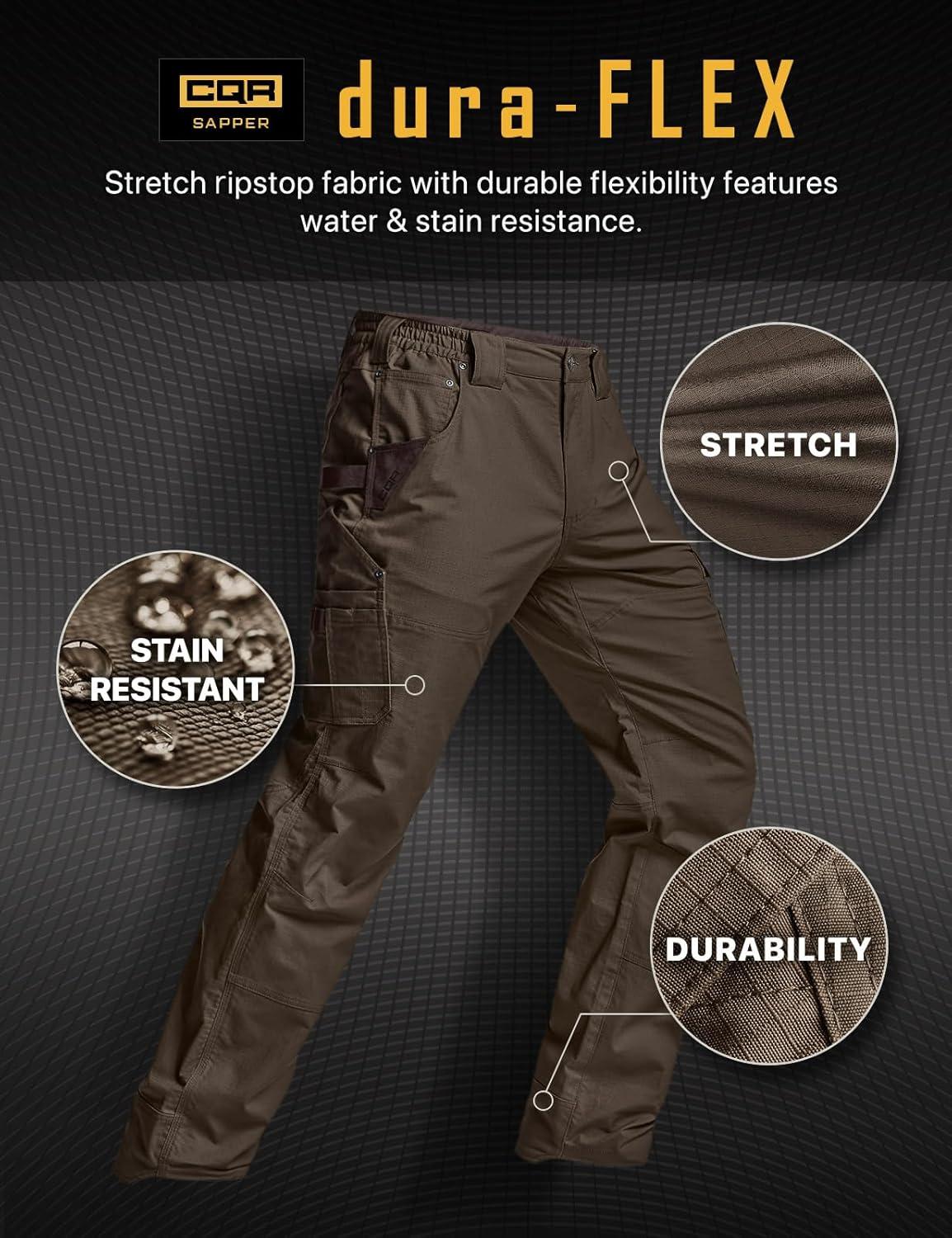 CQR Men’s Quick Dry Work Pants, Water Resistant Outdoor Tactical Pants, Lightweight Stretch Cargo Hiking Pants(Dura Flex Pants Dark Brown)