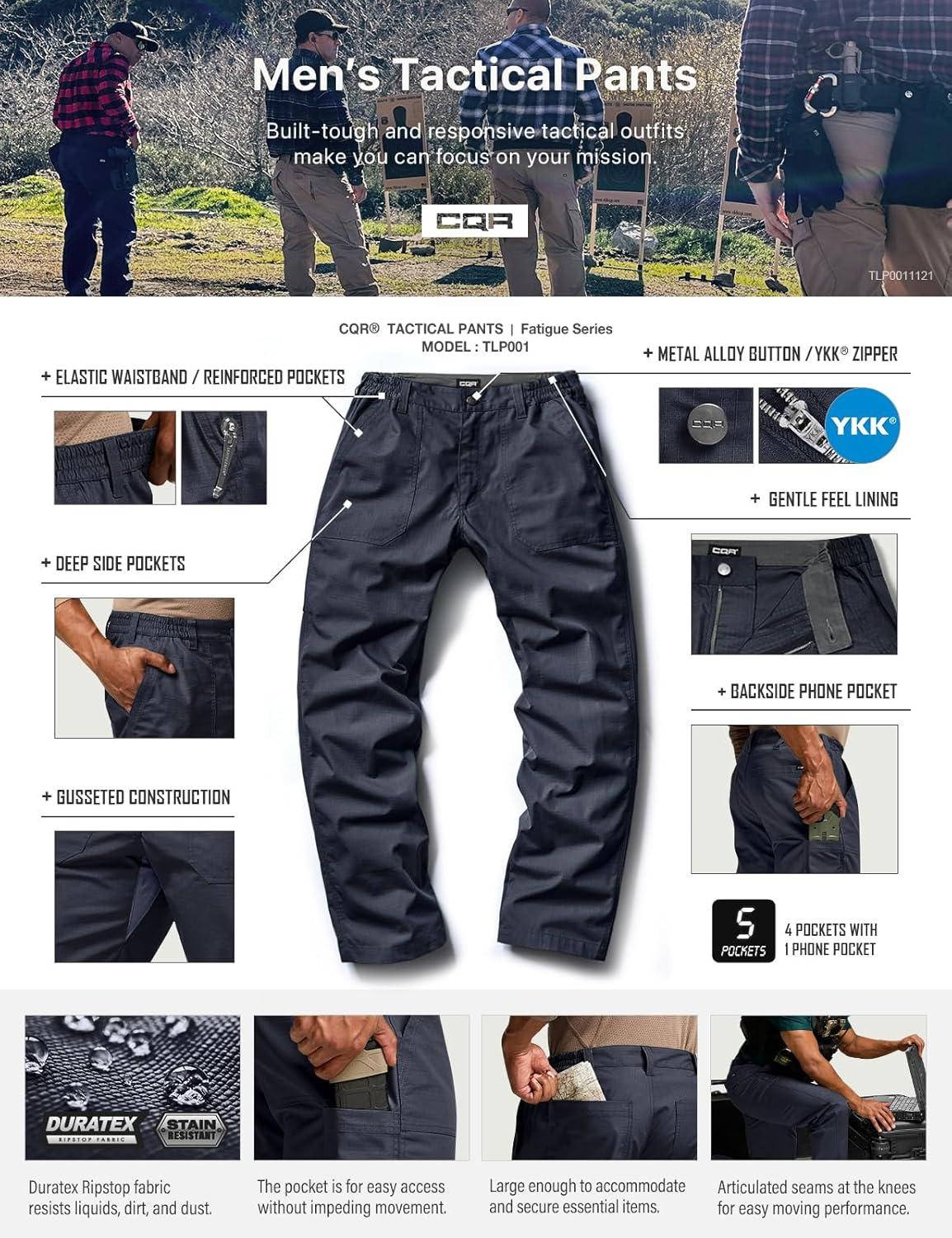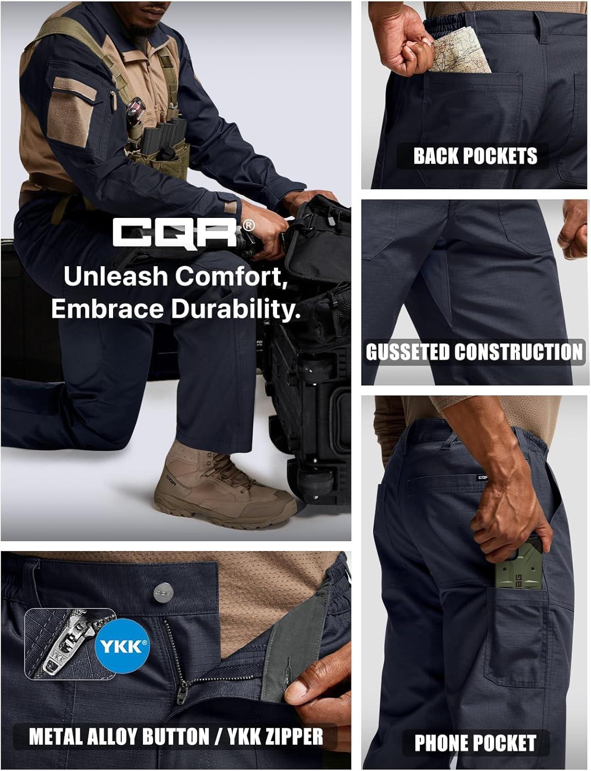 CQR Men’s Quick Dry Work Pants, Water Resistant Outdoor Tactical Pants, Lightweight Stretch Cargo Hiking Pants(Duratex Pants Police Navy)