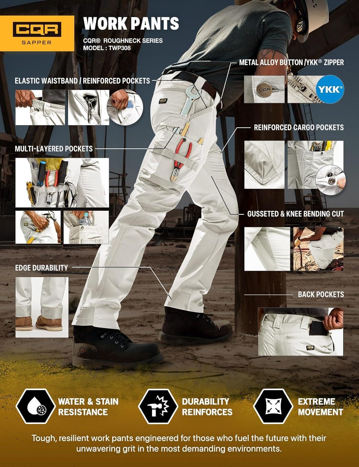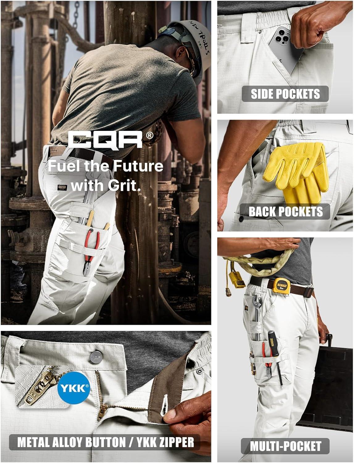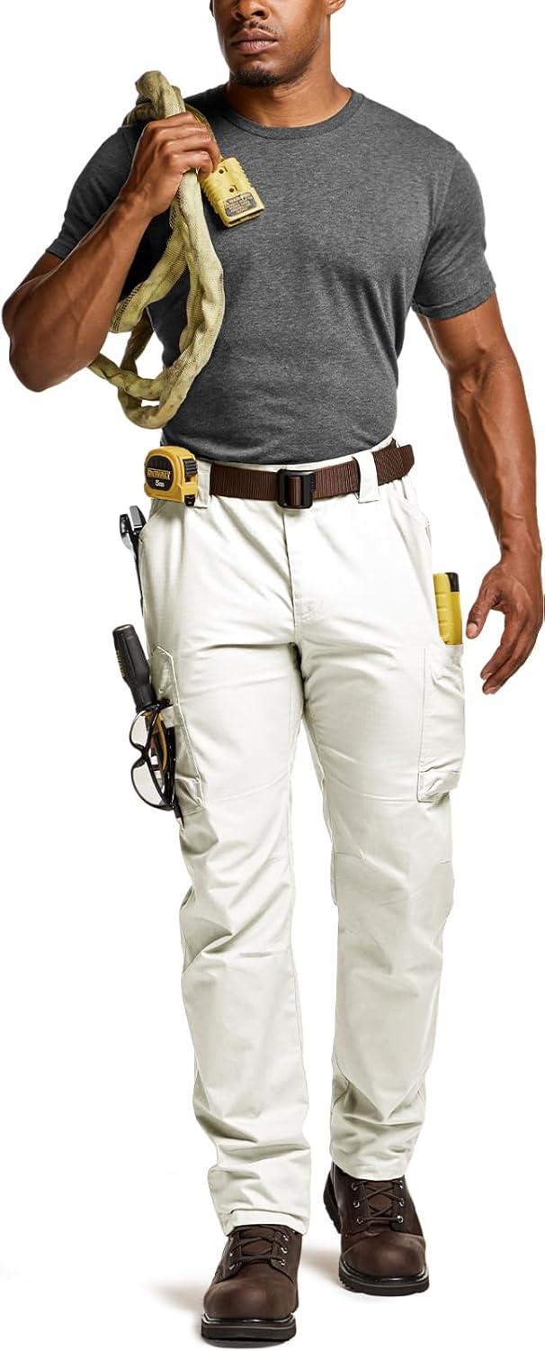 CQR Men’s Quick Dry Work Pants, Water Resistant Outdoor Tactical Pants, Lightweight Stretch Cargo Hiking Pants(Frontline Frosted White)