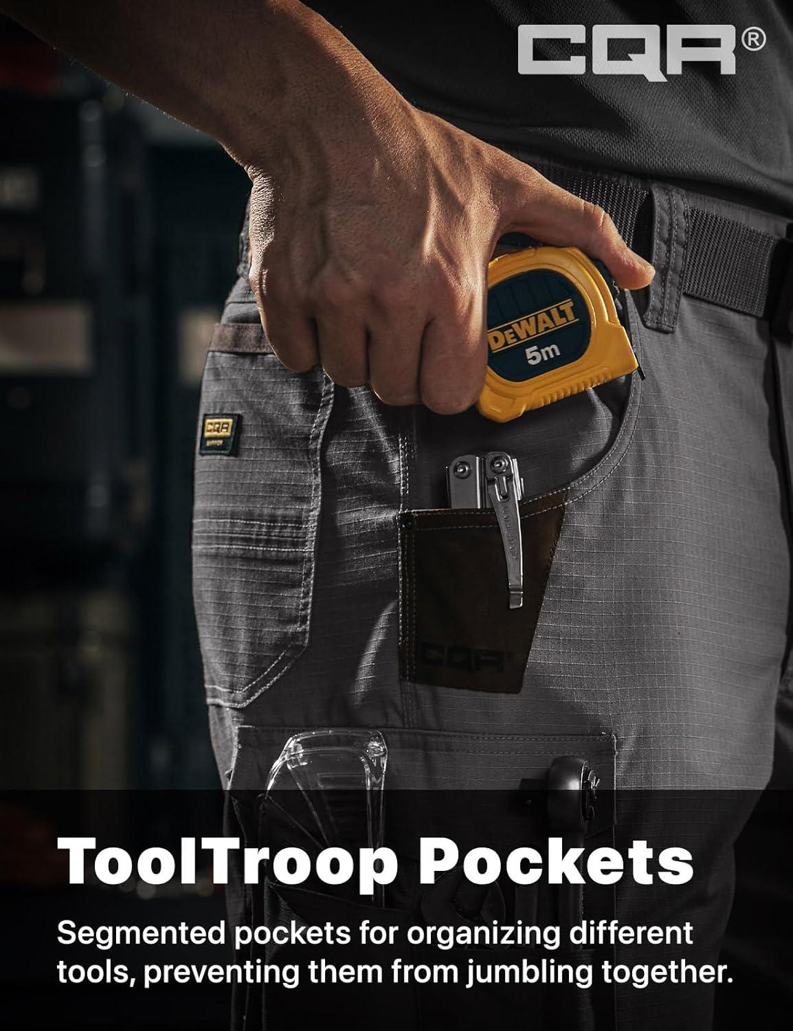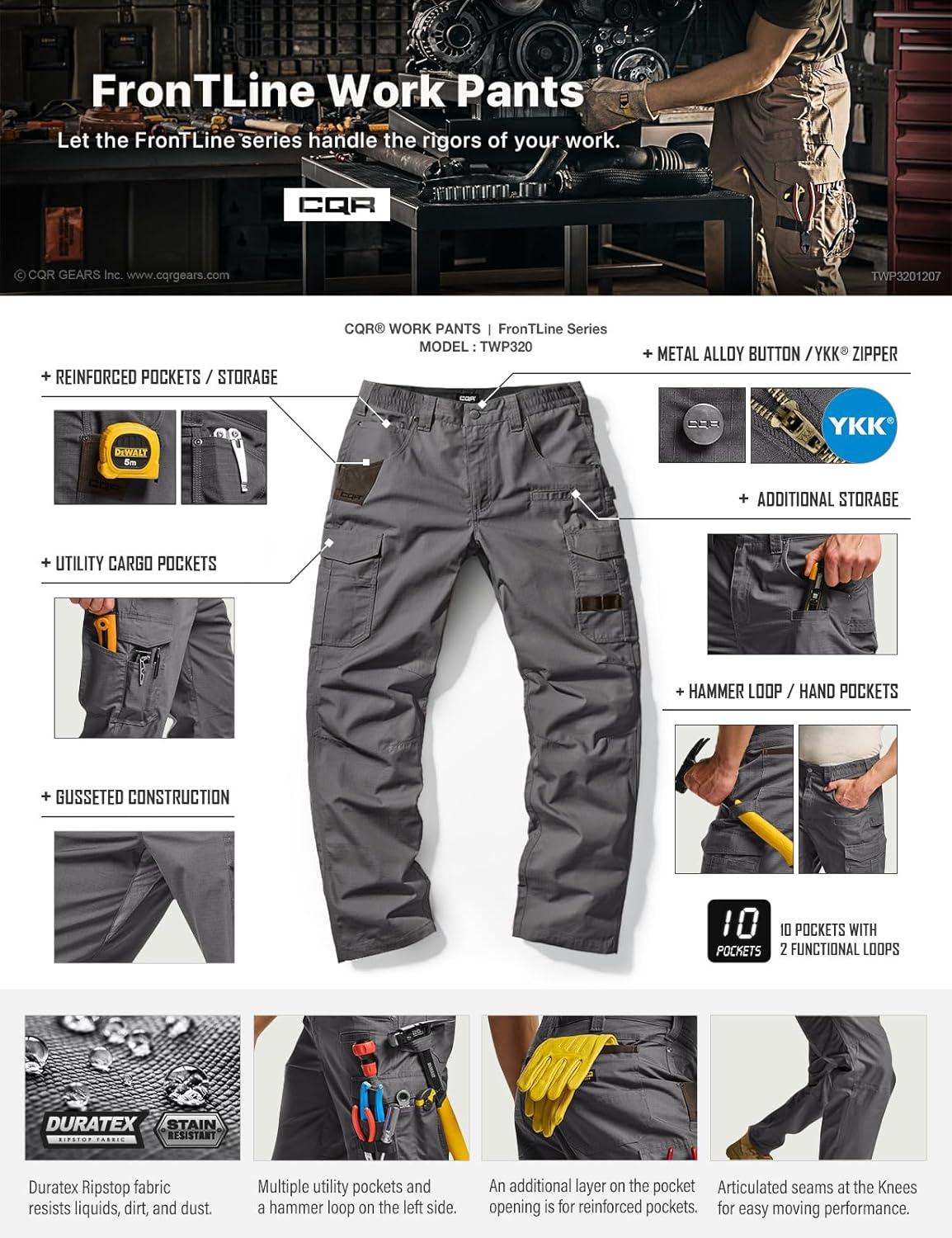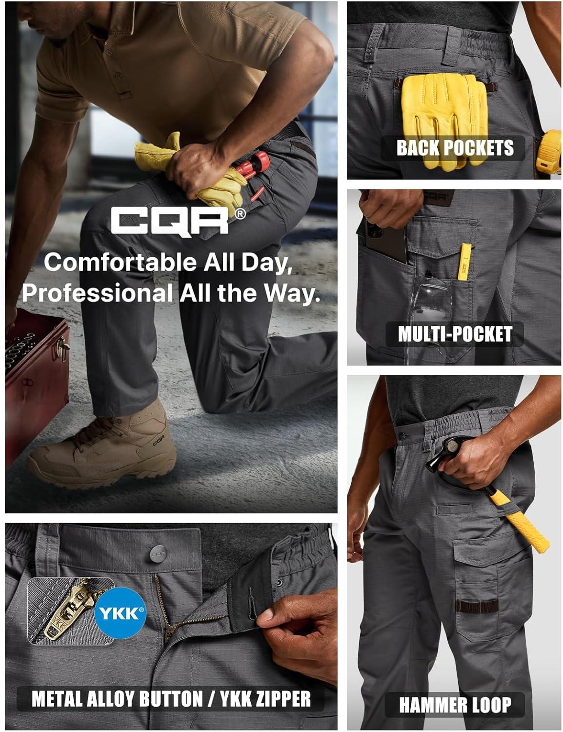 CQR Men’s Quick Dry Work Pants, Water Resistant Outdoor Tactical Pants, Lightweight Stretch Cargo Hiking Pants(Work Pants Charcoal)