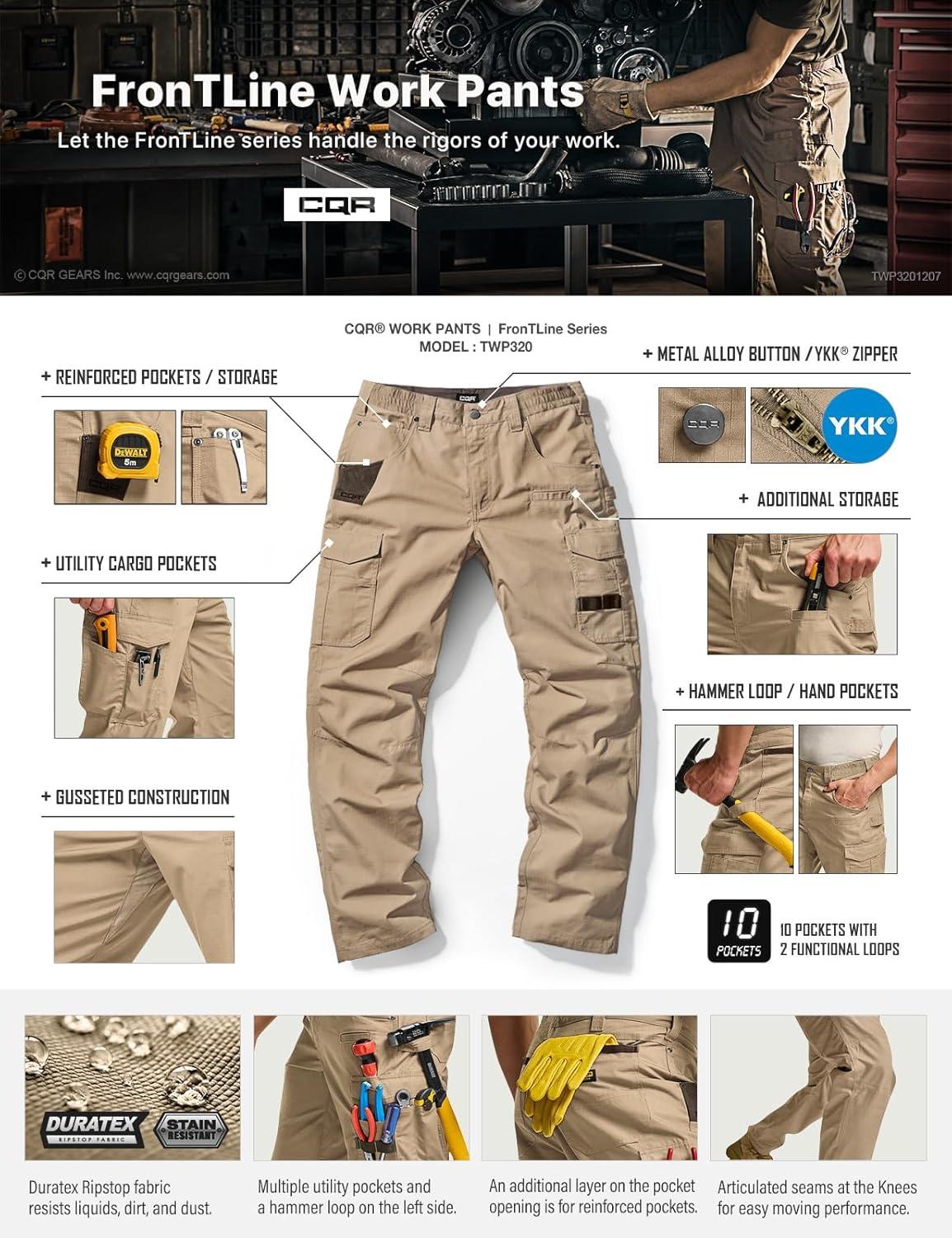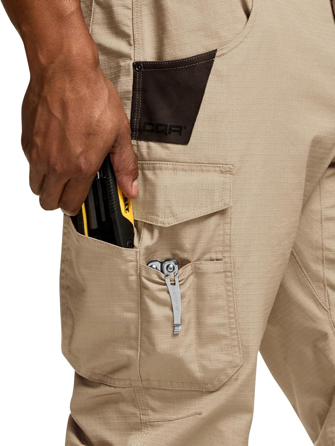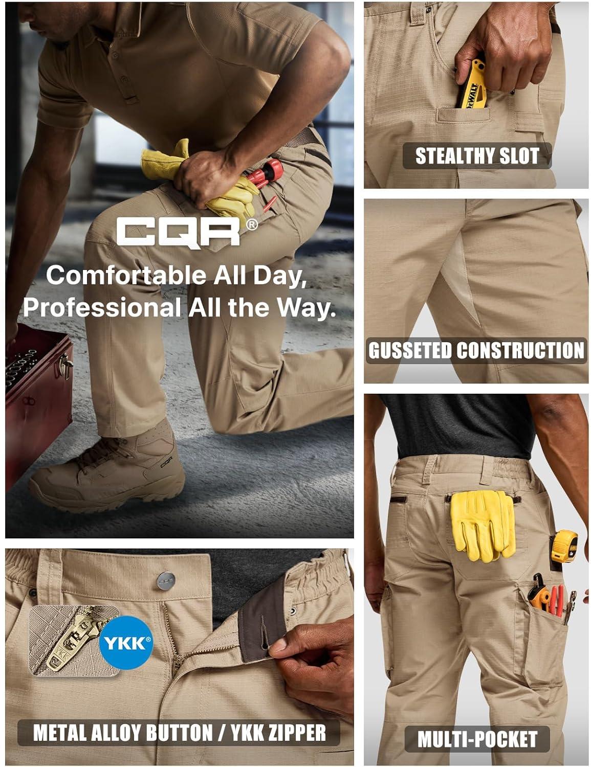 CQR Men’s Quick Dry Work Pants, Water Resistant Outdoor Tactical Pants, Lightweight Stretch Cargo Hiking Pants(Work Pants Khaki)