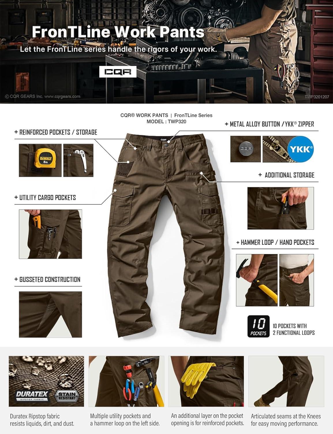 CQR Men’s Quick Dry Work Pants, Water Resistant Outdoor Tactical Pants, Lightweight Stretch Cargo Hiking Pants(Work Pants Tundra)
