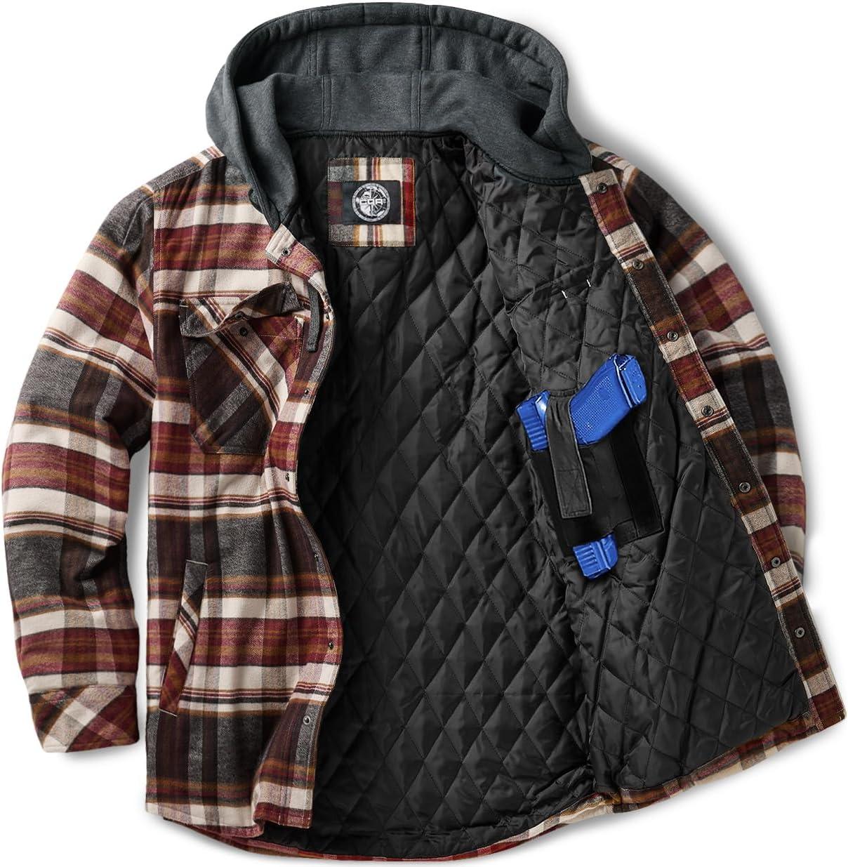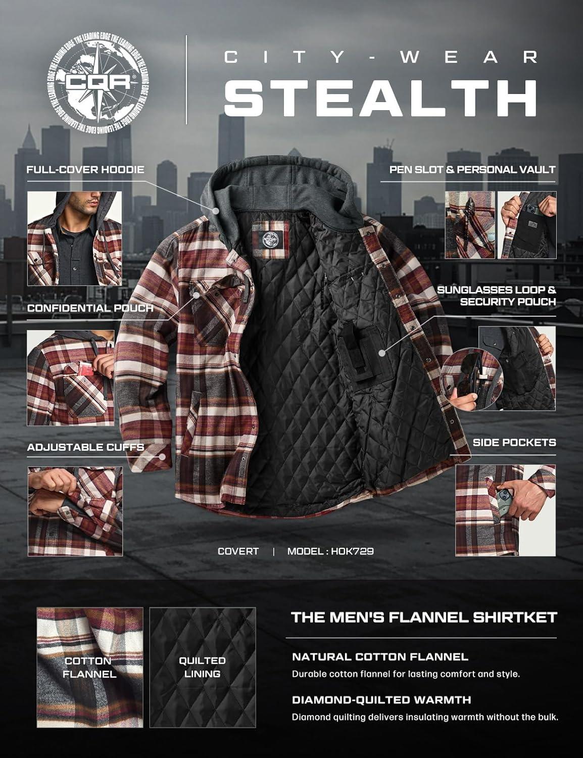 CQR Men’s Quilted Lined Flannel Hooded Shirt Jacket, Soft Warm Long Sleeve Outdoor Cotton Plaid Shirt Jackets(Stealth Folk Tale)