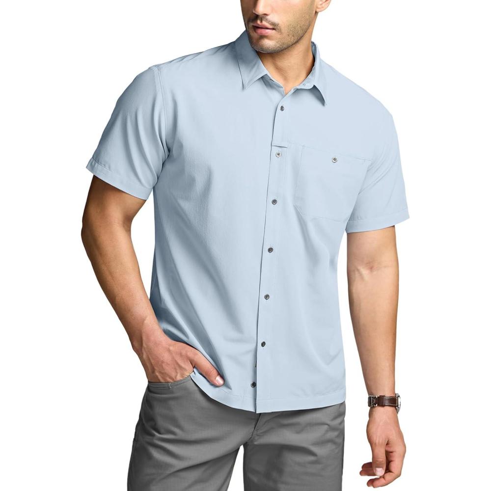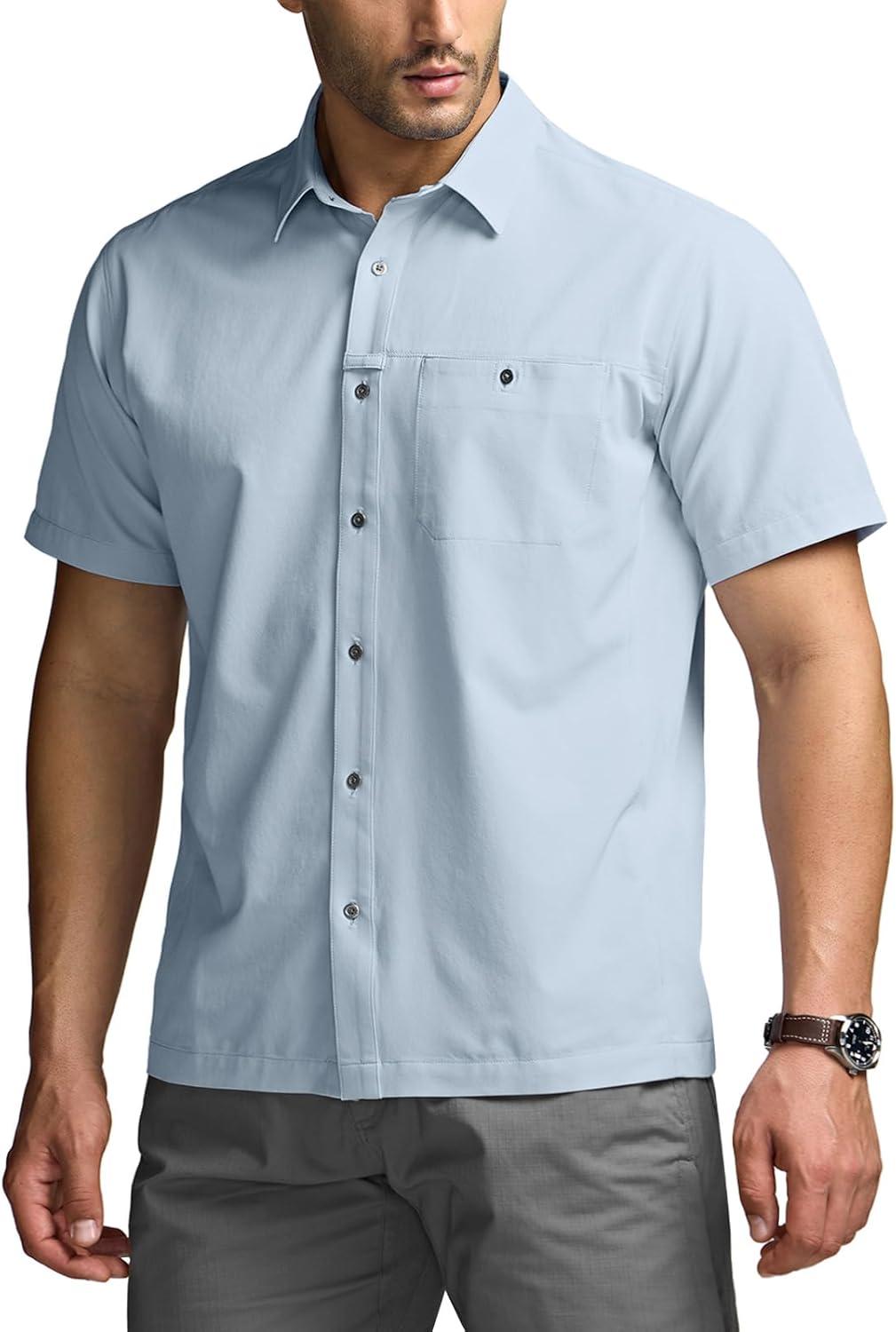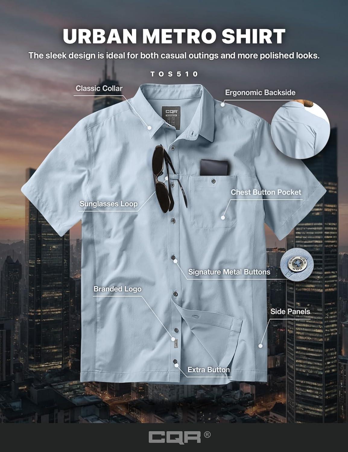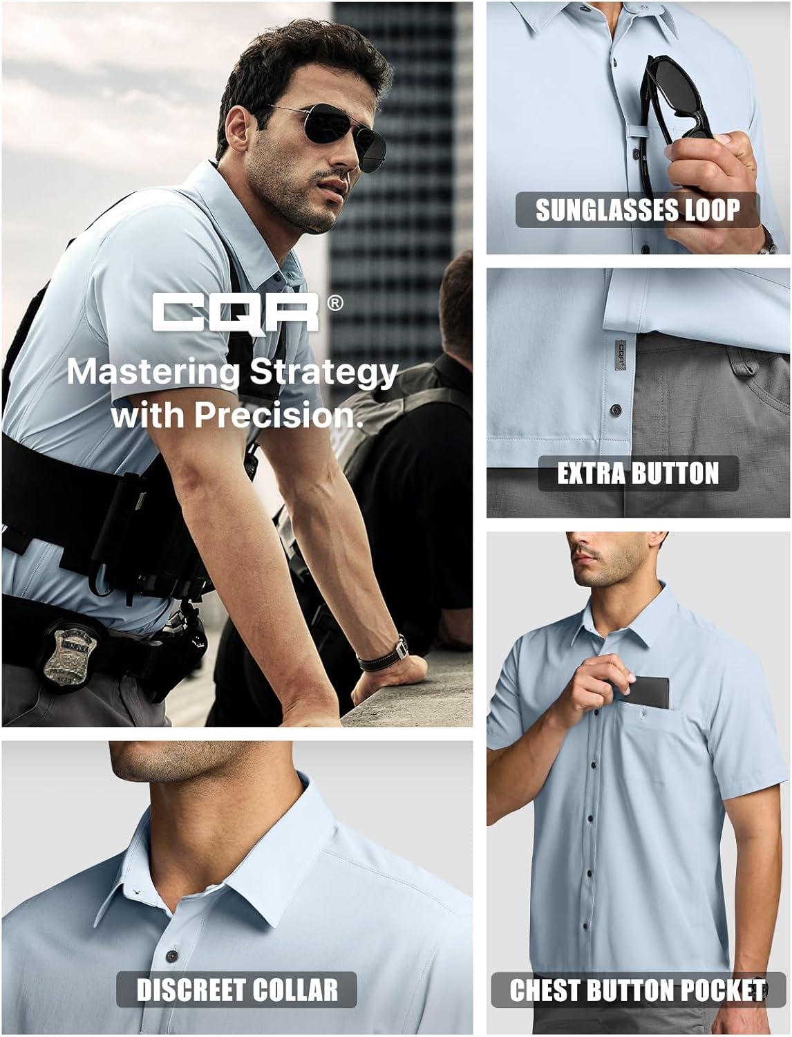 CQR Men’s Short Sleeve Tactical Shirts, UPF 50+ Ripstop Military Work Shirts, Breathable Button Down Outdoor Hiking Shirt(Metro Light Blue)
