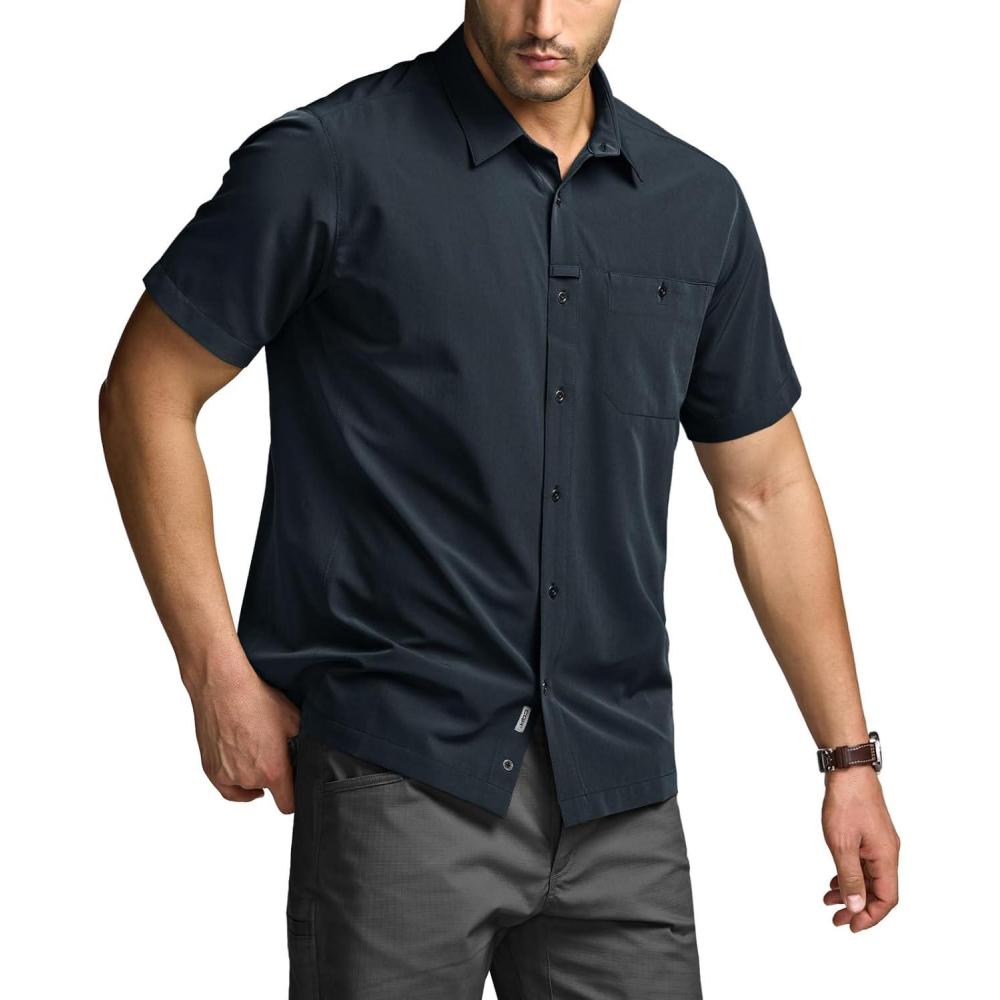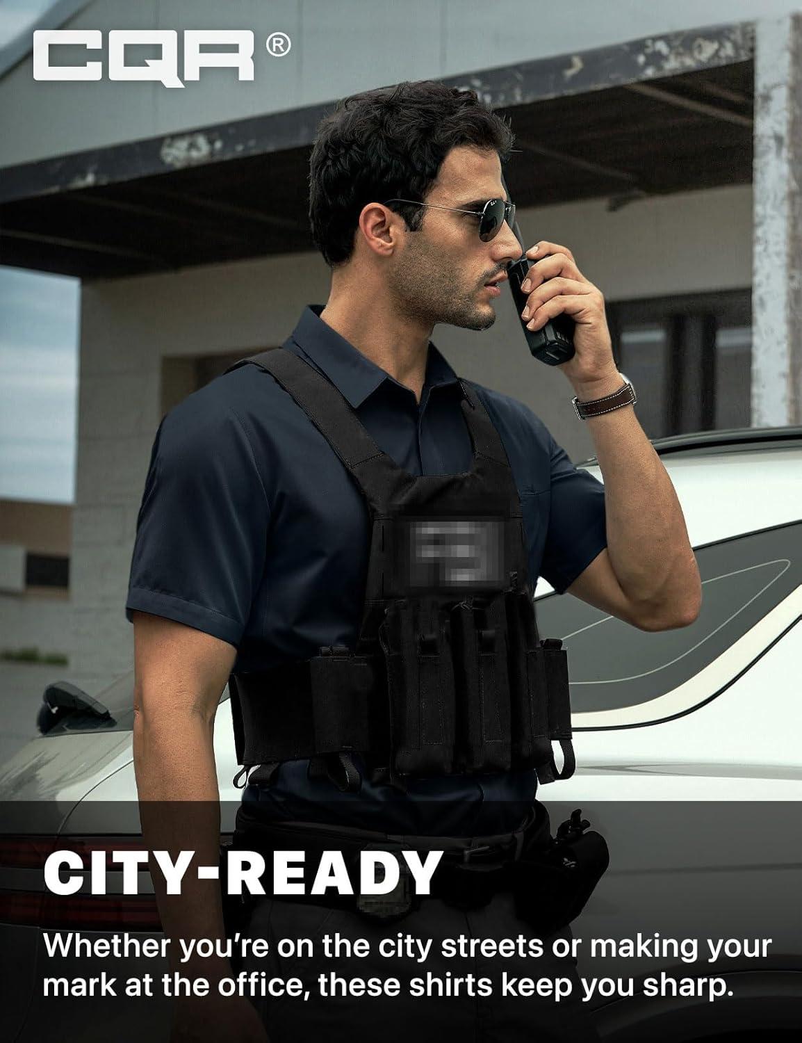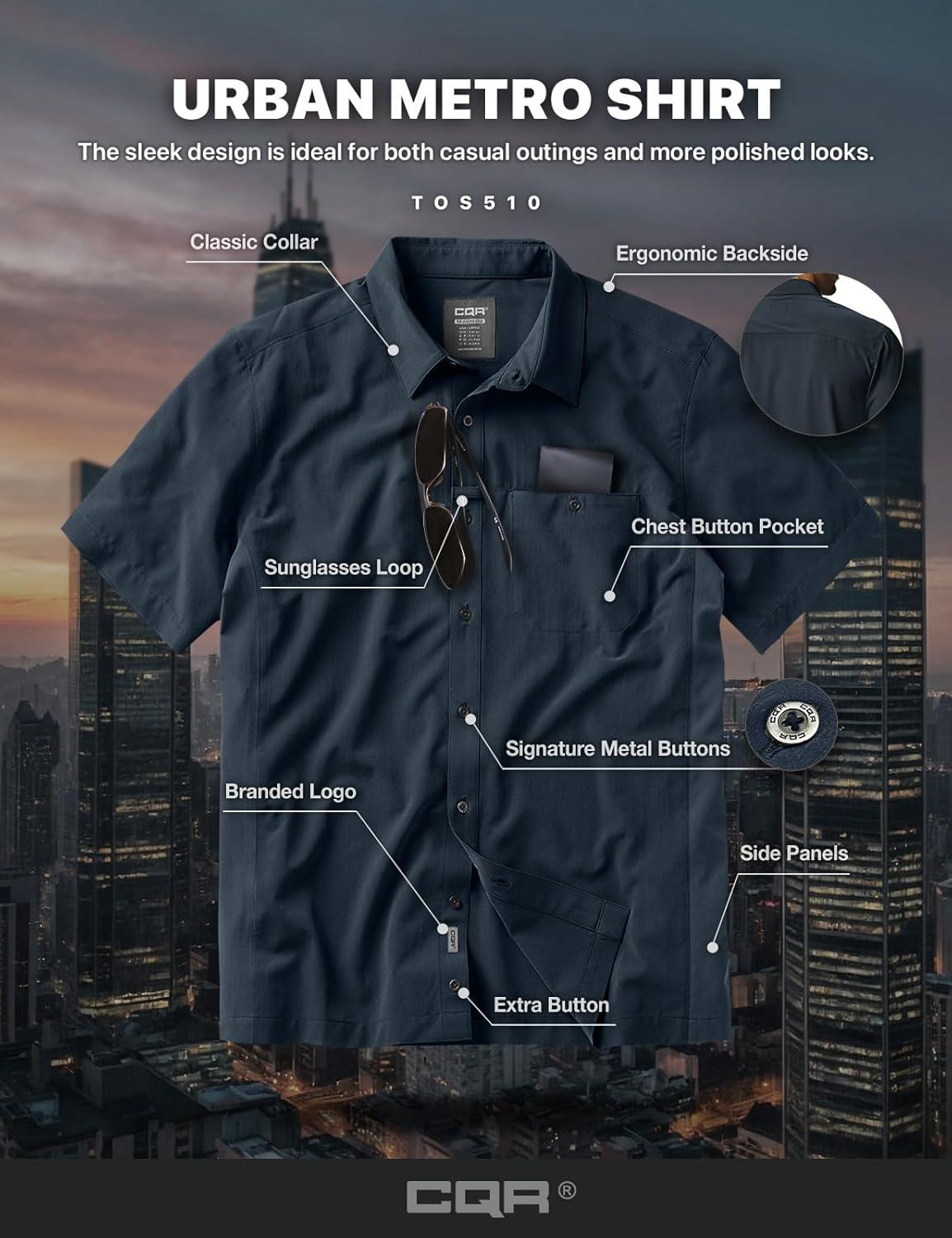 CQR Men’s Short Sleeve Tactical Shirts, UPF 50+ Ripstop Military Work Shirts, Breathable Button Down Outdoor Hiking Shirt(Metro Operator Navy)