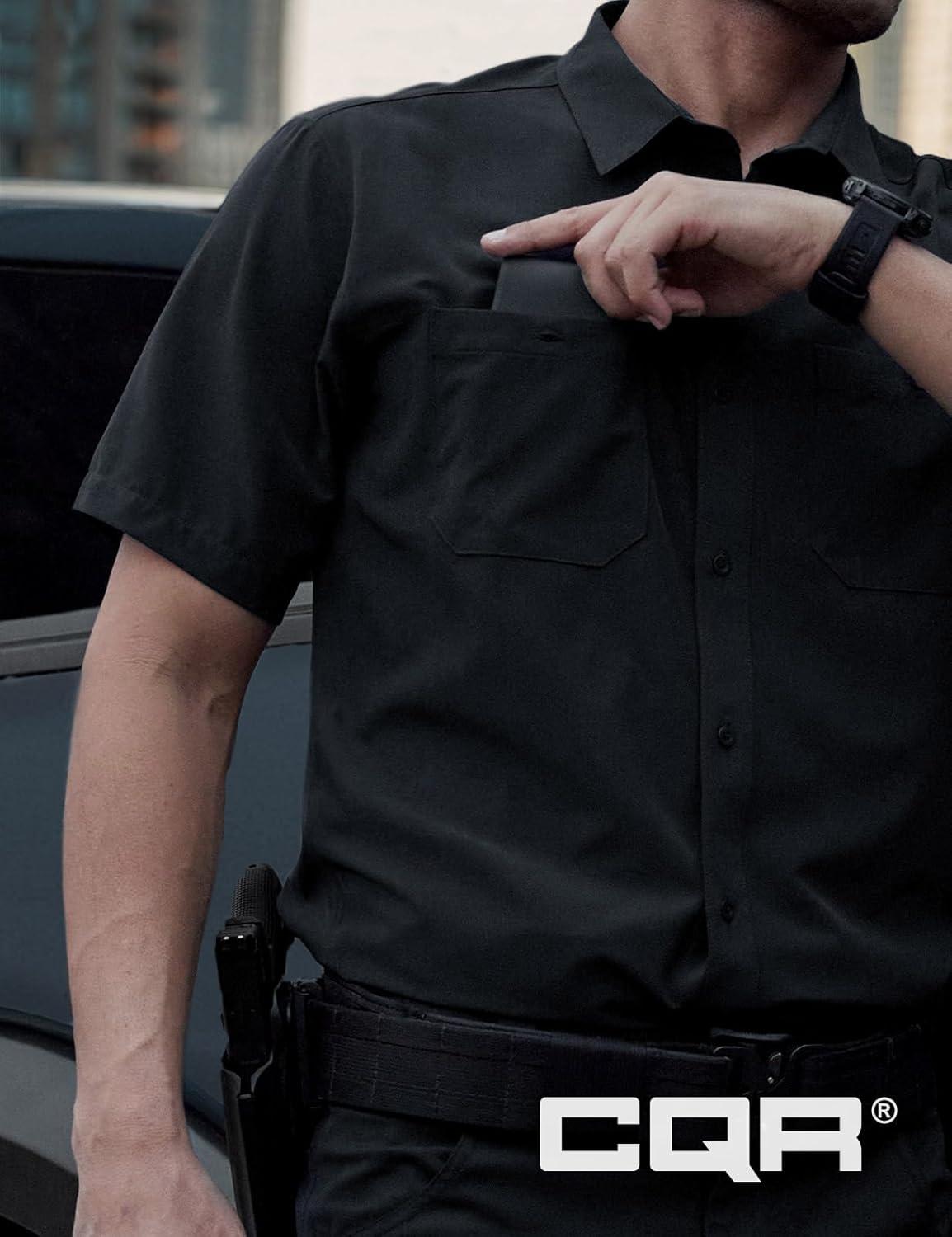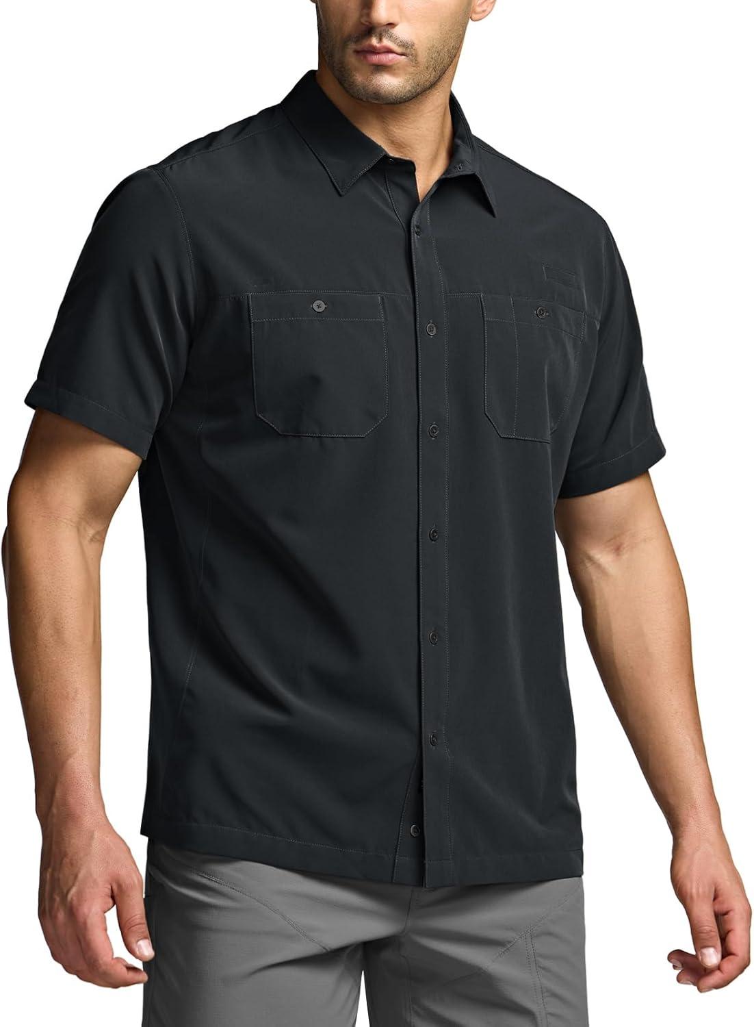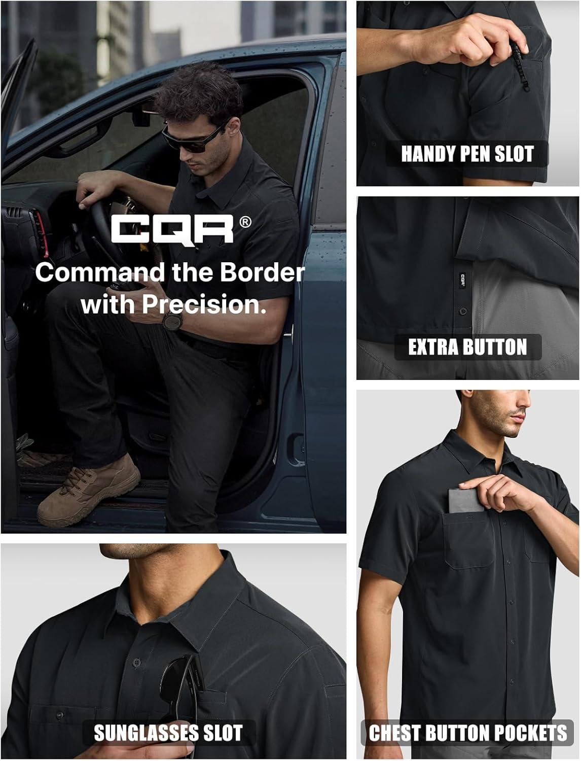 CQR Men’s Short Sleeve Tactical Shirts, UPF 50+ Ripstop Military Work Shirts, Breathable Button Down Outdoor Hiking Shirt(Supervisor Black)