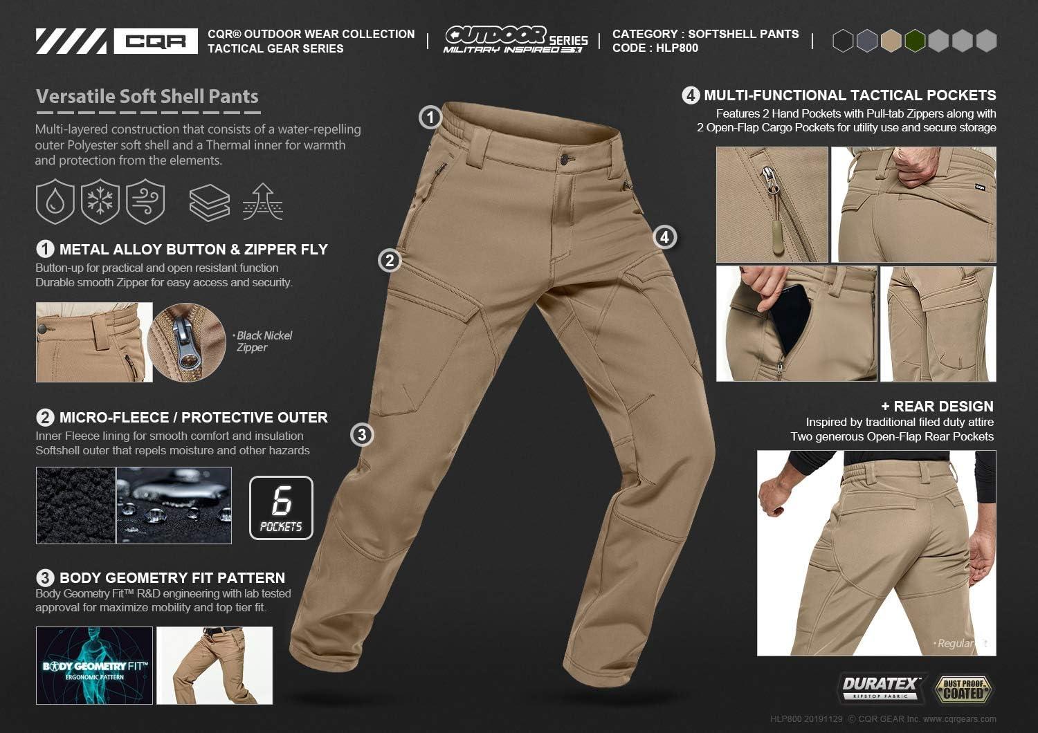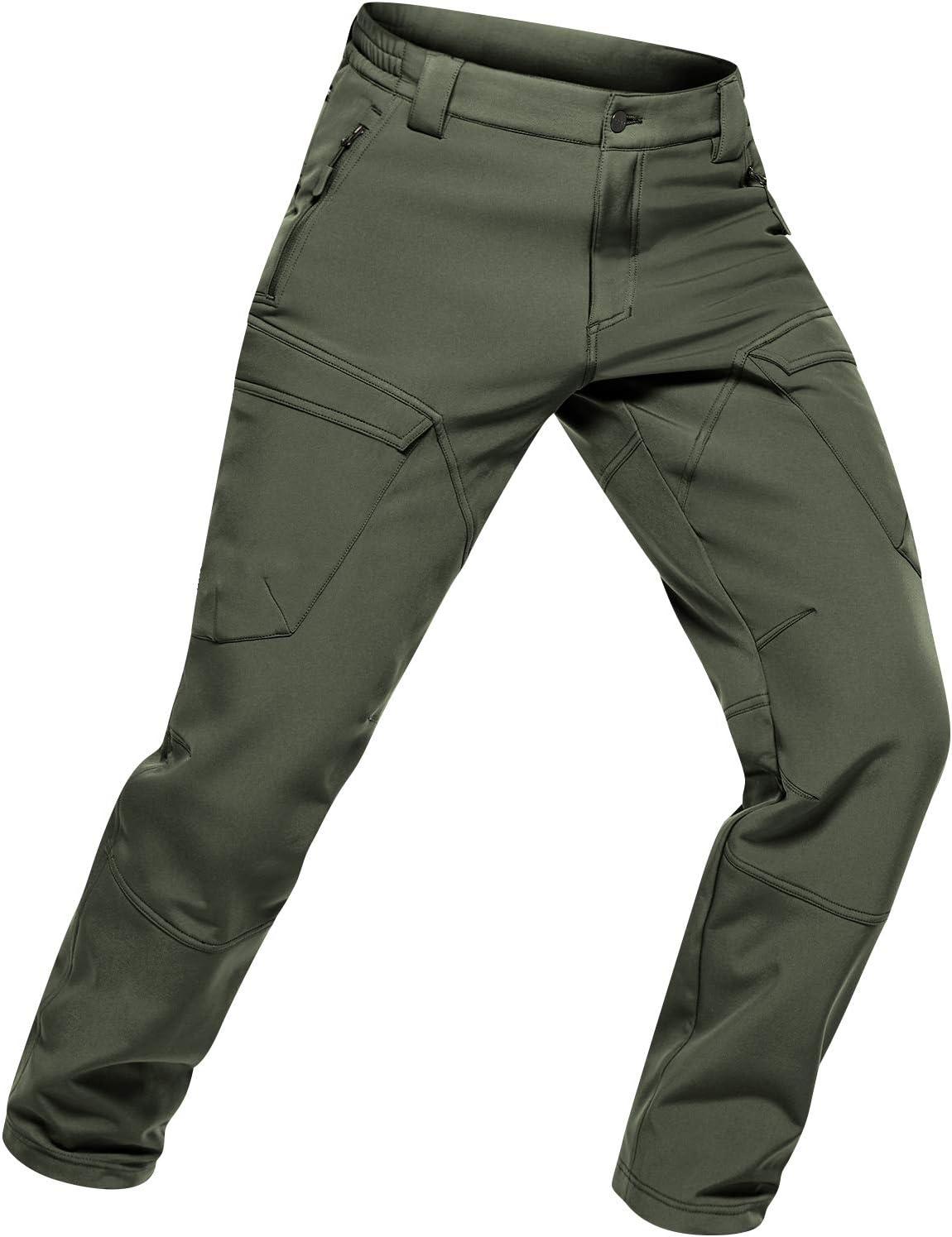 CQR Men’s Softshell Fleece Lined Winter Hiking Pants, Water Resistant Insulated Thermal, Outdoor Tactical Warm Snow Ski Pants(Olive)